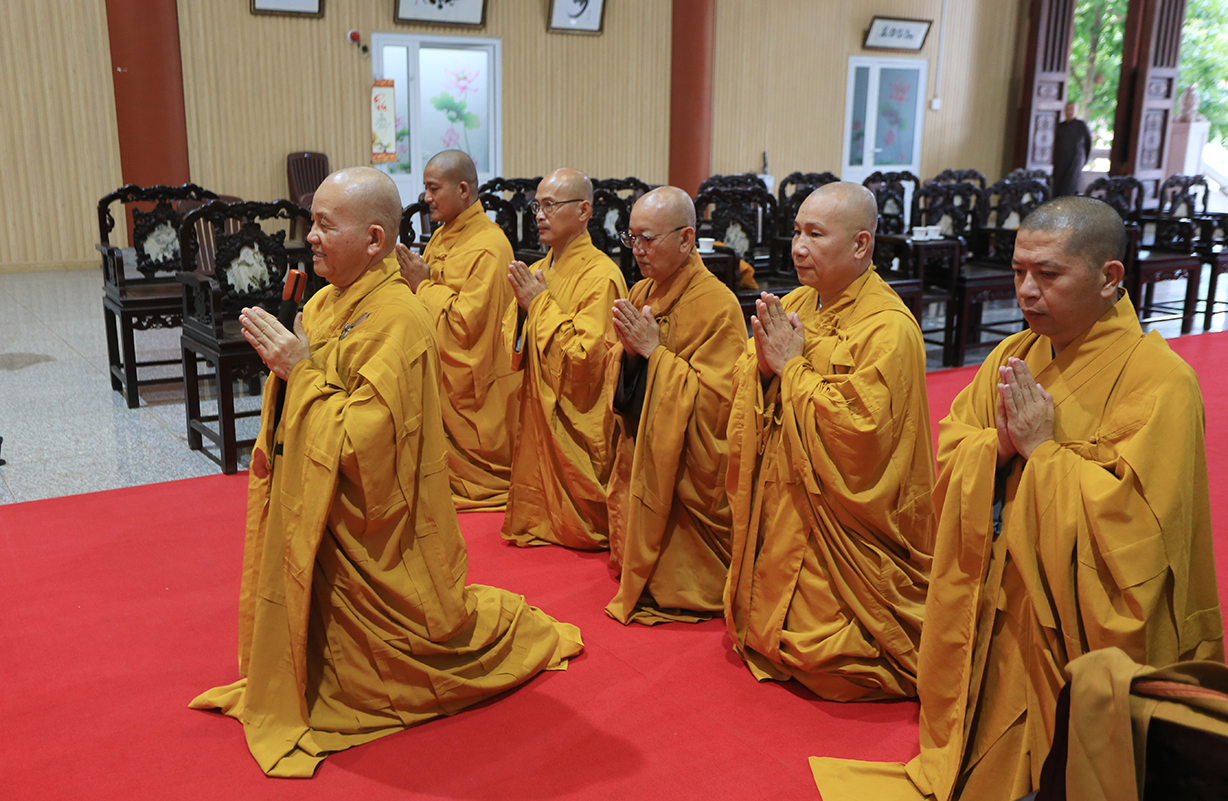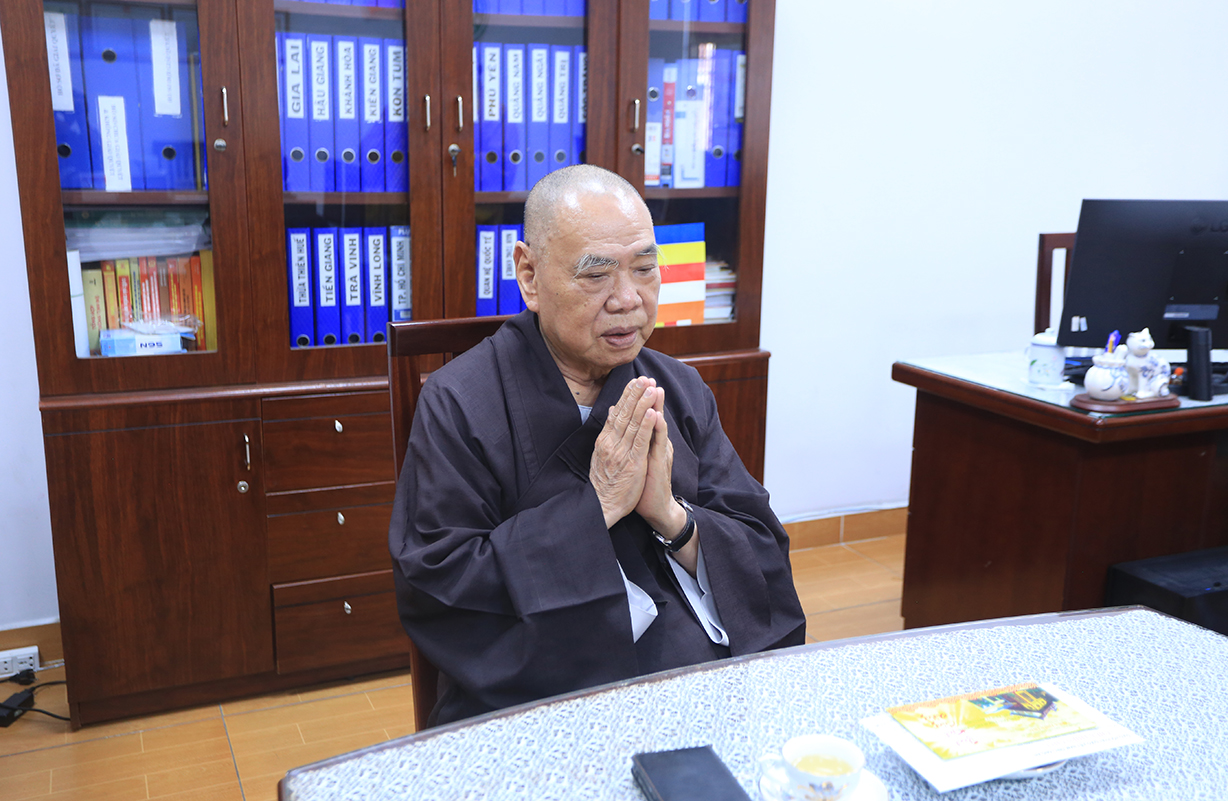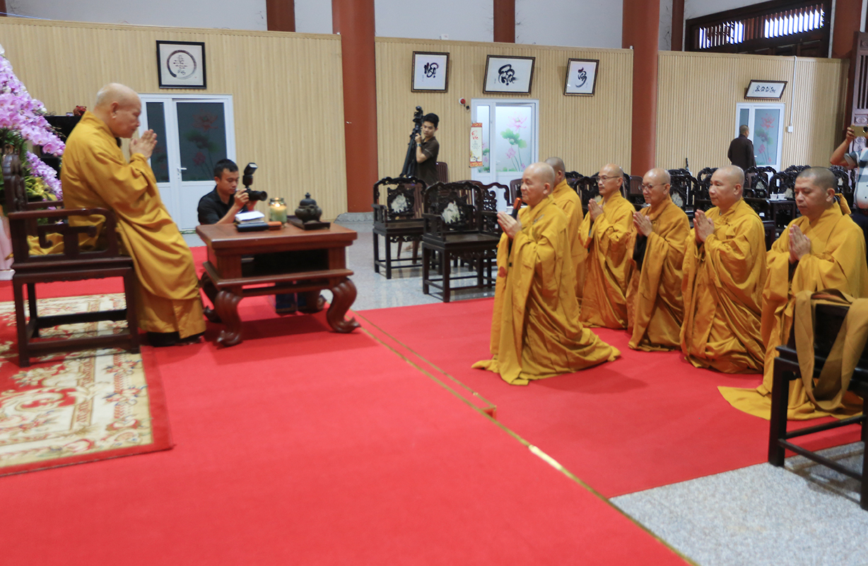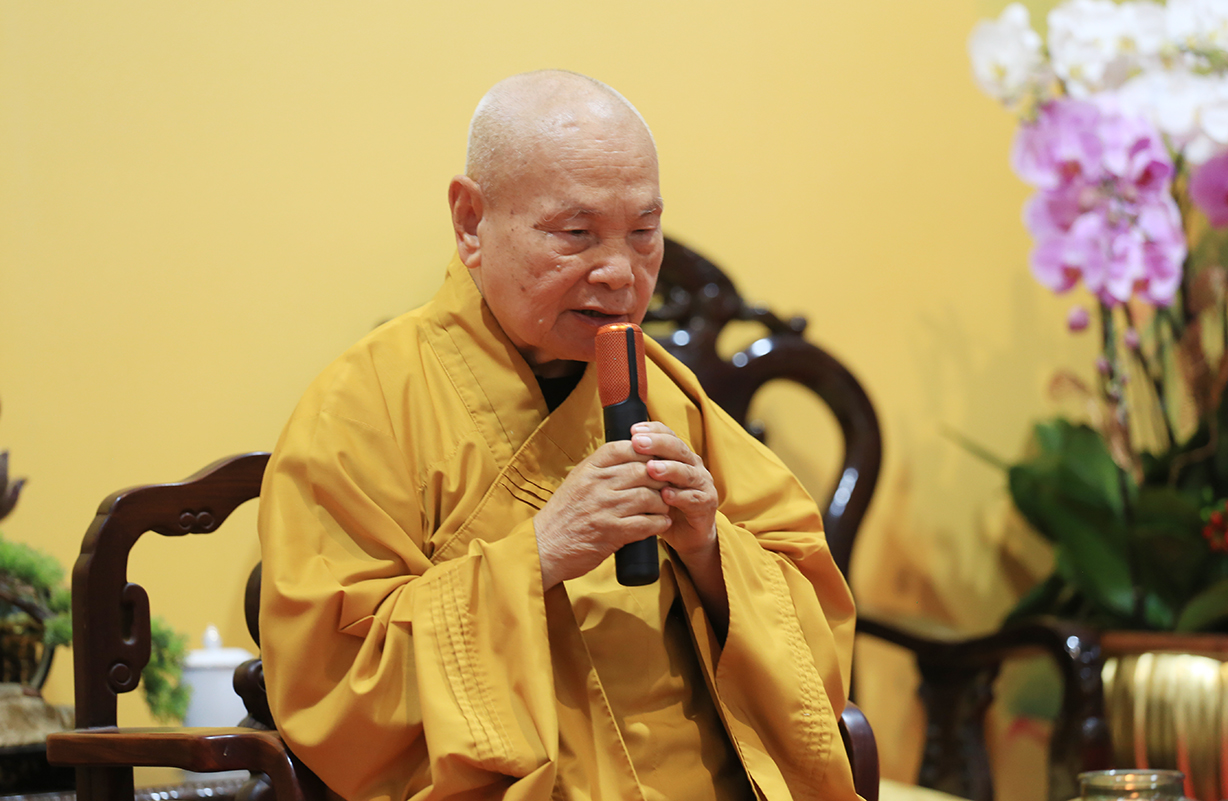 Tại đây, Hòa thượng Trưởng Ban Trị sự GHPGVN tỉnh Long An đại diện đoàn dâng lời khánh tuế, mừng hạ lạp và cầu nguyên chư Phật mười phương gia hộ cho Đức Trưởng lão Hòa thượng thân tâm thường an lạc, đạo thọ vô lượng.