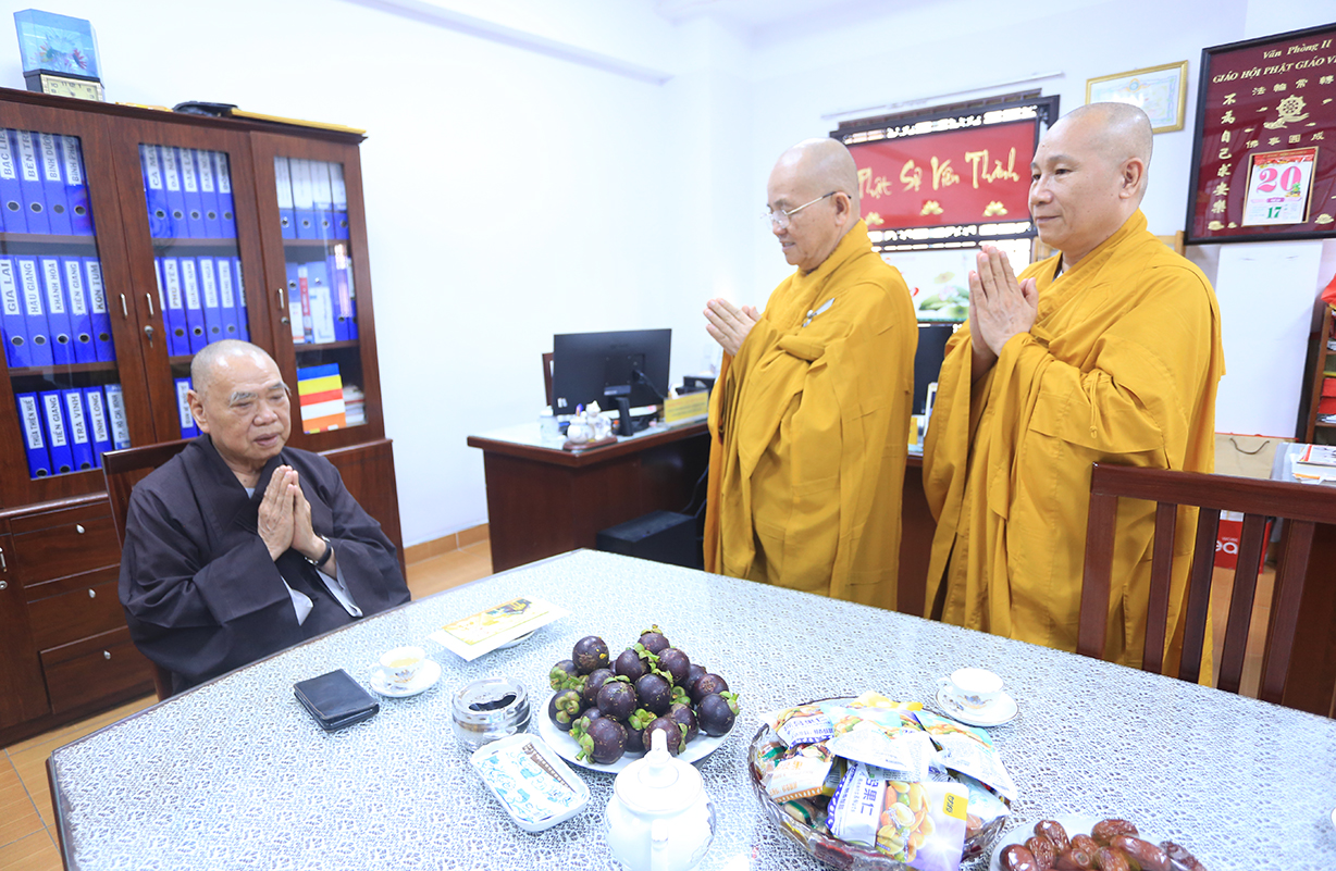 Tiếp đó đoàn Ban Trị sự tỉnh đến Văn phòng 2 trung ương GHPGVN – Thiền Viện Quảng Đức, số 294 Nam Kỳ Khởi Nghĩa, Quận 3, TP.HCM chúc khánh tuế Hòa thượng Thích Thiện Pháp- Ủy viên Thường trực Hội đồng Chứng minh, Phó Chủ tịch Thường trực Hội đồng Trị sự và đến tổ đình Vĩnh Nghiêm chúc khánh tuế Trưởng lão Hòa thượng Thích Đức Nghiệp, Phó Pháp chủ Hội đồng Chứng minh GHPGVN