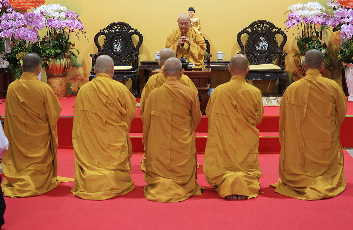 Đạo từ, Trưởng lão Hòa thượng Chủ tịch chúc mừng thành quả Phật sự của các tỉnh, tán dương công đức của Thường trực Ban Trị sự. Đông thời, ngài chia sẻ niềm vui cùng Tăng Ni tỉnh Long An đã thành tựu mùa An cư kiết hạ viên mãn và thêm một tuổi đạo mới.