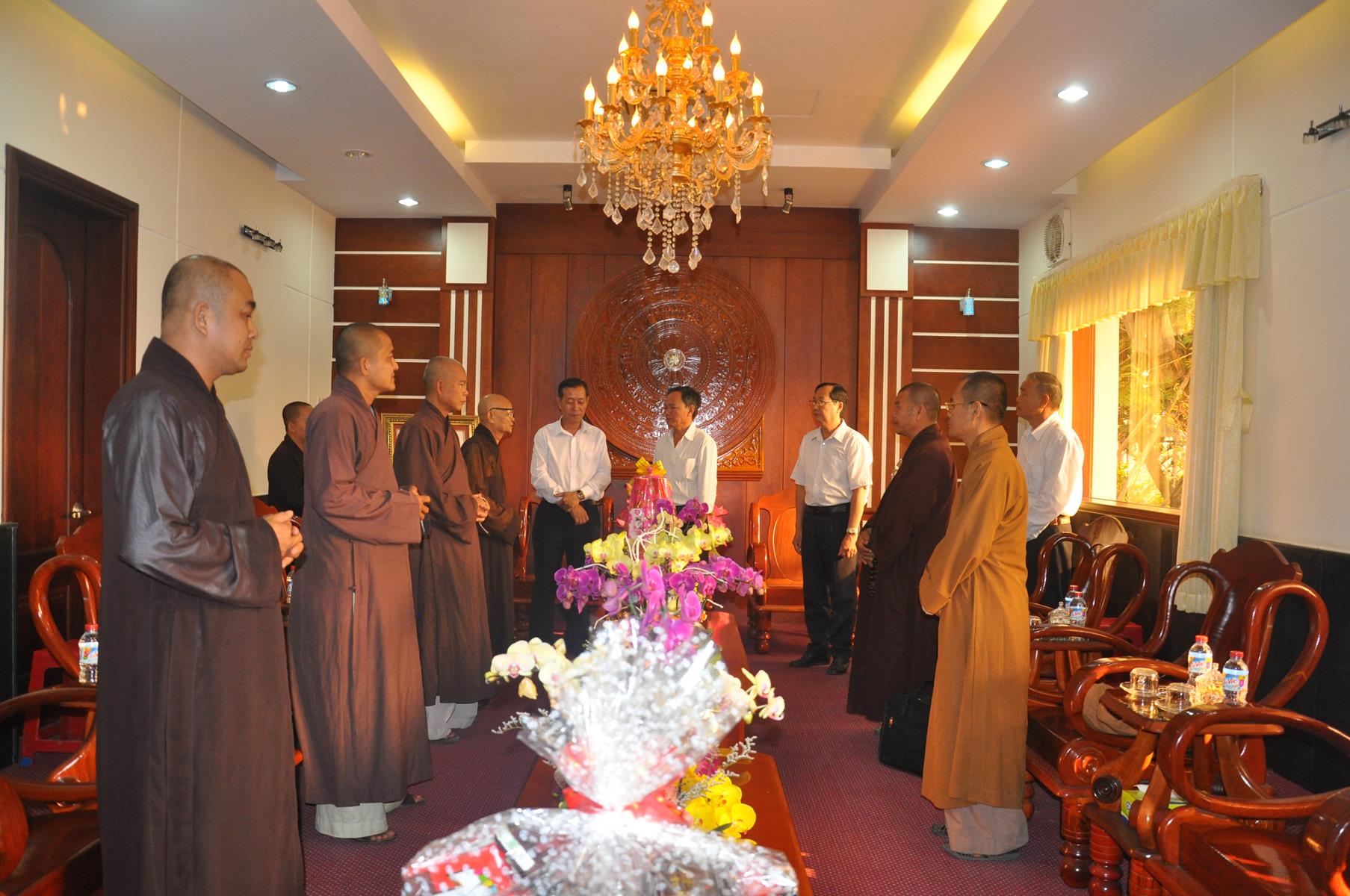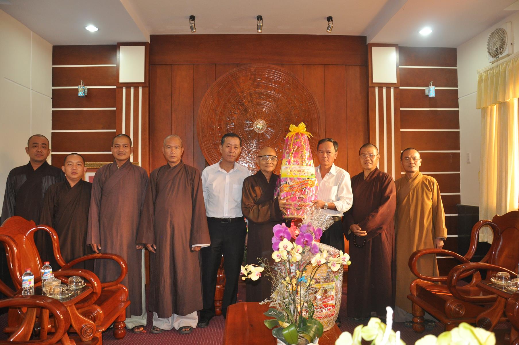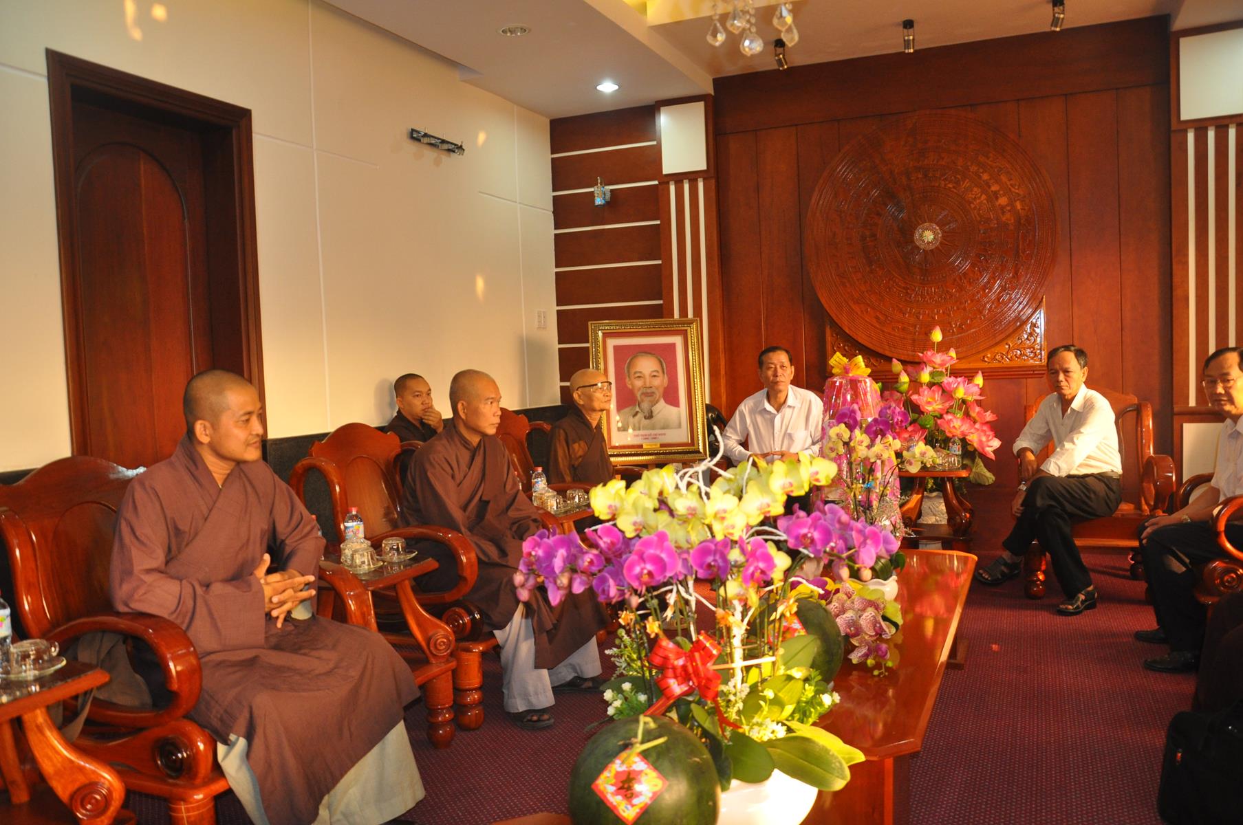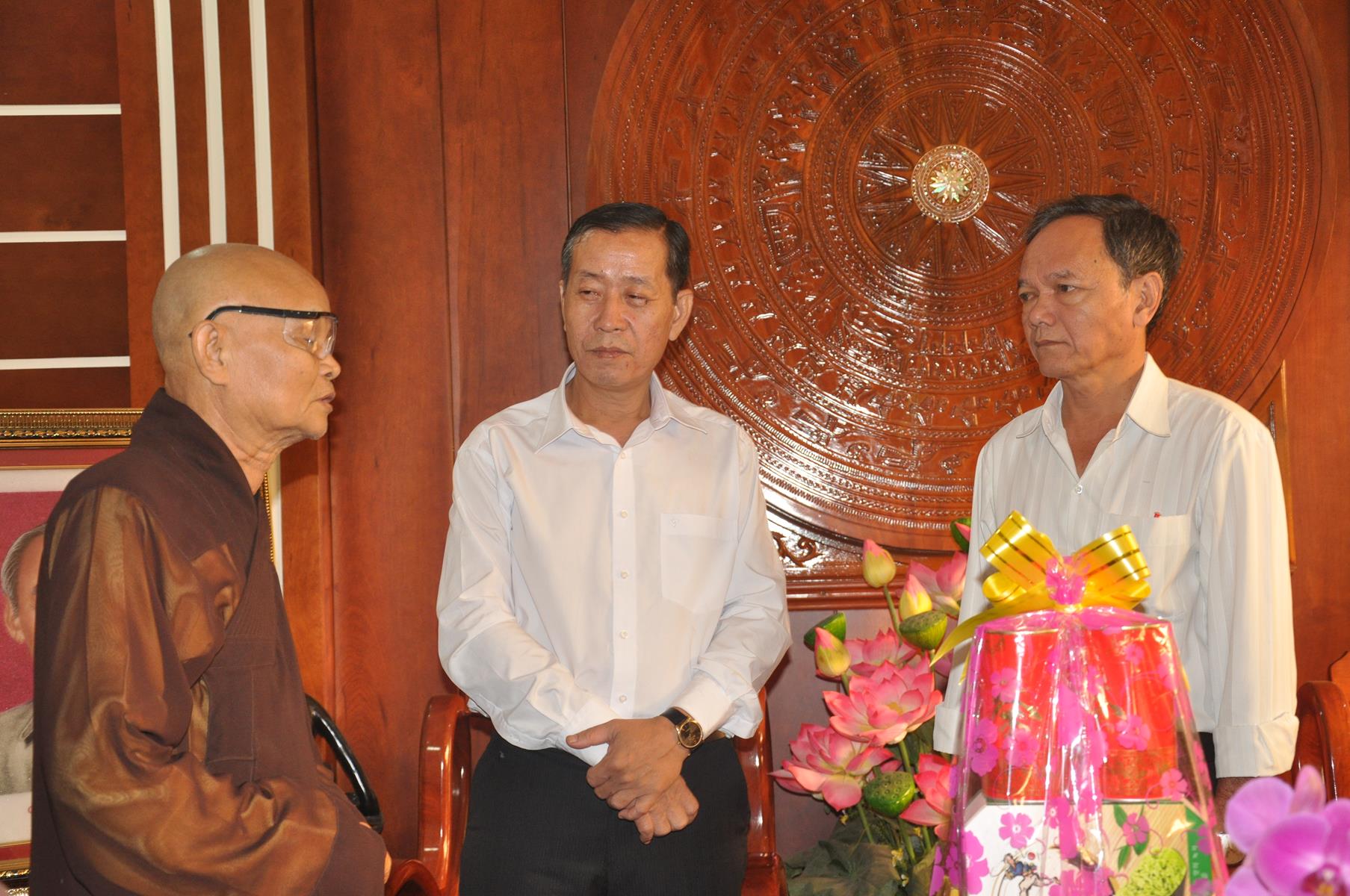 Trong không khí vui xuân 2018, chuẩn bị đón ngày Tết cổ truyền thiêng liêng của Dân tộc, sáng ngày 9 tháng 02 năm 2017(24/12/ Đinh Dậu) phái đoàn Thường trực Ban Trị Sự GHPGVN liên huyện Đức Hòa – Đức Huệ do Hòa thượng Thích Thiện Phúc- Ủy viên BTS GHPGVN tỉnh Long An – Trưởng ban BTS GHPGVN liên huyện Đức Hòa – Đức Huệ làm trưởng đoàn cùng Chư tôn đức trong Thường trực Ban Trị sự liên huyện đến thăm và chúc Tết các Ban ngành đoàn thể chính quyền tại huyện Đức Hòa, gồm có: Huyện ủy, Ủy Ban Nhân Dân, Ủy ban Mặt Trận Tổ quốc Việt Nam, Công An và phòng Nội vụ huyện.