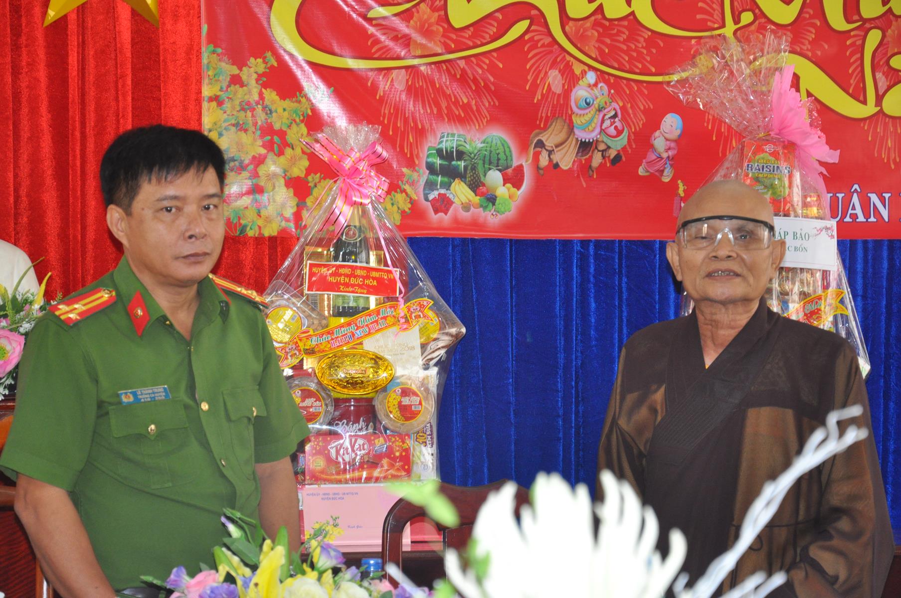 Nhân dịp xuân Mậu Tuất – 2018, Hòa thượng Thích Thiện Phúc – Trưởng BTS liên huyện Đức Hòa – Đức Huệ thay mặt các thành viên trong đoàn gửi lời chúc toàn thể lãnh đạo các cấp chính quyền ban ngành đoàn thể huyện thị dồi dào sức khỏe, đón một mùa xuân an lành, hạnh phúc và gặt hái nhiều thành tích trong công tác.