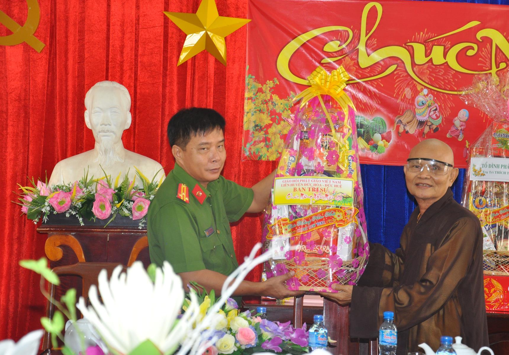 Thay mặt lãnh đạo các ban ngành Huyện Đức Hòa kính chúc phái đoàn của Ban Trị sự liên huyện Đức Hòa – Đức Huệ cùng toàn thể Chư Tôn Đức Tăng Ni các Tịnh xứ trong huyện năm mới nhiều sức khỏe, mong muốn sang năm mới, BTS phối hợp chặt chẽ với các ban ngành chức năng hơn nữa để hoàn thành các công tác Phật sự đã đề ra.