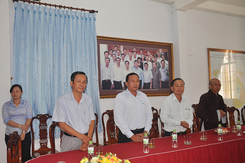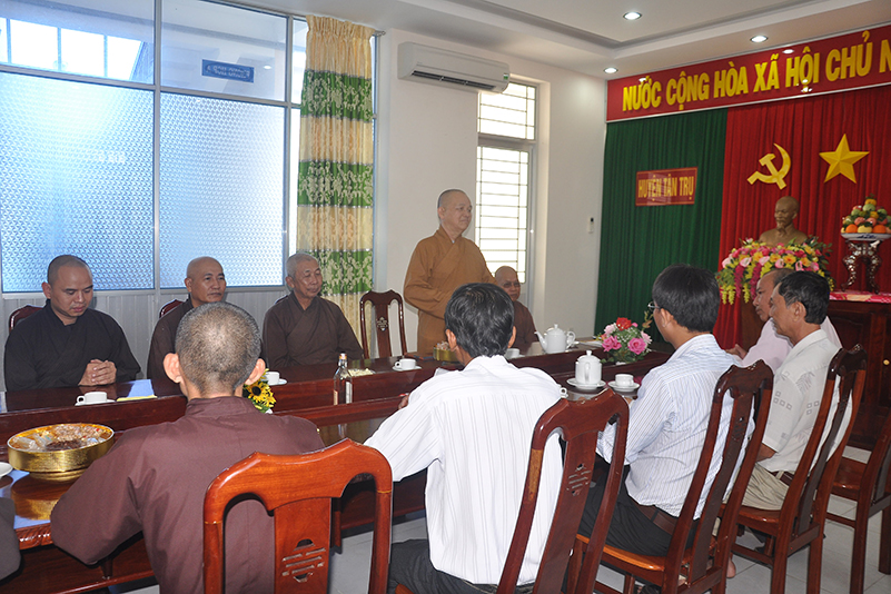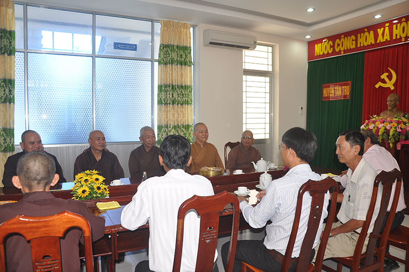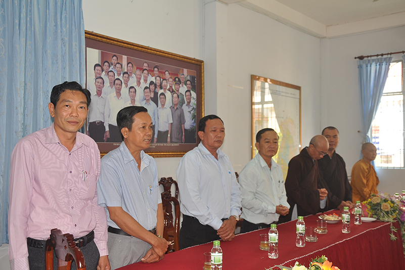 Đại diện lãnh đạo các ban ngành đoàn thể Huyện thị đã thân mật đón tiếp phái đoàn. Có lời cảm ơn BTS GHPGVN tỉnh Long An đã có nhiều hoạt động động kết hợp với các ban ngành đoàn thể chính quyền trên mặt trận đại đoàn kết, góp phần hoàn thành nhiệm vụ trong mọi công tác an ninh kinh tế-xã hội, đặc biệt là công tác từ thiện, xóa đói giảm nghèo, xây dựng đời sống văn hóa cho bà con có hoàn cảnh khó khăn, ủy lạo dân cư vùng thiên tai lũ lụt.