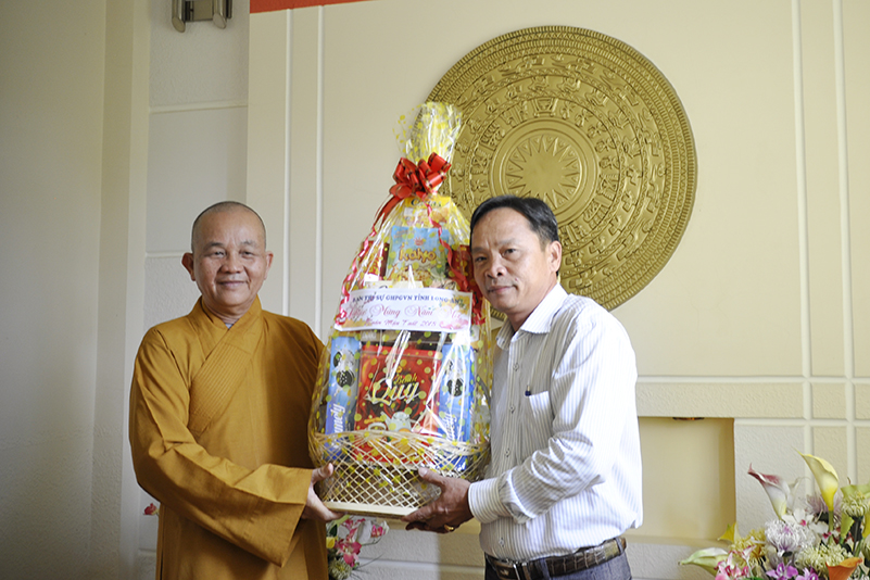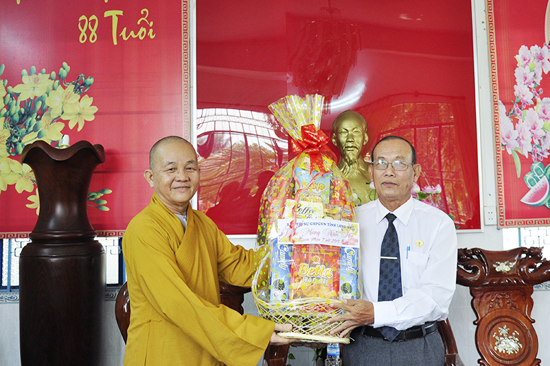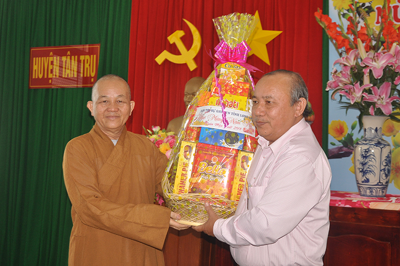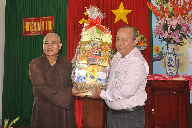 Thay mặt lãnh đạo các ban ngành Huyện thị kính chúc Hòa thượng Thích Minh Thiện cùng toàn thể chư tôn đức BTS GHPGVN tỉnh Long An năm mới nhiều sức khỏe, mong muốn sang năm mới, BTS phối hợp chặt chẽ với các ban ngành chức năng hơn nữa để hoàn thành các công tác Phật sự đã đề ra.