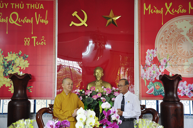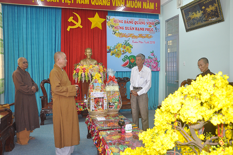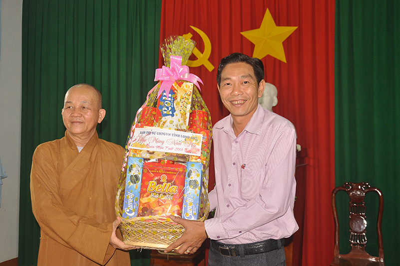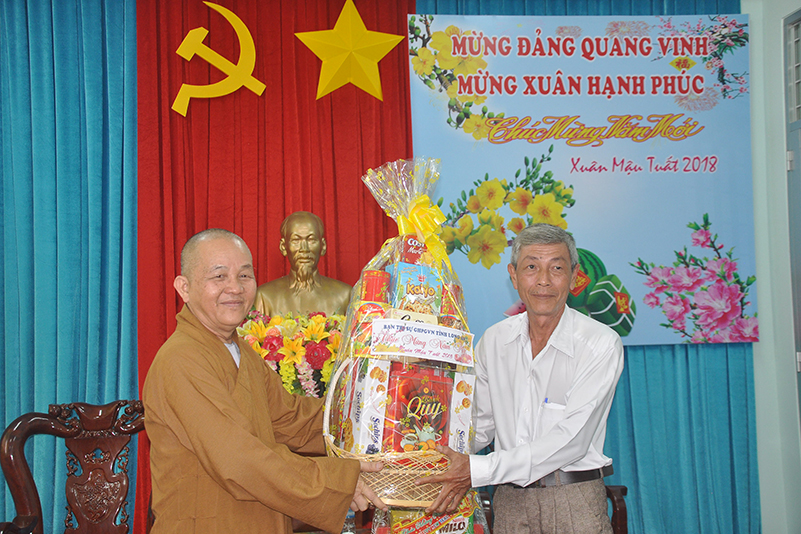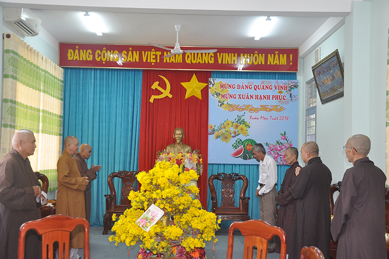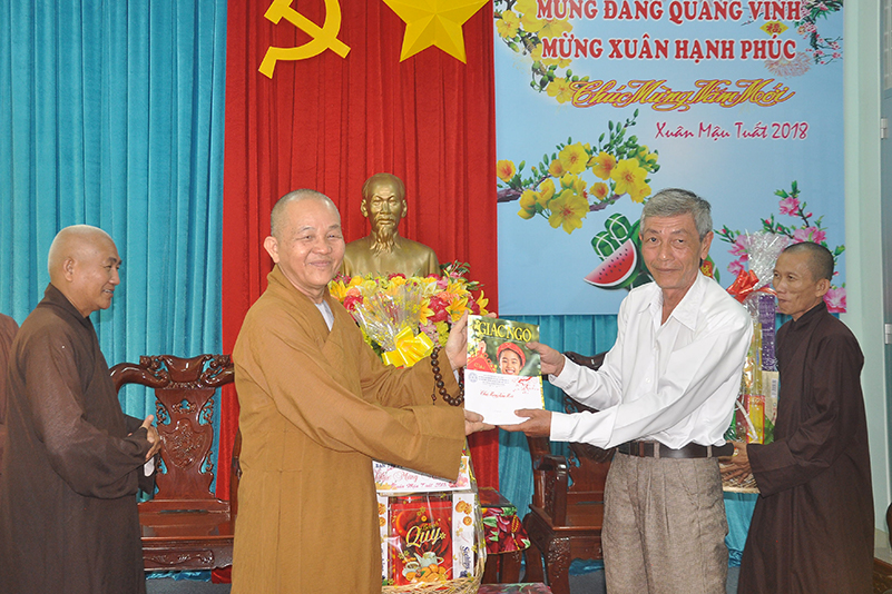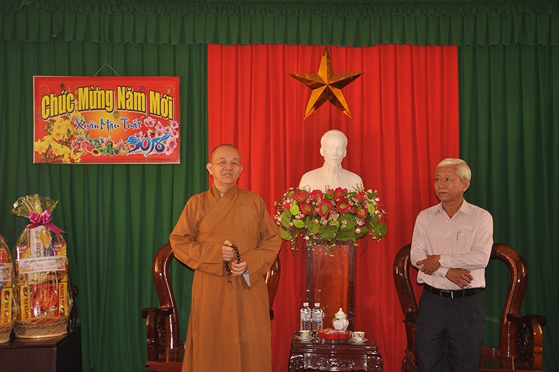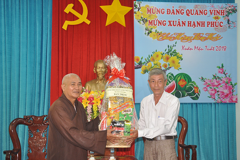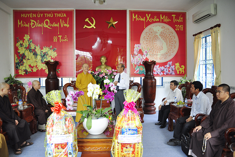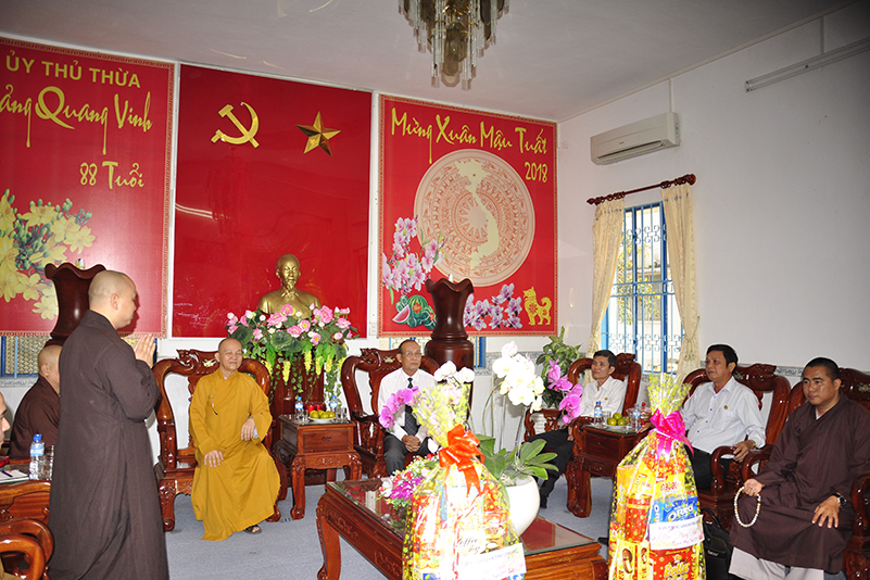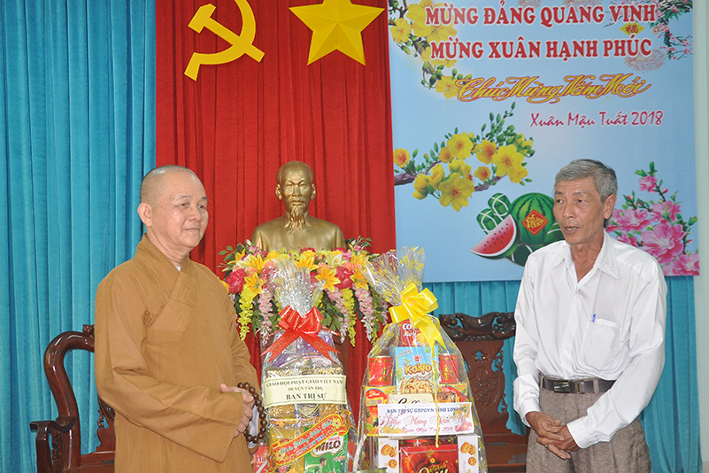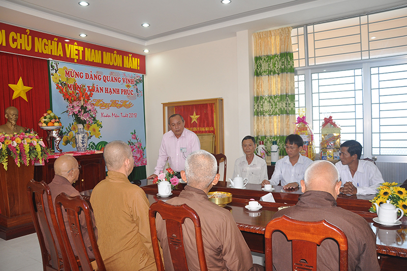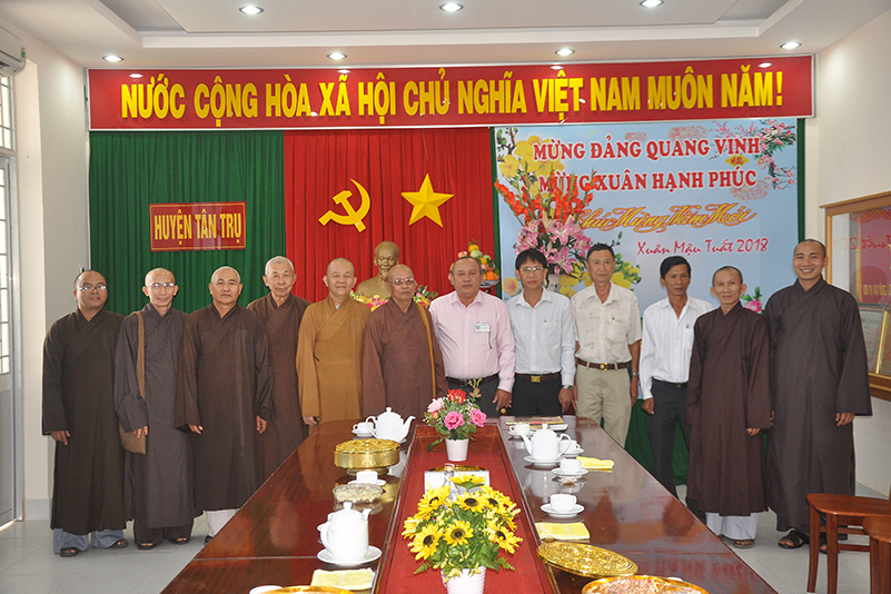 Nhân dịp xuân Mậu Tuất – 2018, Hòa thượng Thích Minh Thiện – Trưởng BTS GHPGVN tỉnh Long An thay mặt các thành viên trong đoàn gửi lời chúc toàn thể lãnh đạo các cấp chính quyền ban ngành đoàn thể huyện thị dồi dào sức khỏe, đón một mùa xuân an lành, hạnh phúc và gặt hái nhiều thành tích trong công tác.