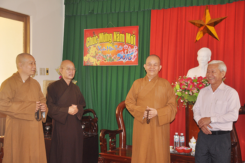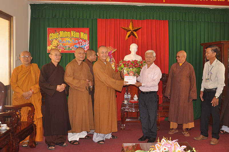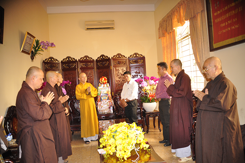Hòa trong không gian đầm ấm, ngập tràn hương vị thiêng liêng ngày Tết cổ truyền của Dân tộc, sáng ngày 7 tháng 02 năm 2017(22/12/ Đinh Dậu) phái đoàn Thường trực Ban Trị Sự GHPGVN tỉnh Long An do Hòa thượng Thích Minh Thiện- Ủy viên Hội Đồng Trị Sự Trung Ương- Phó Ban Hoằng Pháp trung ương, Trưởng ban trị sự GHPGVN tỉnh Long An làm trưởng đoàn đã hướng dẫn Chư tôn đức trong thường trực BTS GHPGVN tỉnh, huyện đến thăm và chúc Tết các Ban ngành đoàn thể chính quyền tại các Huyện thị trong tỉnh Long An.