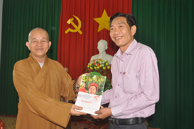 Hòa thượng cũng thông tin đến quý vị lạnh đạo cơ quan, trong năm qua BTS GHPGVN tỉnh Long An đã đạt được nhiều thành tựu trong công tác Phật sự, như sự thành công của Đại Hội Đại Biểu Phật Giáo tỉnh Long An nhiệm kỳ IX (2017 – 2022) diễn ra ngày 28/9/2017, các công tác từ thiện xã hội được thống kê trong năm qua trên 60 tỷ đồng, với trí tuệ và tinh thần đoàn kết, phát huy và xiển dương những giá trị cao đẹp của Phật giáo Việt Nam luôn đồng hành cùng dân tộc.