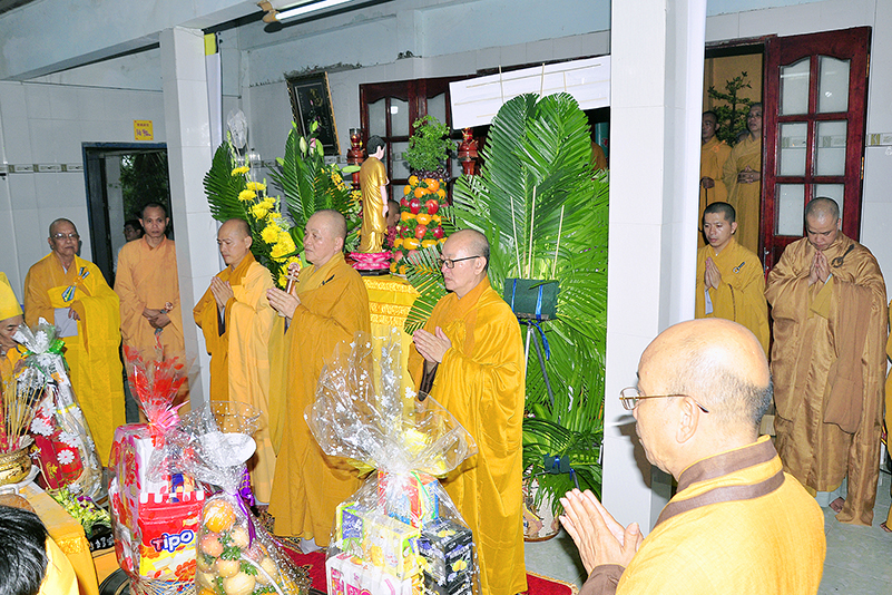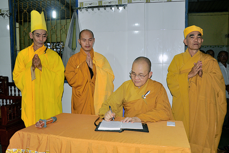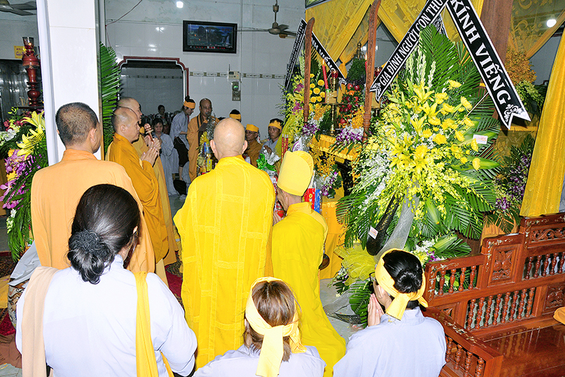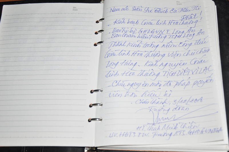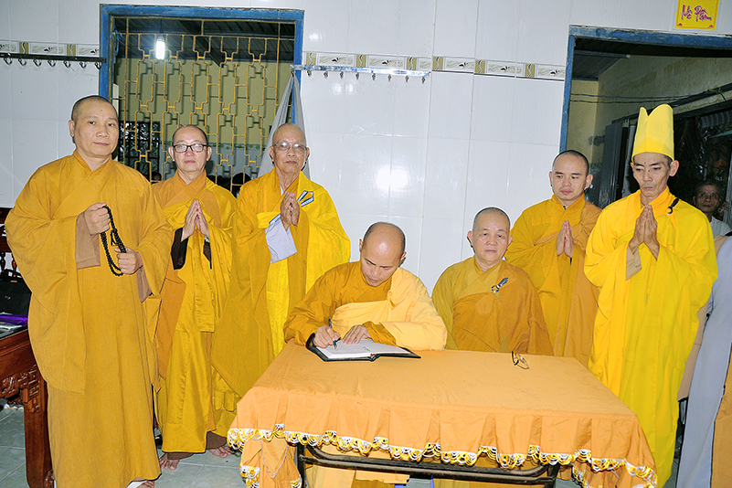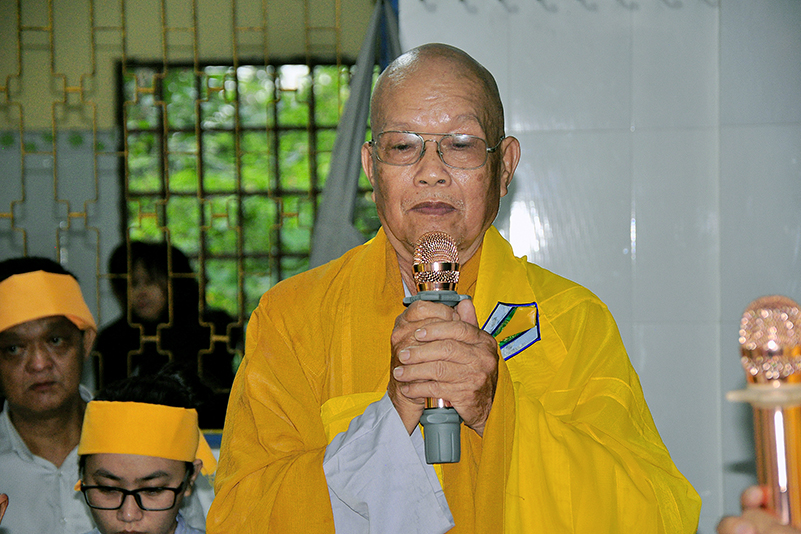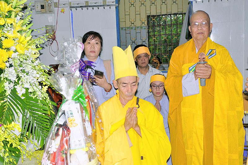 Trong niềm xúc động tình pháp lữ Linh Sơn, HT. Thích Minh Thiện cảm khái ân tình của bậc tiền bối thuở sinh thời đã có nhiều công đức trang nghiêm các Phật sự tại tỉnh nhà. Hòa thượng hồi tưởng những năm tháng Phật giáo Long An thời kỳ sơ khai và phát triển rạng rỡ cho đến ngày hôm nay đều nhờ ân đức của Quý Ngài mật hộ. Hòa thượng nhớ mãi hình ảnh ung dung nhàn nhã, đức hạnh khiêm cung, nụ cười hoan hỷ của Đức Trưởng lão khi chứng minh các Phật sự tại huyện Châu Thành trong những năm tháng gần đây. Những tưởng mùa xuân Kỷ Hợi này vẫn còn được chiêm ngưỡng từ dung, nào hay phút chốc vô thường, cội tùng đã ngã … Do đó, Hòa thượng mong rằng chư Tôn đức Ban Trị sự PGVN huyện Châu Thành gia tâm giúp đỡ, hỗ trợ cho Đại đức Trụ trì, môn nhân pháp quyến hoàn thành tốt các Phật sự tại Bổn tự. Đồng thời, Ngài khích lệ động viên các vị môn nhân có đầy đủ ý chí nghị lực nén niềm xúc cảm trước cảnh sinh ly tử biệt mà nối bước Ân sư, hoàn thành di nguyện cao cả báo ân Tổ Thầy, phụng sự Phật pháp..