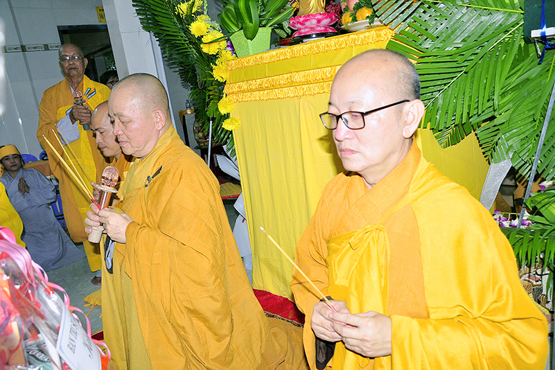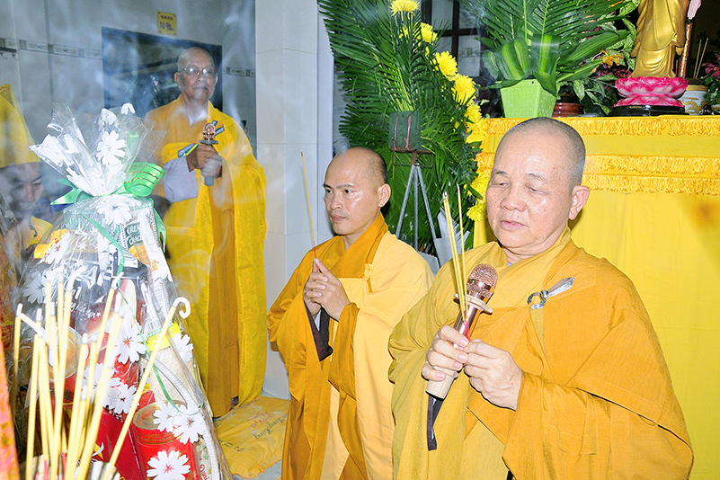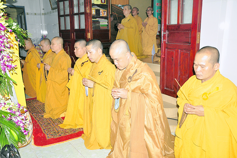Thích Minh Thiện trưởng đoàn kính niêm hương đảnh lễ Giác linh Cố Hòa thượng