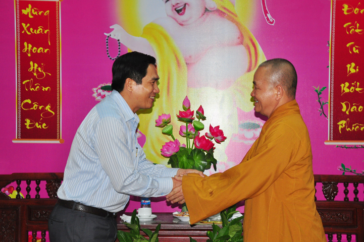 Tại buổi chúc tết Thay mặt phái đoàn ông Trần Thanh Phong cảm ơn Ban Trị sự GHPGVN tỉnh Long An đã hướng dẫn Ban trị sự huyện, các cơ sở Tăng Ni, Phật tử trên địa bàn huyện luôn đồng hành với Đảng, chính quyền trong mọi lĩnh vực, nhất là cuộc vận động toàn dân đoàn kết xây dựng cuộc sống mới, các phong trào thi đua yêu nước, thực hiện “tốt đời, đẹp đạo”. Ông kính chúc sức khỏe đến Chư tôn đức lãnh đạo Giáo hội tỉnh. Đại diện phái đoàn ông Trần Thanh Phong đã tặng thiệp xuân và quà chúc mừng đến Chư tôn đức đón tết vui vẻ.