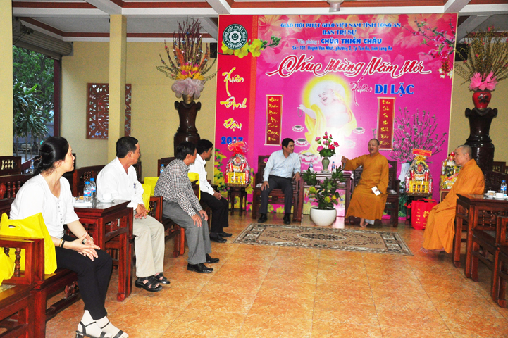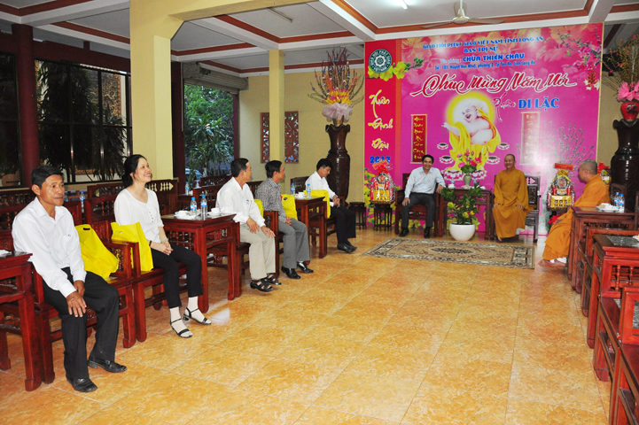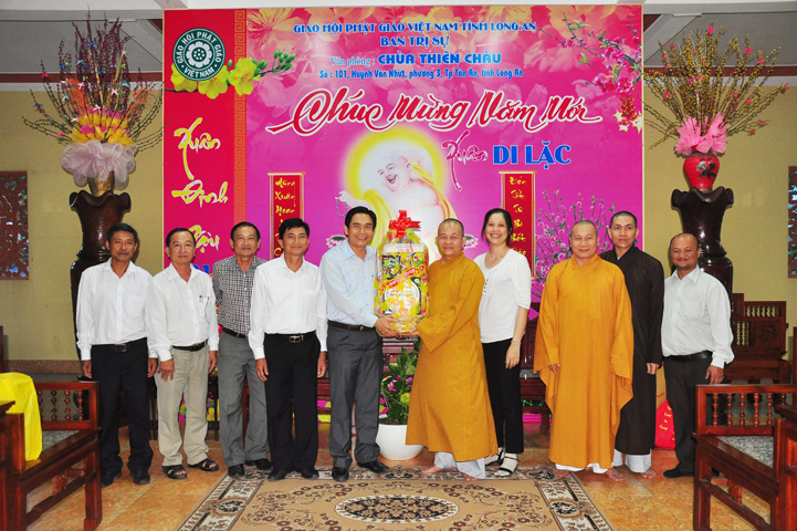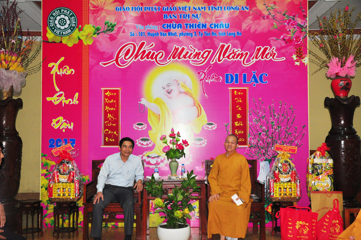 Chiều ngày 16 tháng 01 năm 2017( 19/12/Bính Thân) phái đoàn Huyện Ủy, HĐND, UBND, UBMTTQVN huyện Cần Giuộc tỉnh Long An do Ông Trần Thanh Phong- Phó Bí Thư thường trực huyện Cần Giuộc làm trưởng đoàn đã đến Chùa Thiên Châu, số 101, đường Huỳnh Văn Nhứt, phường 3, Tp. Tân An, tỉnh Long An chúc tết Chư tôn đức lãnh đạo Trị Sự GHPGVN tỉnh Long An.