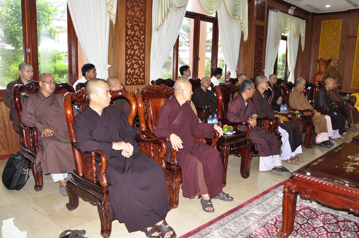 Tại buổi gặp mặt Hoà thượng Thích Minh Thiện thay mặt phái đoàn đã có lời chúc sức khoẻ đến quý vị lãnh đạo. Đồng thời Hoà thượng cũng hoan hỷ báo cáo kết quả thành tựu tốt đẹp Đại hội đại biểu Phật giáo tỉnh nhà. Qua đó, Hoà thượng cũng báo cáo Chư tôn đức Tăng Ni tham dự đại Hội đại biểu Phật giáo toàn quốc lần thứ VIII tại Thủ đô Hà Nội sắp đến.