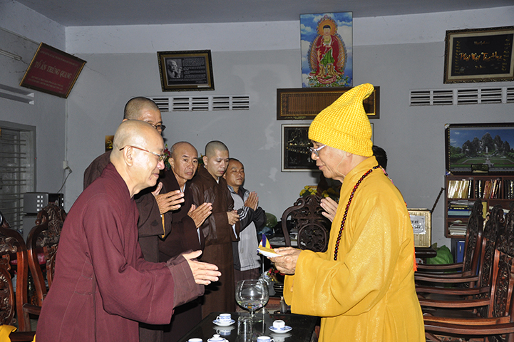 Thay mặt Ban Trị sự GHPGVN tỉnh Phú Yên HT. Thích Nguyên Đức đã có lời tri ân phái đoàn, kính gửi vấn an sức khỏe đến HT. Thích Minh Thiện và chúc chuyến cứu trợ phái đoàn được thành tựu tốt đẹp.