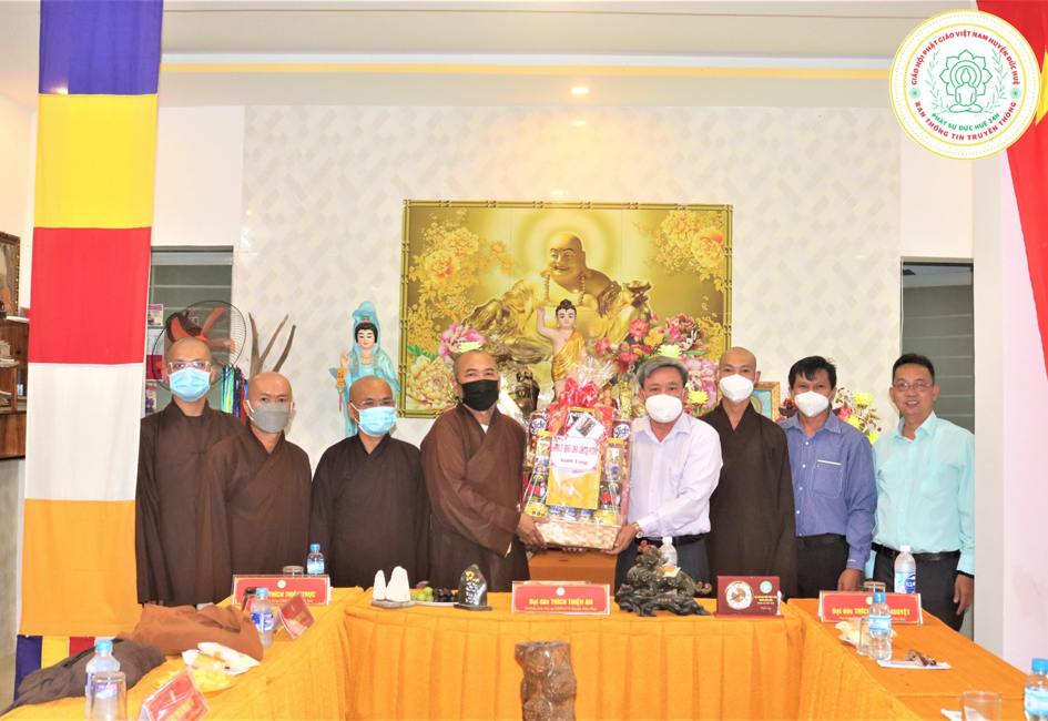 Kết thúc buổi thăm và chúc mừng, đại diện Tỉnh ủy, Ban Dân vận, Ban Tôn giáo Long An đã trao phần quà và chụp ảnh lưu niệm cùng Chư Tôn đức Ban Trị sự Phật giáo huyện Đức Huệ trong tình gắn kết và xây dựng.