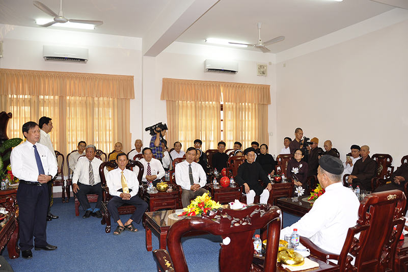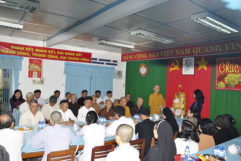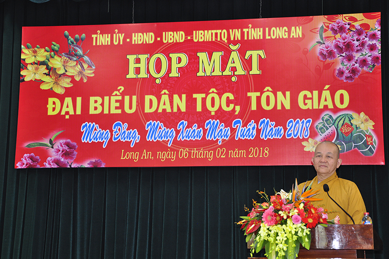 Trong phần phát biểu, Hòa thượng cũng rất hoan hỷ, ghi nhận truyền thống đoàn kết trong khối đại đoàn kết toàn dân của tỉnh. Điều đó được thể hiện 16 năm qua, năm nào các Tôn giáo cũng cùng nhau vấn an chúc tết các cơ quan ban ngành tỉnh ủy, cơ quan hữu quan tỉnh, huyện, thành phố. Đó cũng là điểm đặt biệt của tỉnh khi các Tôn giáo ngồi lại bên nhau, chúc cho nhau những lời tốt đẹp theo truyền thống tế sum vầy, tết cổ truyền của dân tộc Việt.