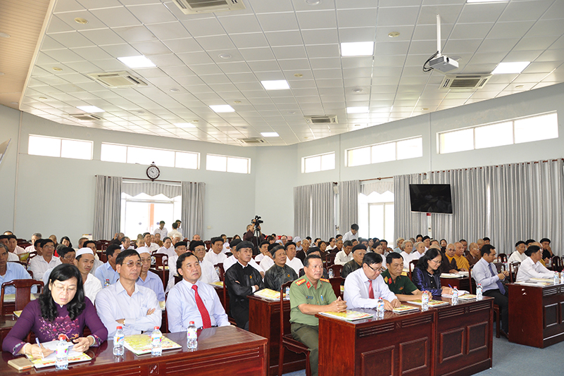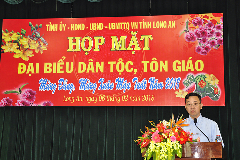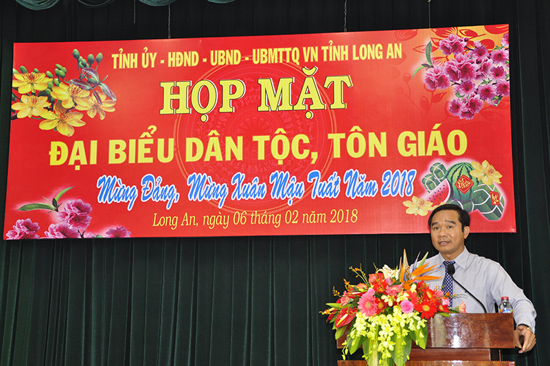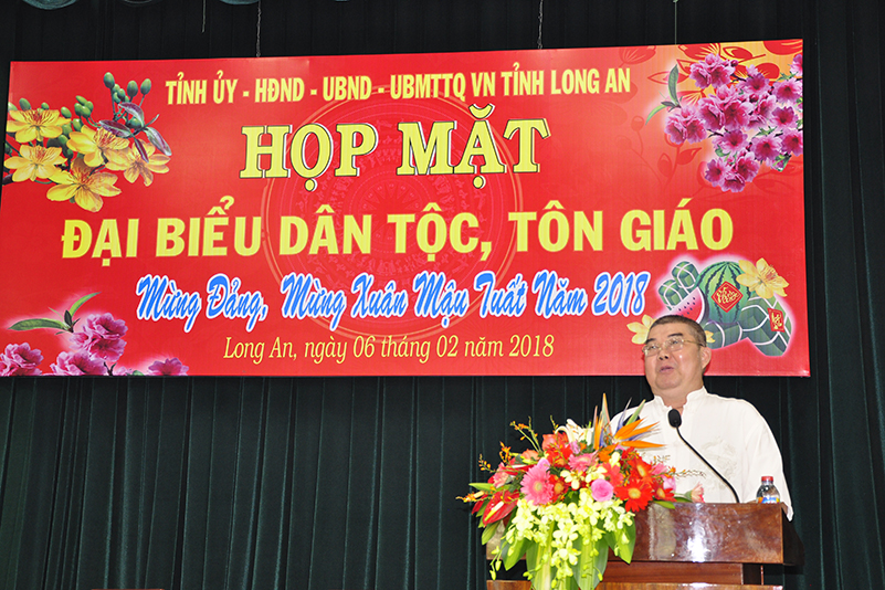Đại diện cho các đại biểu trong phái đoàn Tôn giáo Dân tộc, Hòa thượng Thích Minh Thiện khen ngợi những chính sách đúng đắn, sáng suốt, hợp lòng dân trong năm 2017. Đặc biệt những chính sách phát triển kinh tế, giáo dục, y tế, an sinh xã hội. Hòa thượng nhấn mạnh các Tôn giáo luôn đồng hành cùng Dân tộc, luôn đồng hành cùng chính quyền để lo cho nhân dân. Như trong thời gian qua, các tôn giáo đã đóng góp từ thiện trên 60 tỷ đồng, vận động tín đồ thực hiện chủ trương của tỉnh bảo vệ môi trường xanh – sạch – đẹp; chủ trương chăm lo cho người khó khăn; cùng với Tỉnh ủy xây dựng cơ sở hạ tầng, cầu đường để hoàn thành “ Nông Thôn Mới”.