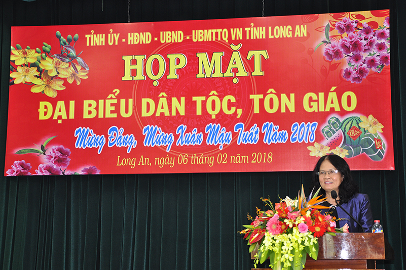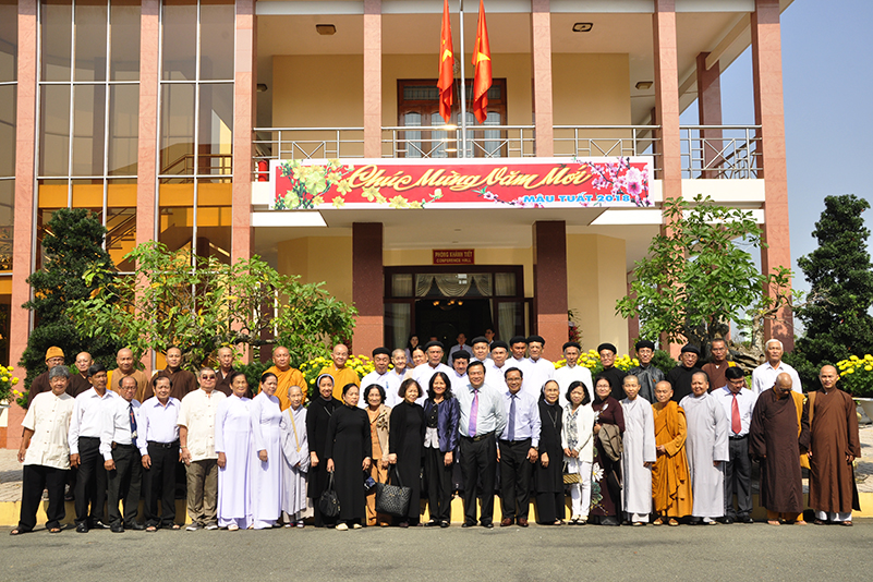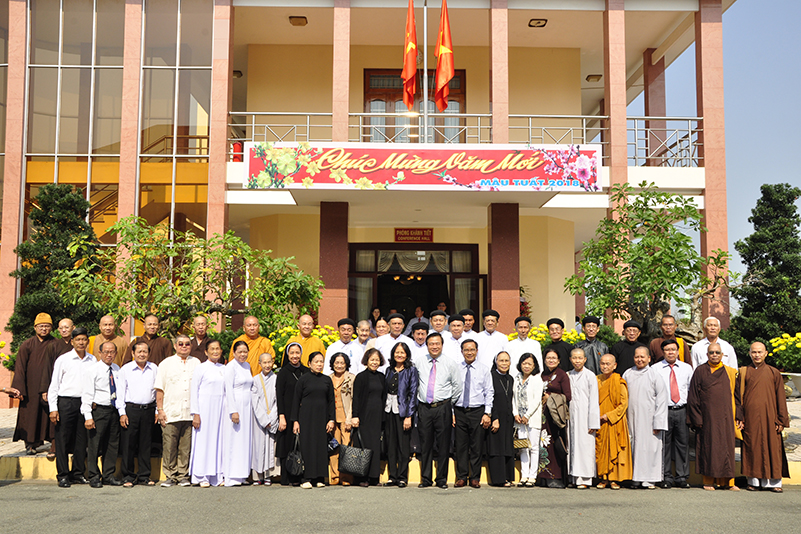 Phái đoàn gồm đại biểu các chức sắc của 12 Tôn giáo do Hòa thượng Thích Minh Thiện Trưởng ban trị sự GHPGVN tỉnh Long An làm trưởng đoàn. Tiếp đoàn có ông Phạm Văn Rạnh – Ủy viên TW Đảng, Bí thư Tỉnh ủy, Chủ tịch HĐND tỉnh Long An; ông Nguyễn Văn Được Ủy viên thường vụ Tỉnh ủy, Phó chủ tịch UBND tỉnh Long An; bà Nguyễn Thị Ngọc Hạnh – Ủy viên thường vụ Tỉnh Ủy, Trưởng ban Dân vận Tỉnh ủy cùng các cấp lãnh đạo tỉnh, Tp . Tân An.