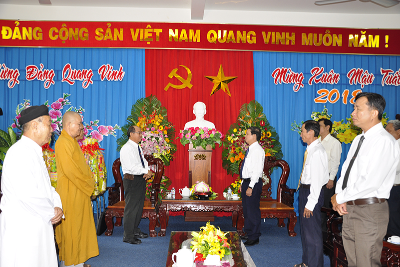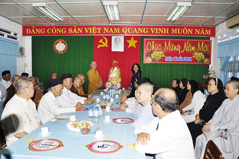 Quý cấp lãnh đạo đã thông tin, chia sẽ thành quả đạt được của tỉnh trong năm 2017 và kế hoạch năm 2018. Cũng dịp này, Hoà thượng Thích Minh Thiện đã cám ơn quý lãnh đạo đã tạo điều kiện cho các Tôn giáo hoạt động, phát triển theo pháp luật. Cũng từ đó tạo nên sự đoàn kết của các Tôn giáo, tạo thành mặt trận khối đại đoàn kết Dân tộc và buổi cơm thân mật.