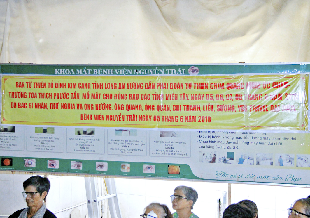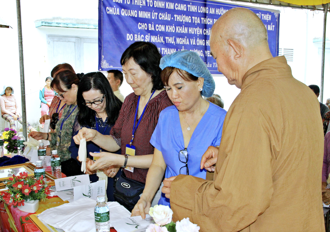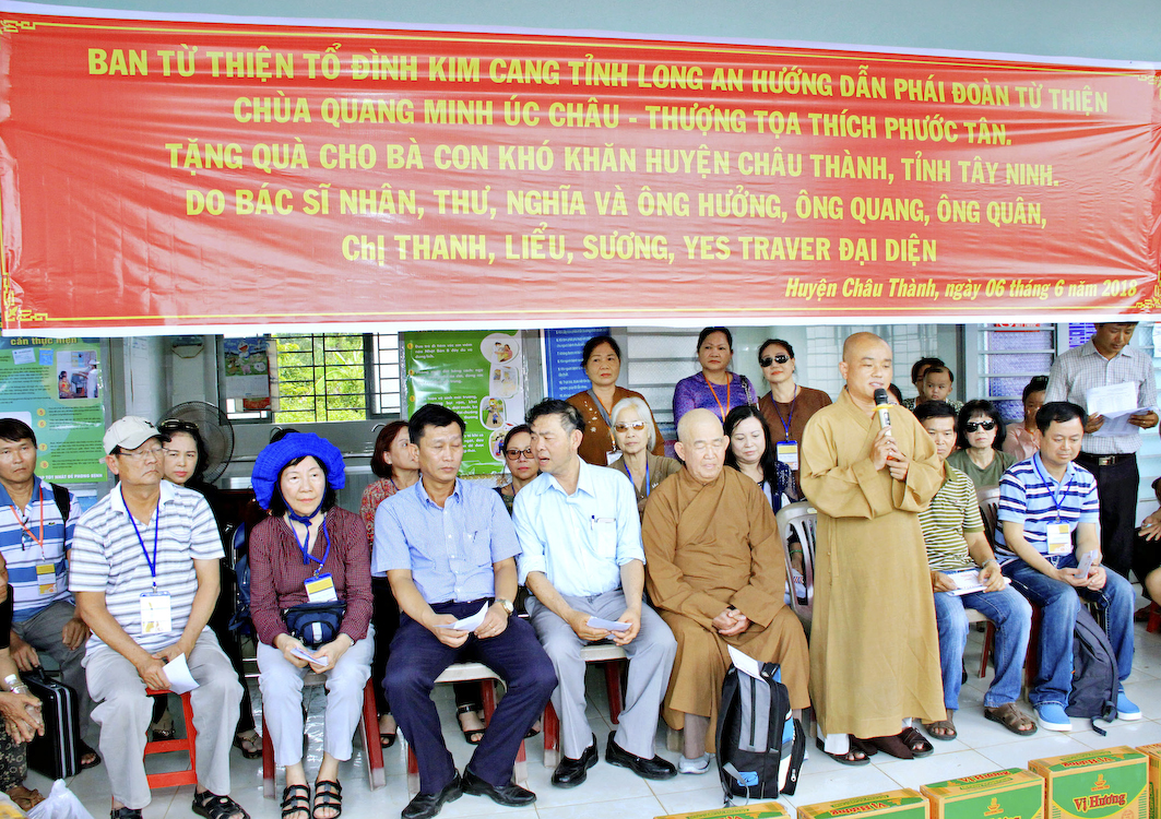 Với tâm từ bi vị tha, lấy niềm vui lợi ích cho người làm niềm vui chính mình, năm nay phái đoàn Từ thiện Phật giáo tại Úc châu chùa Quang Minh do Thượng tọa Thích Phước Thiền đại diện hướng dẫn đoàn về Việt Nam từ thiện, phẫu thuật mắt cho các bệnh nhân nghèo tại 6 tỉnh miền Nam Trung bộ như Long An, Tây Ninh v.v. và thành phố Hồ Chí Minh.