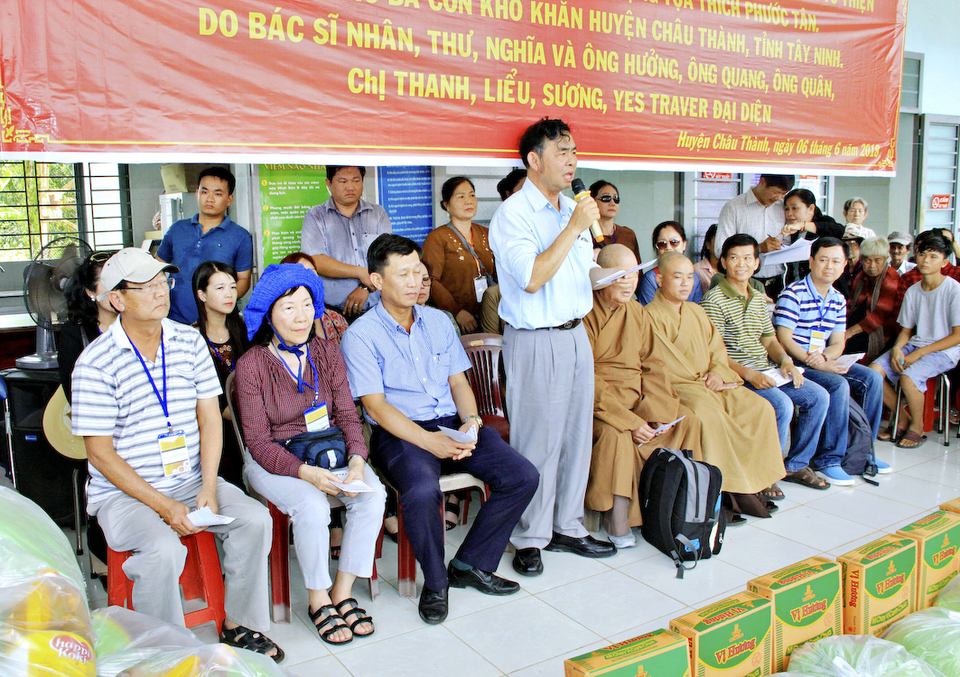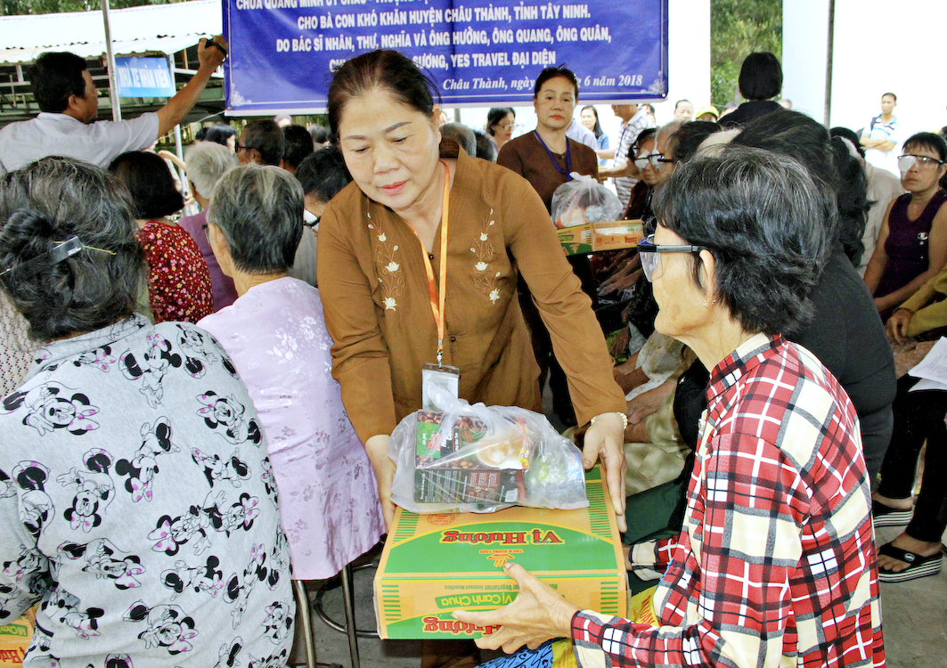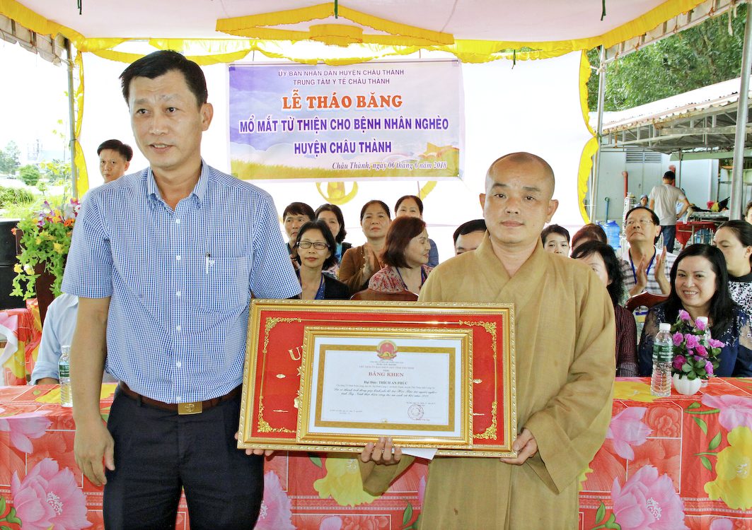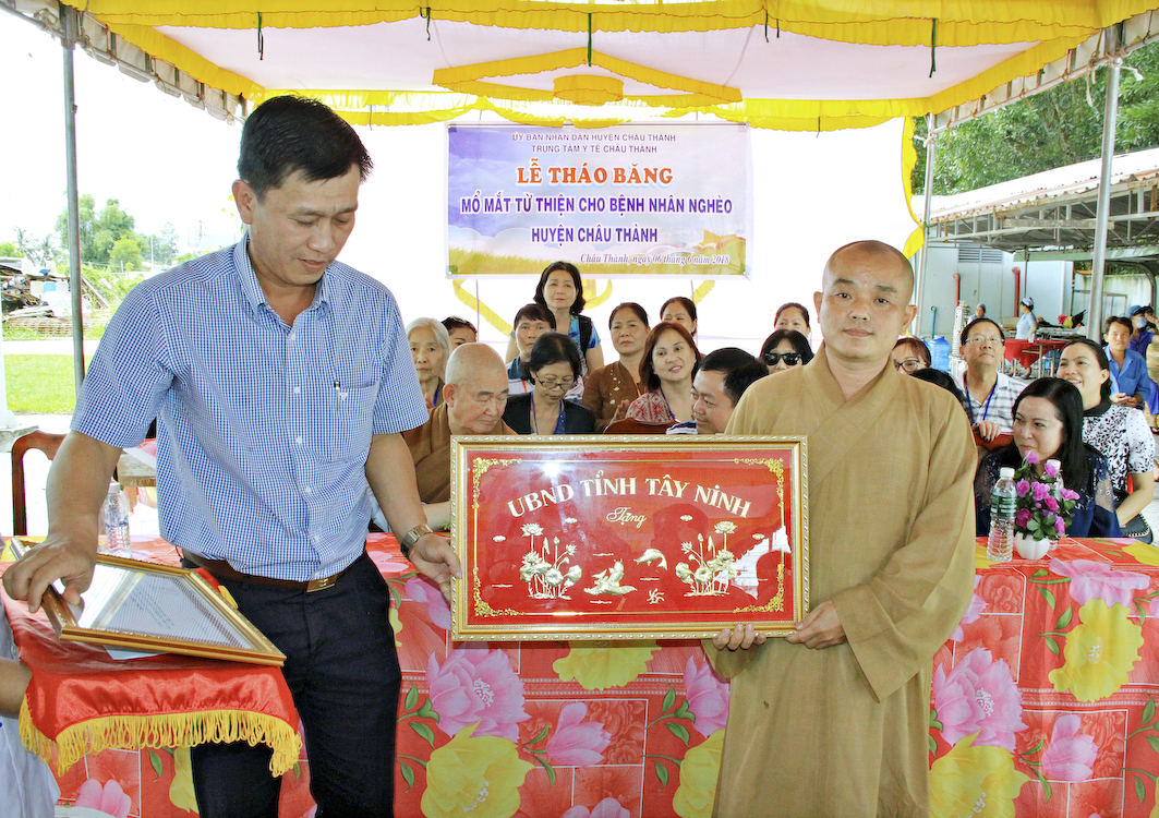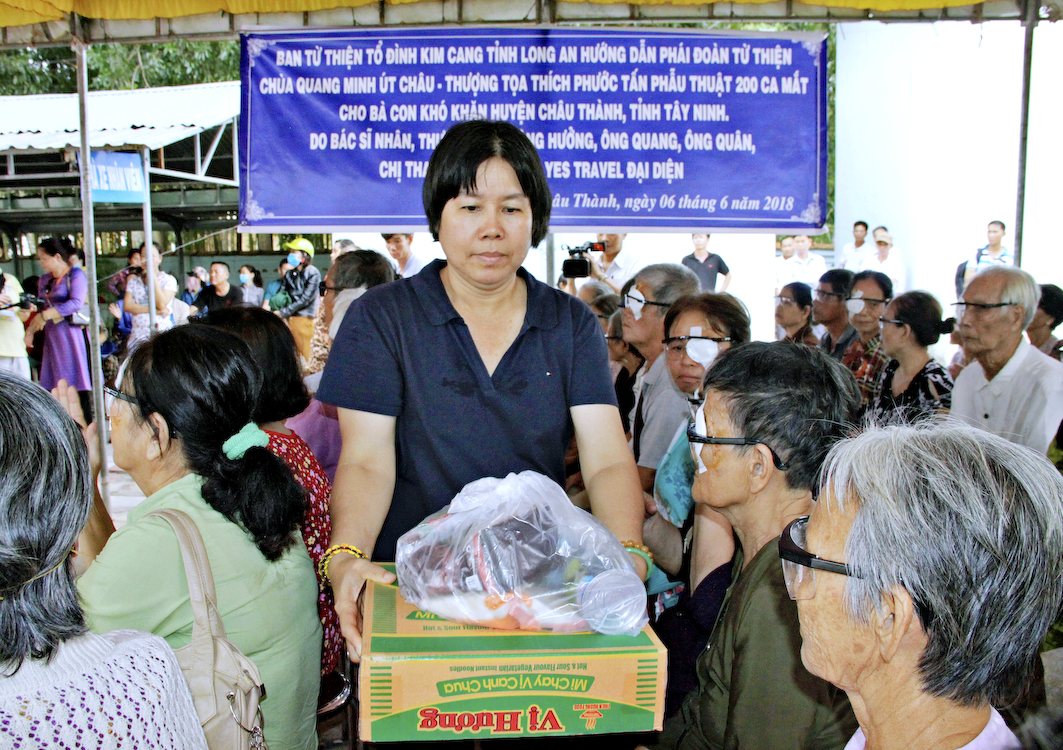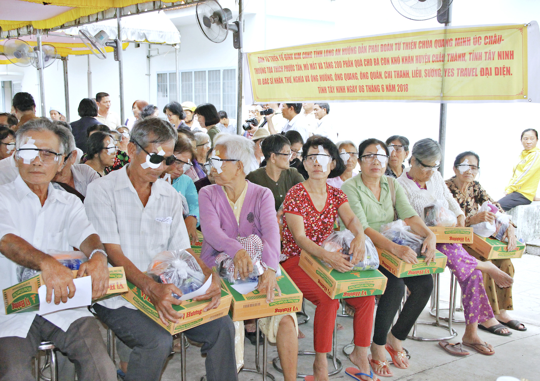 Sáng ngày 6/6/2018 (nhằm ngày 23/4/ Mậu Tuất), vào lúc 6g, Phái đoàn đã tập trung tại Tổ đình Ấn Quang và khởi hành về tỉnh Tây Ninh tổ chức phẫu thuật mắt cho 250 ca bệnh và quà; đồng thời còn tặng 200 phần quà (700.000đ/1phần) cho các bà con khó khăn tại huyện Châu Thành.