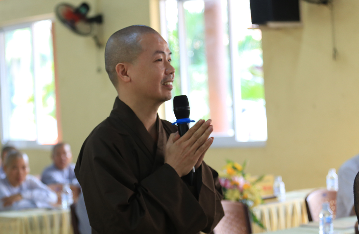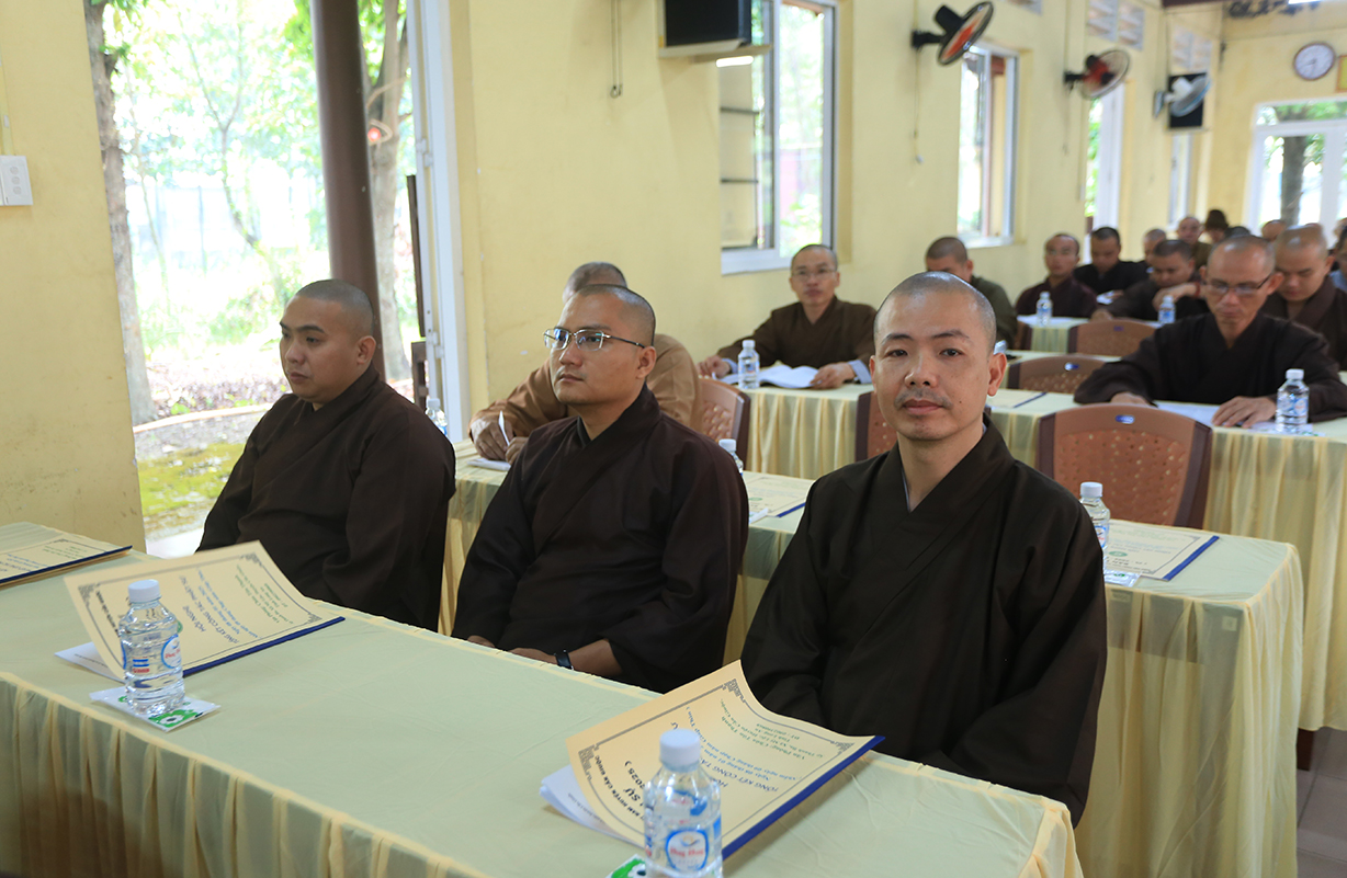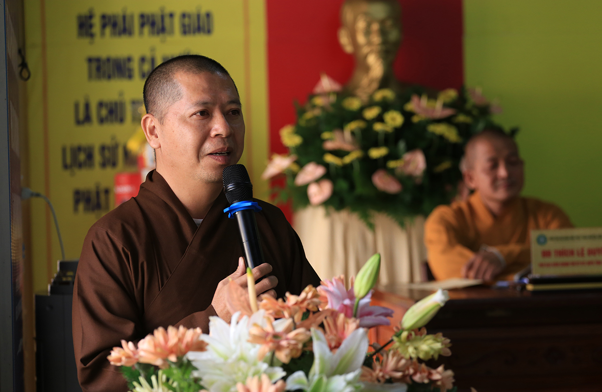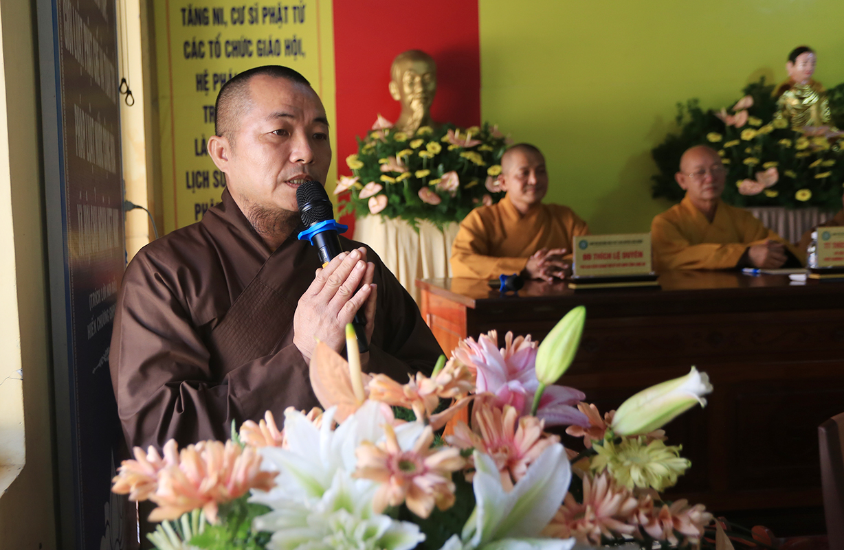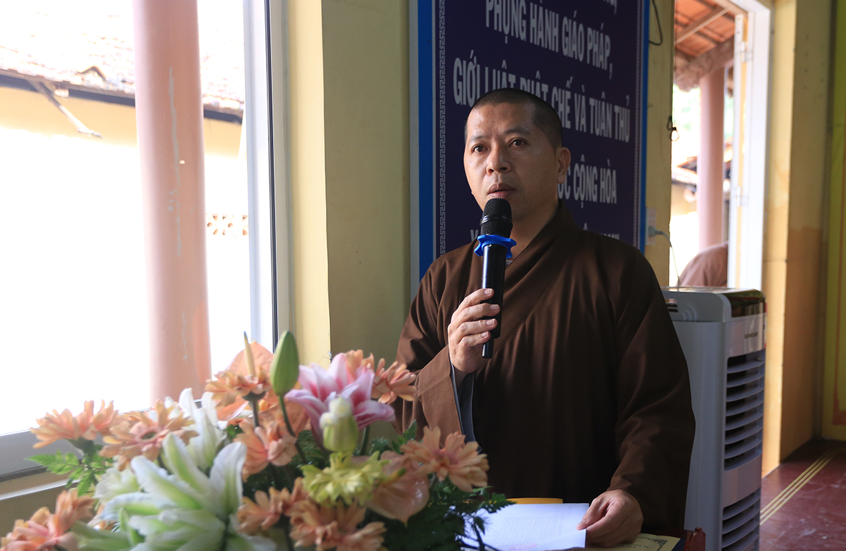 TT. Thích Quảng Tâm – UV HĐTS, Phó BTS GHPGVN tỉnh Long An có lời phát biểu. Thượng toạ gửi lời thăm hỏi và chúc mừng Hội nghị của Hòa Thượng Trưởng BTS GHPGVN tỉnh Long An đến BTS GHPGVN huyện Cần Giuộc. Bên cạnh đó, Thượng toạ tán dương thành tích của các ban chuyên ngành BTS huyện Cần Giuộc đạt được trong năm 2024, cũng như tán thán thành tích cao của đơn vị Phật giáo Cần Giuộc tại Hội thi Giáo lý Phật tử vừa qua. Thượng toạ thông tri về Đại lễ Vesak năm 2025 sẽ được tổ chức tại Học Viện Phật Giáo Việt Nam tại TP.HCM. Phật giáo tỉnh Long An, cụ thể, Chùa Tôn Thạnh là một trong những điểm sẽ đón tiếp đông đảo các phái đoàn Tăng Ni Phật tử từ các tỉnh phía Bắc về tham dự lễ Vesak. Về Đại giới đàn Đạt Pháp, Thượng toạ hy vọng Chư Tôn đức BTS huyện Cần Giuộc hỗ trợ để Đại giới đàn được thành tựu tốt đẹp.