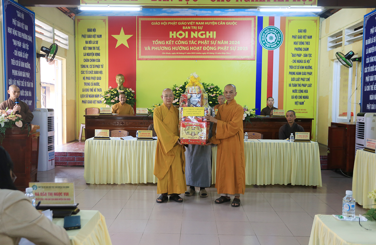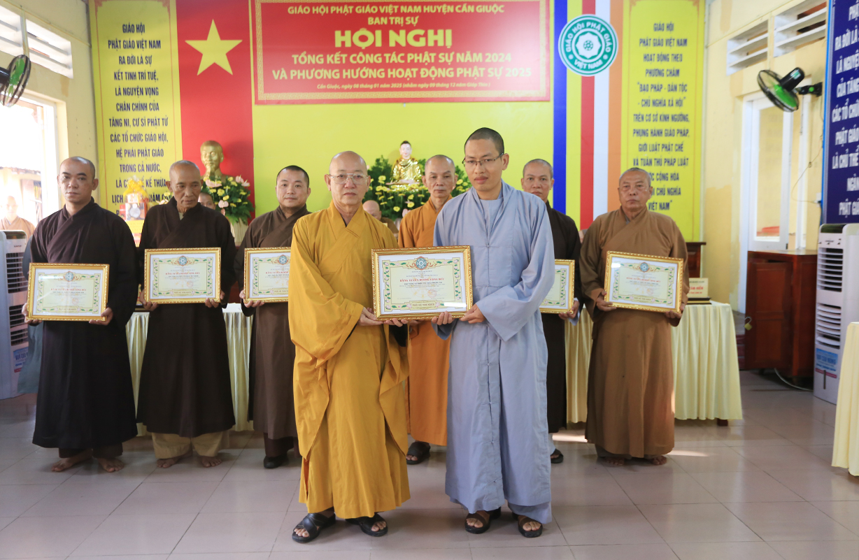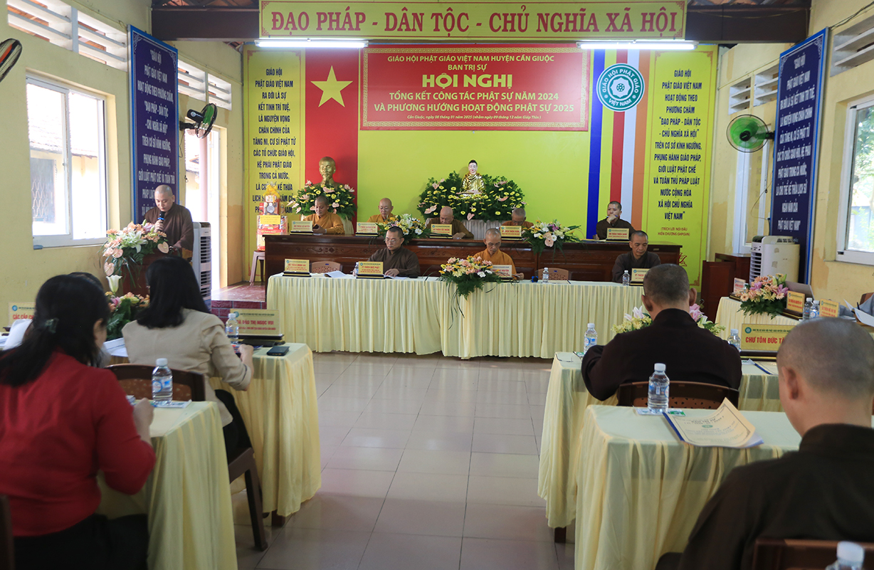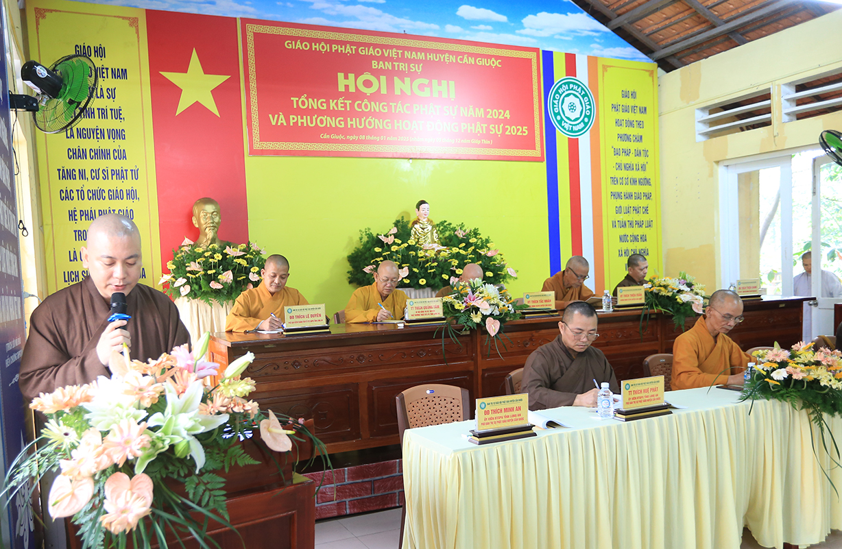 Tại Hội nghị, ĐĐ. Thích An Nguyên – Chánh Thư ký BTS GHPGVN huyện Cần Giuộc thông qua báo cáo công tác Phật sự năm 2024 và phương hướng hoạt động Phật sự năm 2025. Theo đó, Phật giáo huyện Cần Giuộc thực hiện tốt sự chỉ đạo của BTS Phật giáo tỉnh: duy trì các điểm An cư kiết hạ, tham dự và đạt thành tích cao tại Hội thi giáo lý Phật tử tỉnh Long An, duy trì nhiều đạo tràng tu học, lớp giáo lý,… Nổi bật nhất là công tác từ thiện xã hội, đạt trị giá 18.871.504.000đ (mười tám tỷ tám trăm bảy mươi mốt triệu năm trăm lẻ tư nghìn đồng).