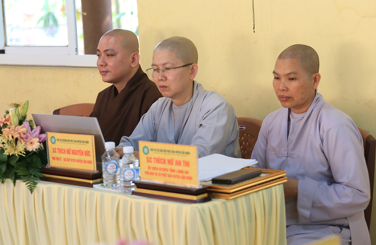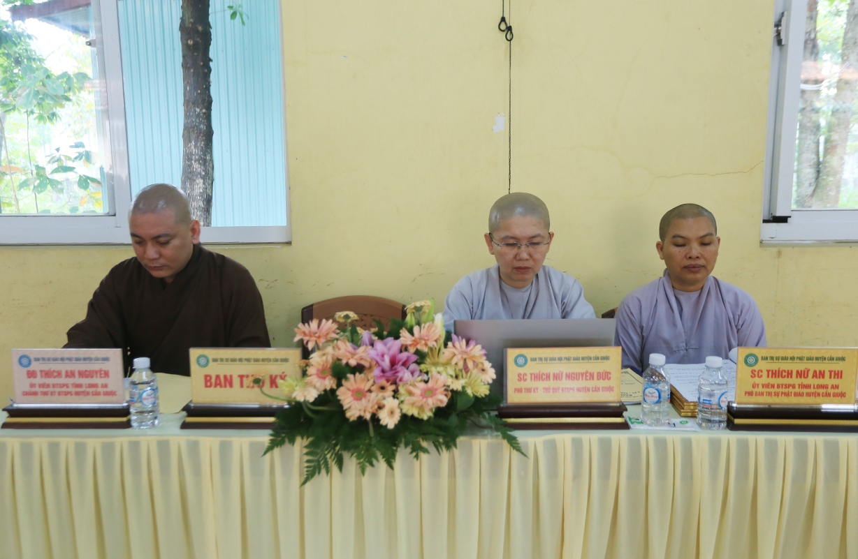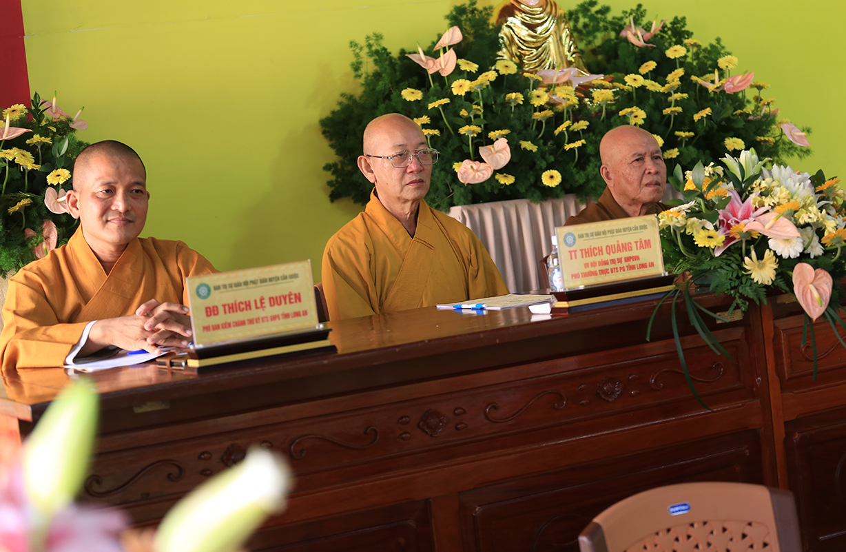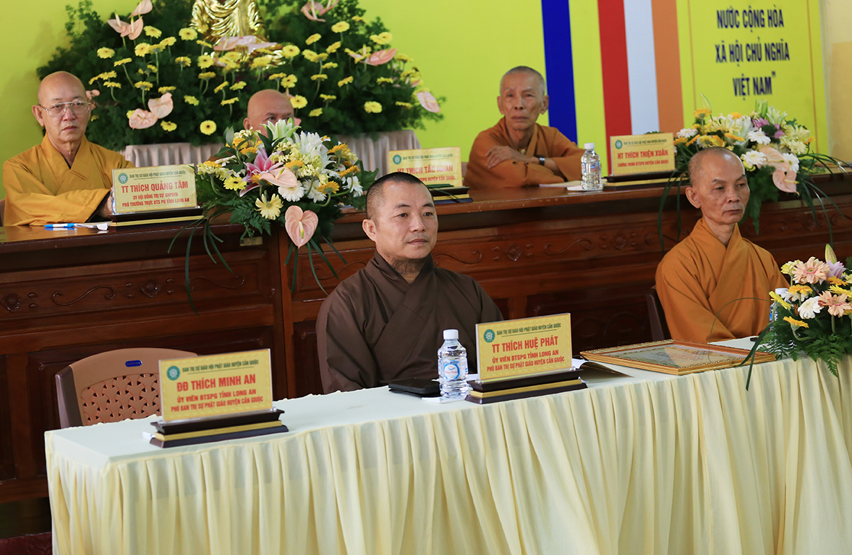 Hội nghị cung nghinh sự quang lâm chứng minh của: TT. Thích Quảng Tâm – UV HĐTS, Phó ban Thường trực BTS GHPGVN tỉnh Long An; ĐĐ. Thích Lệ Duyên – Phó ban kiêm Chánh Thư ký BTS GHPGVN tỉnh; ĐĐ. Thích Thiện Danh – Phó Thư ký kiêm Chánh Văn phòng BTS GHPGVN tỉnh; TT. Thích Tâm Hiền – UVTT BTS GHPGVN tỉnh; HT. Thích Thiện Xuân, HT. Thích Tắc Nhàn – Đồng Chứng minh BTS GHPGVN huyện Cần Giuộc; TT. Thích Tắc Nguyên – UV BTS GHPGVN tỉnh, Trưởng BTS GHPGVN huyện Cần Giuộc; TT. Thích Huệ Phát – Phó BTS GHPGVN huyện Cần Giuộc; cùng Chư Tôn đức Ban Thường trực BTS GHPGVN tỉnh Long An, huyện Cần Giuộc; Chư Tôn đức các trú xứ, tự viện Phật giáo huyện Cần Giuộc đồng tham dự.