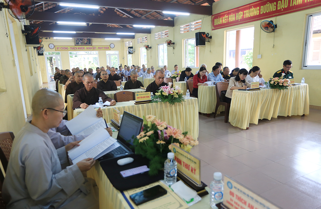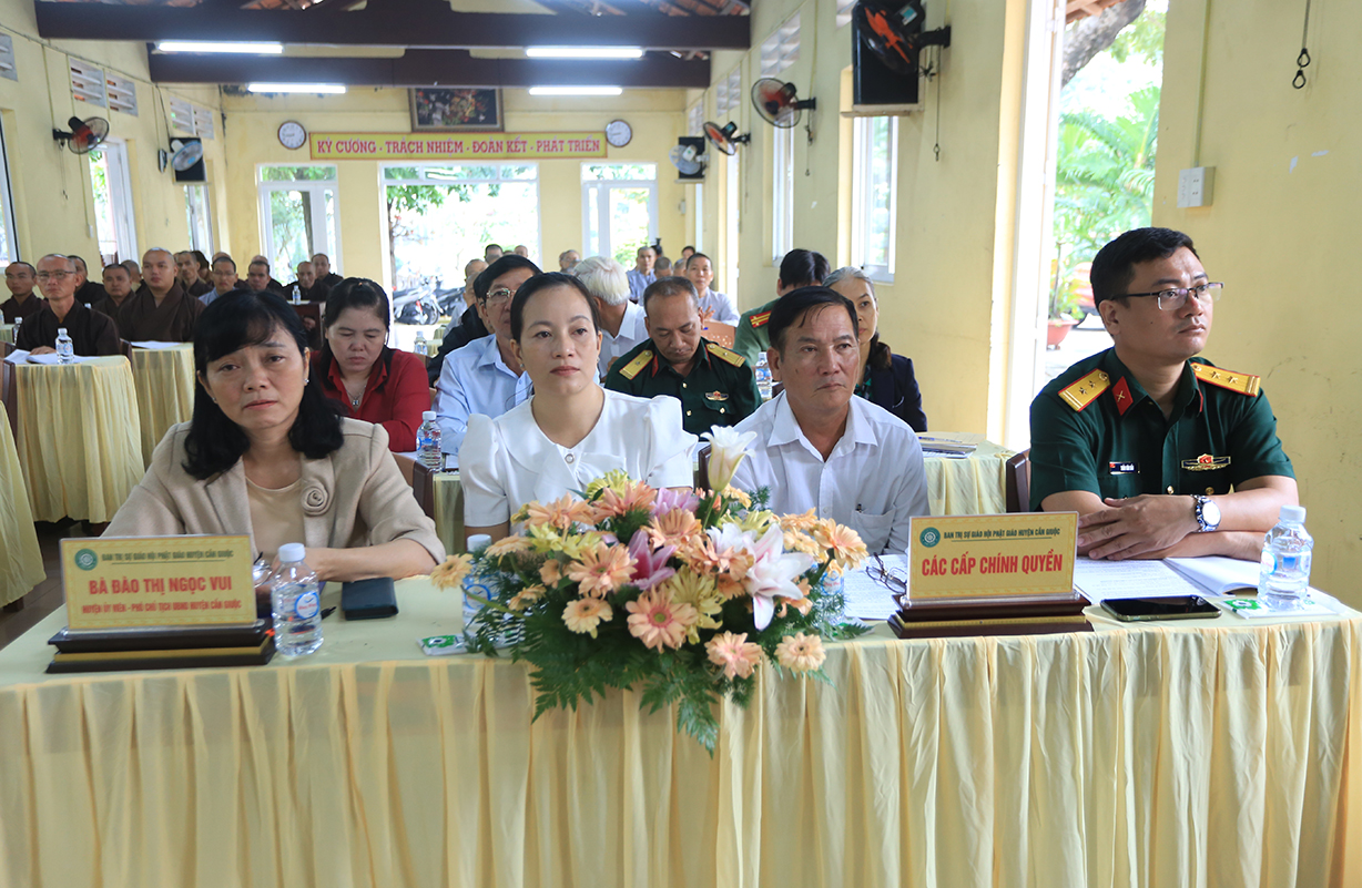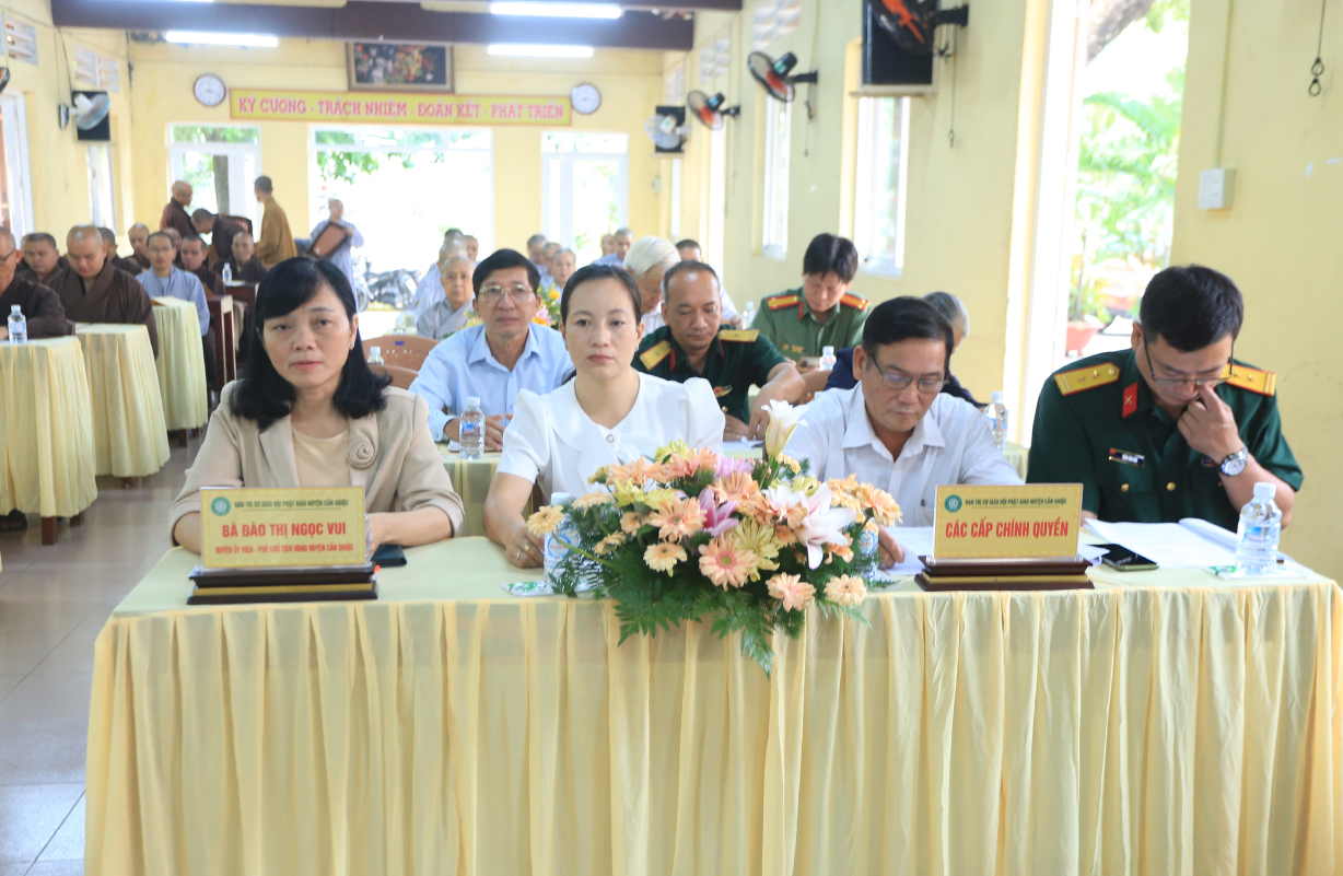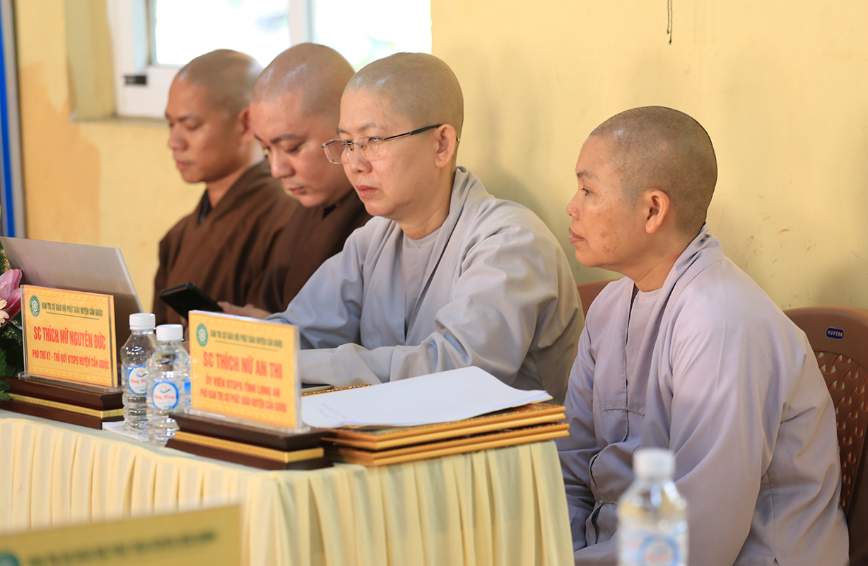 Hội nghị cung nghinh sự quang lâm chứng minh của: TT. Thích Quảng Tâm – UV HĐTS, Phó ban Thường trực BTS GHPGVN tỉnh Long An; ĐĐ. Thích Lệ Duyên – Phó ban kiêm Chánh Thư ký BTS GHPGVN tỉnh; ĐĐ. Thích Thiện Danh – Phó Thư ký kiêm Chánh Văn phòng BTS GHPGVN tỉnh; TT. Thích Tâm Hiền – UVTT BTS GHPGVN tỉnh; HT. Thích Thiện Xuân, HT. Thích Tắc Nhàn – Đồng Chứng minh BTS GHPGVN huyện Cần Giuộc; TT. Thích Tắc Nguyên – UV BTS GHPGVN tỉnh, Trưởng BTS GHPGVN huyện Cần Giuộc; TT. Thích Huệ Phát – Phó BTS GHPGVN huyện Cần Giuộc; cùng Chư Tôn đức Ban Thường trực BTS GHPGVN tỉnh Long An, huyện Cần Giuộc; Chư Tôn đức các trú xứ, tự viện Phật giáo huyện Cần Giuộc đồng tham dự.