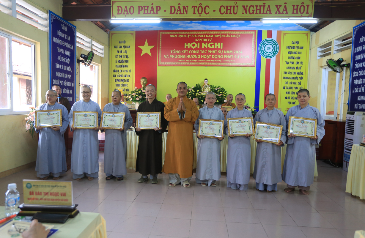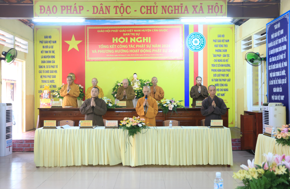 Sáng ngày 08/01/2025 (nhằm ngày 09/12/Giáp Thìn), tại Văn phòng BTS GHPGVN huyện Cần Giuộc – Chùa Tôn Thạnh, ấp Thanh Ba, xã Mỹ Lộc, huyện Cần Giuộc, tỉnh Long An đã long trọng diễn ra Hội nghị Tổng kết công tác Phật sự BTS GHPGVN huyện Cần Giuộc năm 2024.