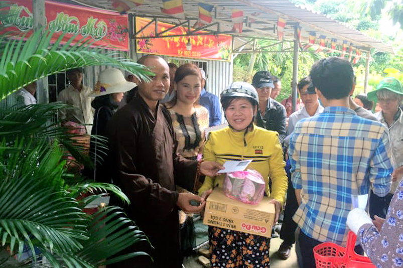 Bên cạnh đó Đại Đức Thích Huệ Quang còn vận động Nhóm bạn GOOP THIỆN NGUYỆN TP HCM về tặng 100 phần quà cho bà con nghèo tại địa phương, mỗi phần trị giá 300 nghìn đồng.
