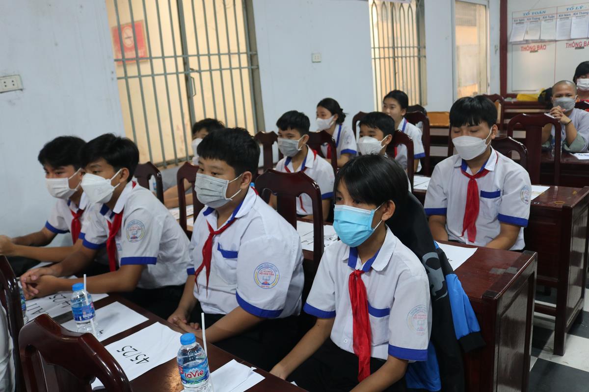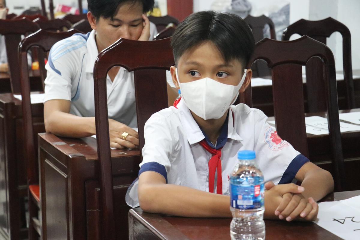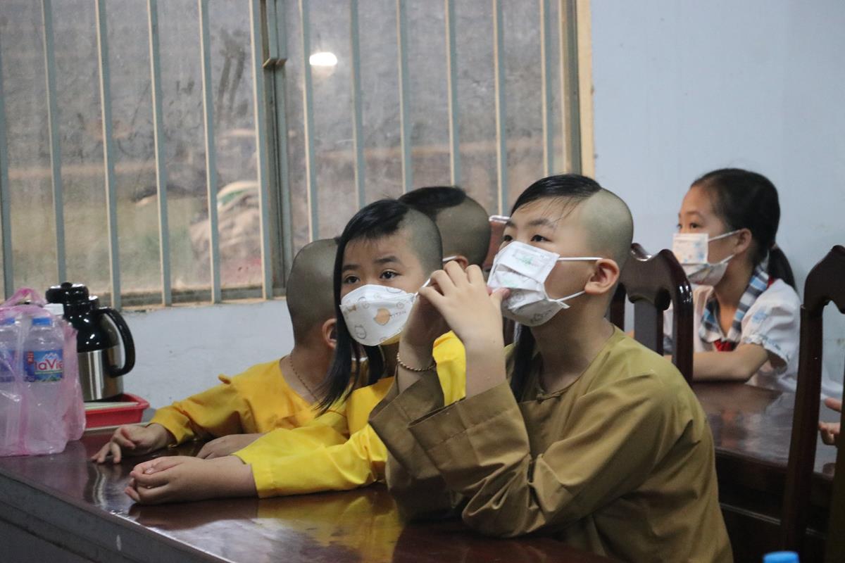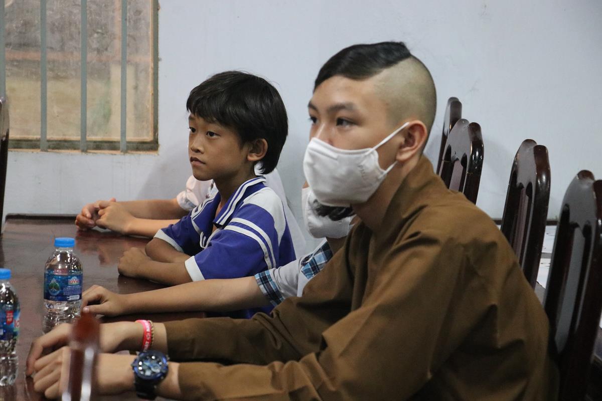 Thay mặt các em học sinh nhận quà, em Bùi Bình Minh học sinh lớp 9A5 trường THCS Võ Văn Tần có lời phát biểu tri ân Chư tôn đức, SC. Thích Nữ Liên Thảo và quý Mạnh Thường quân đã hỗ trợ những phần quà tới các em. Em hứa sẽ nỗ lực học tập để có một kết quả thật tốt trong kỳ thi sắp tới. Cuối lời em gửi lời tri ân chân thành và lời chúc sức khỏe tới toàn thể hội trường.