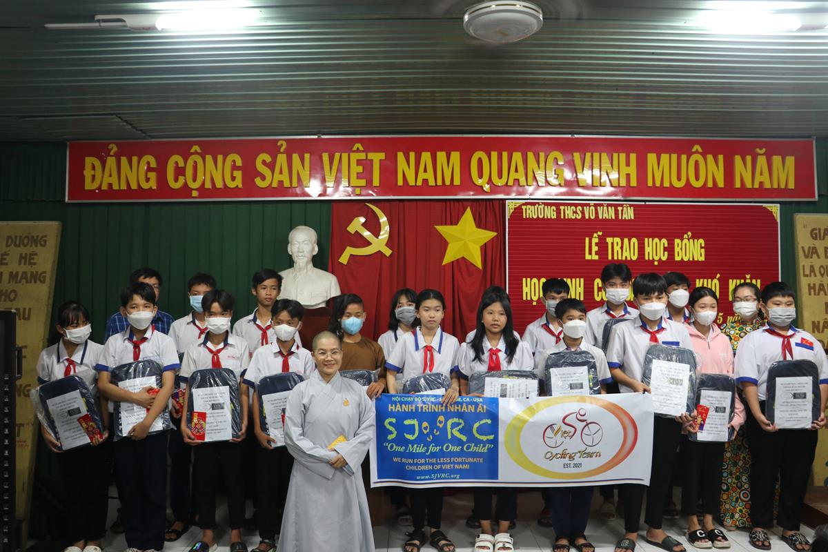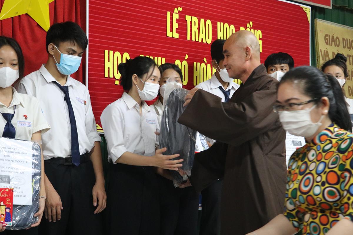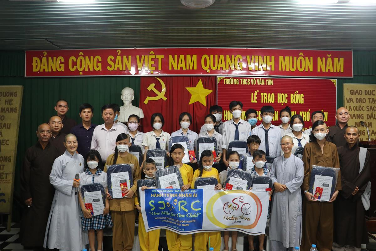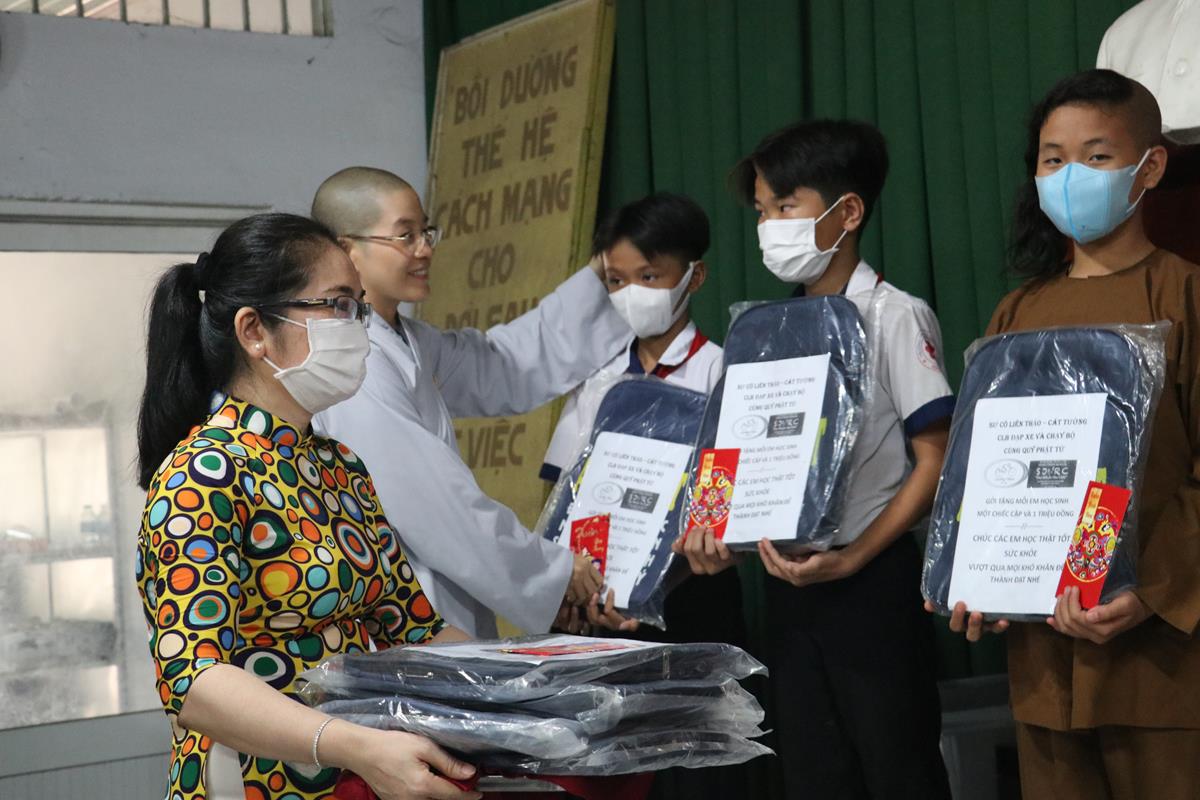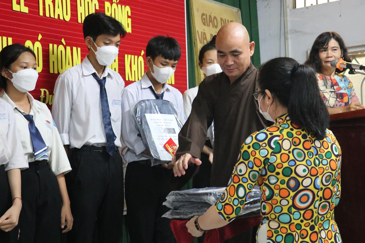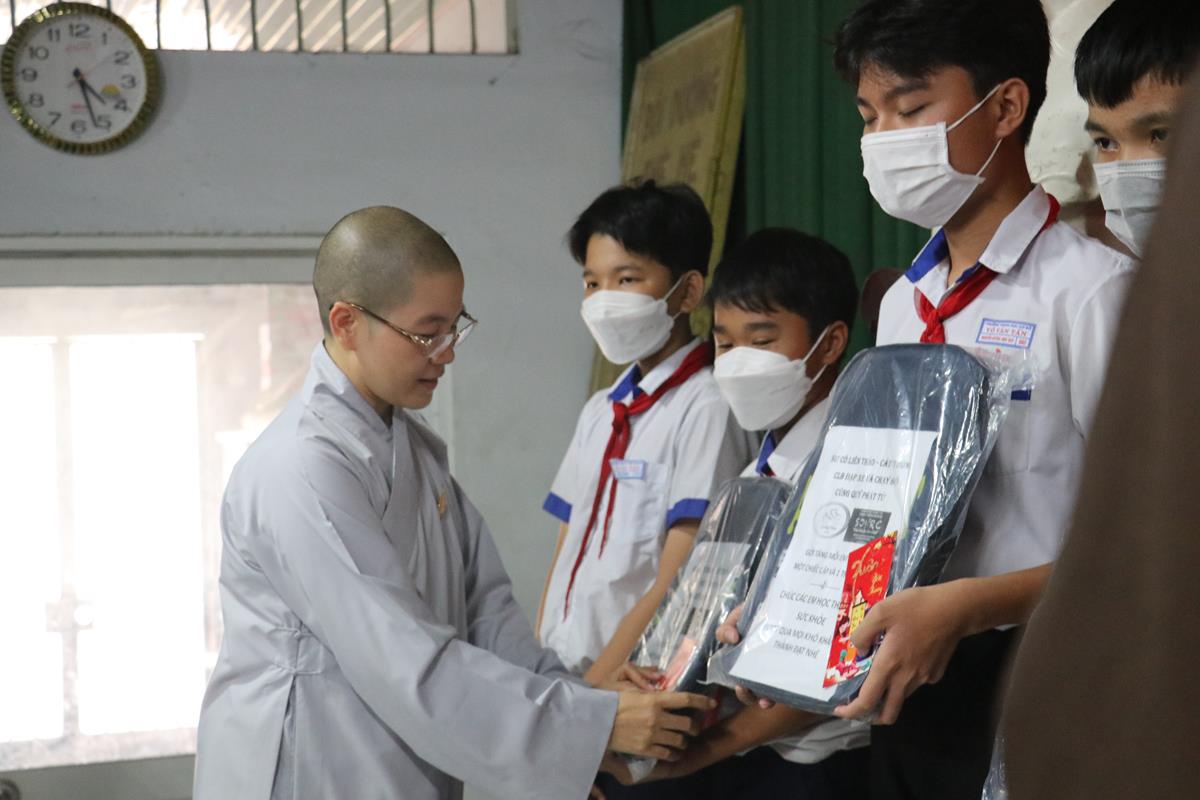 Phát biểu trong buổi lễ, Sư Cô Thích Nữ Liên Thảo cho biết nhờ có sự hỗ trợ từ CLB đạp xe và chạy bộ của các thành viên tại Việt Nam, Mỹ quốc cùng sự chung tay của quý Sư cô và các Phật tử đã tài trợ, góp phần gởi tới các em học sinh trên địa bàn huyện Đức Hòa có hoàn cảnh khó khăn. Dưới sự Chứng minh của Chư tôn đức Ban Thường trực BTS GHPGVN huyện Đức Hòa, Ban Hoằng Pháp và chính quyền sở tại đã tạo điều kiện để buổi lễ phát quà được thành công tốt đẹp. Sư cô cảm ơn giúp đỡ nhiệt tình của Ban giám hiệu trường và các giáo viên đã chung tay làm nên thiện sự ý nghĩa này.