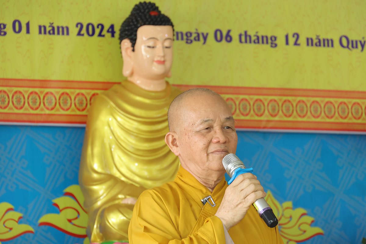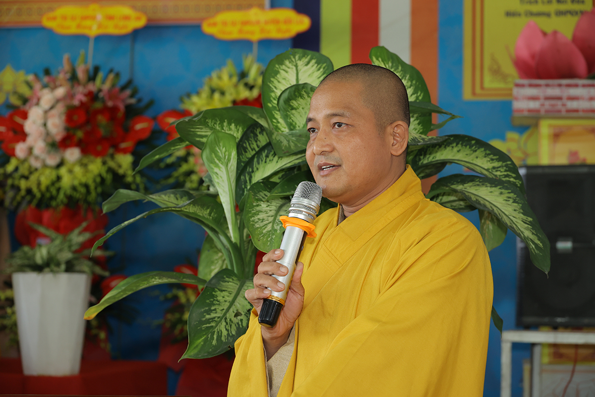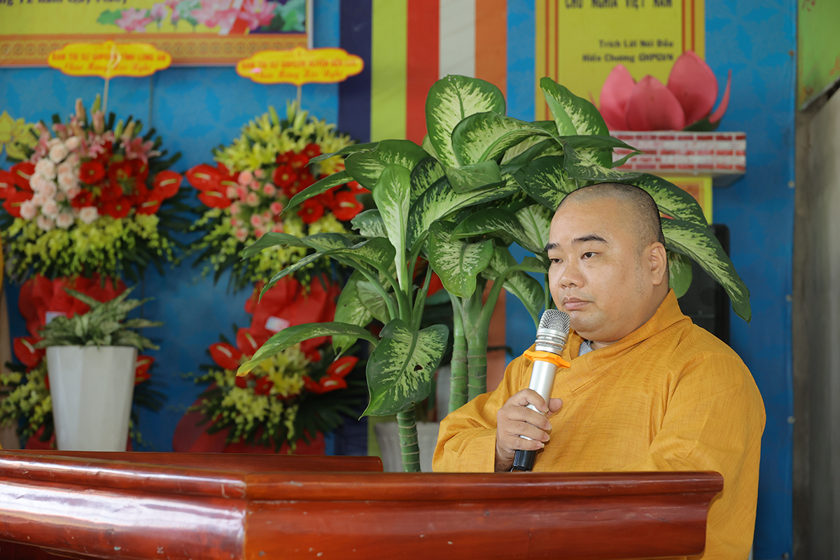 Thượng tọa Thích Lệ Tấn – Trưởng BTS Phật giáo huyện, Trưởng Ban tổ chức hội nghị có lời cảm tạ đến chư Tôn đức, lãnh đạo chính quyền các cấp, quý Phật tử cùng toàn thể hội chúng lời tri ân sâu sắc. Đại đức kính gửi những lời chúc tốt đẹp nhất nhân dịp Xuân Giáp Thìn 2024 đến toàn thể hội chúng.