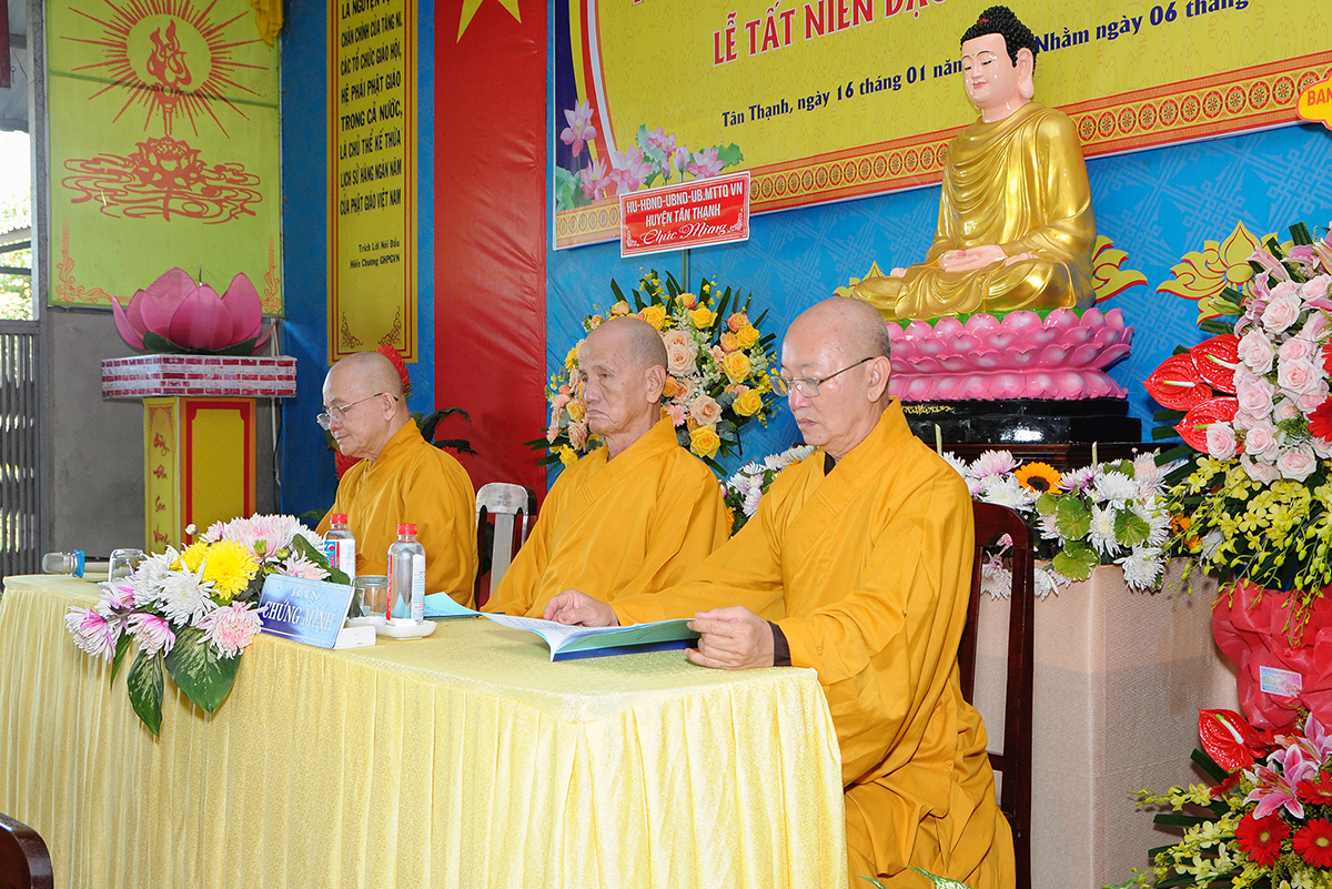 Quang lâm chứng minh tham dự buổi lễ có: HT Thích Quảng Ý – Chứng minh BTS GHPGVN tỉnh; HT. Thích Minh Thiện – UV HĐTS, Phó Ban Hoằng pháp TƯ, Trưởng BTS GHPGVN tỉnh Long An; Thượng tọa Thích Quảng Tâm – Ủy viên HĐTS, Phó Trưởng Ban Thường trực BTS GHPGVN tỉnh Long An, Đại đức Thích Lệ Duyên – Phó Ban kiêm Chánh Thư ký BTS GHPGVN tỉnh Long An; Thượng tọa Thích Lệ Tấn – Ủy viên Thường trực BTS, Phó Ban Từ thiện Xã hội Phật giáo tỉnh, Trưởng BTS GHPGVN huyện Tân Thạnh; cùng chư Tôn đức Ban Thường trực BTS Phật giáo huyện và Phật tử đồng tham dự.