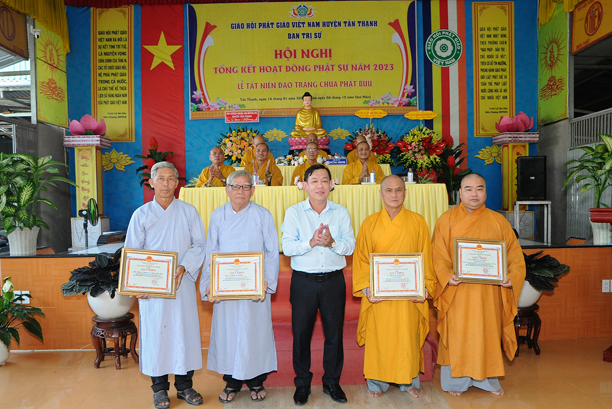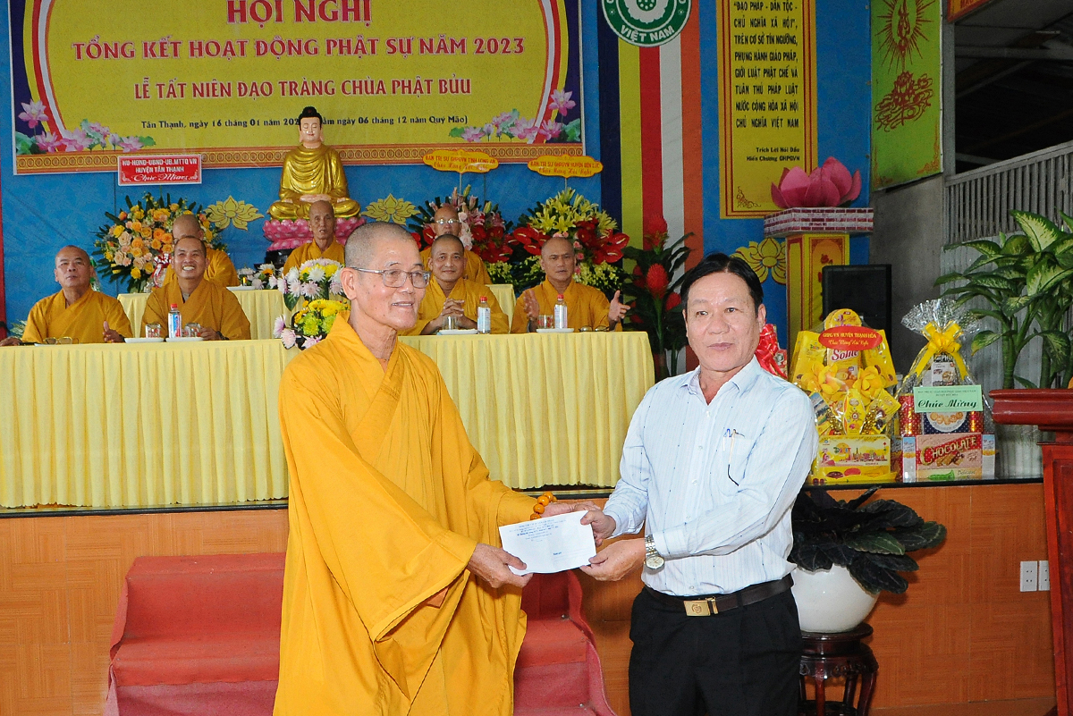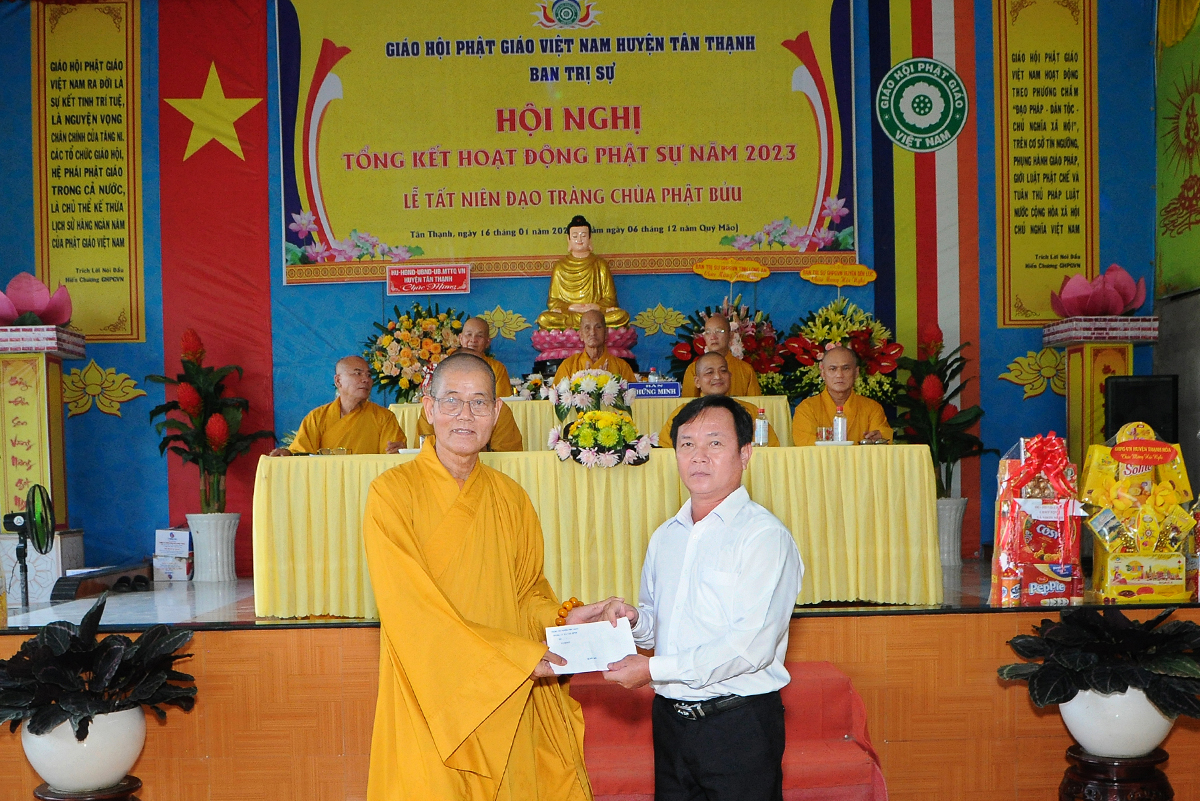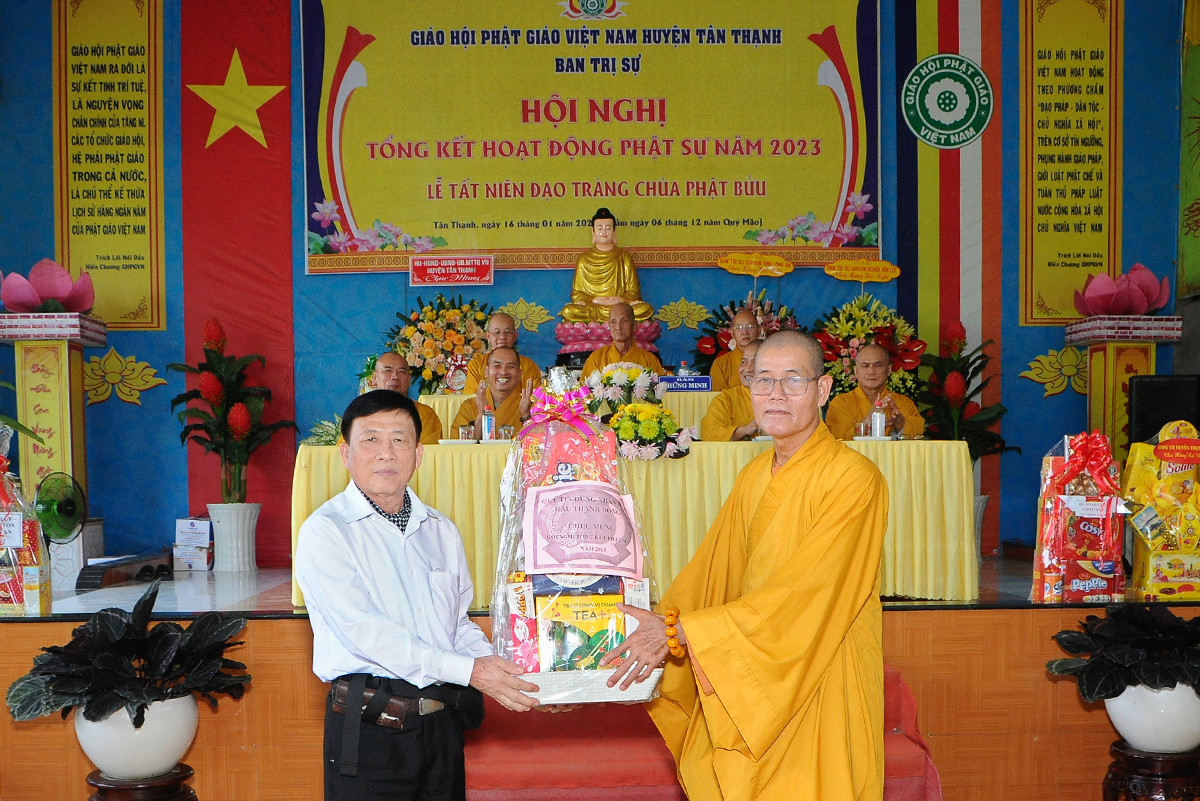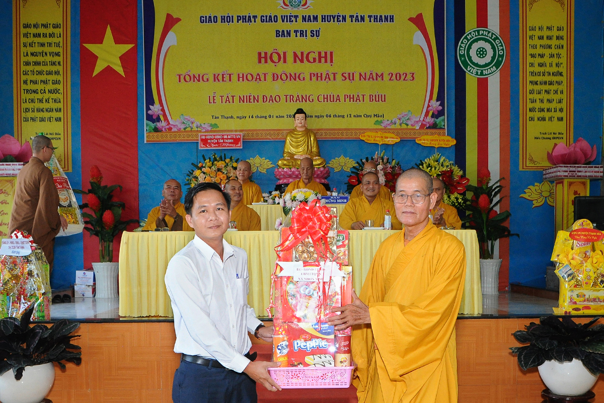 Phát biểu tại hội nghị, ông Võ Minh Dương – Phó Chủ tịch UBMTTQVN huyện Tân Thạnh đánh giá cao về tổ chức sinh hoạt Giáo hội Phật giáo huyện trong năm 2023 và chúc mừng các thành tựu tiêu biểu mà Phật giáo đạt được, đặc biệt là về công tác từ thiện, an sinh xã hội.