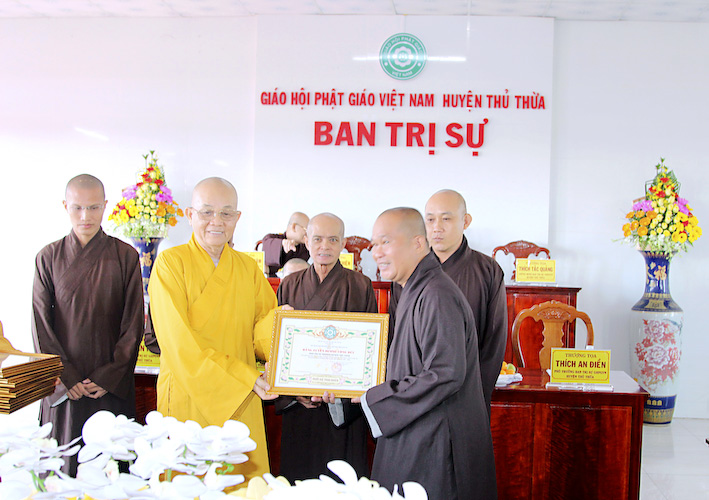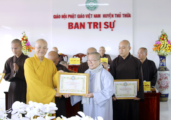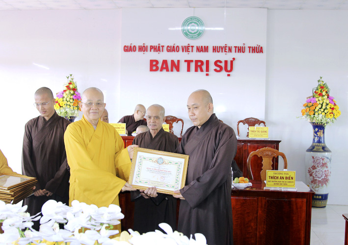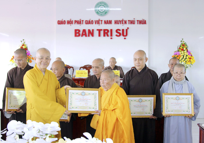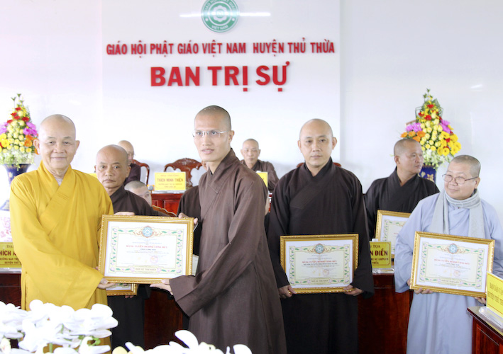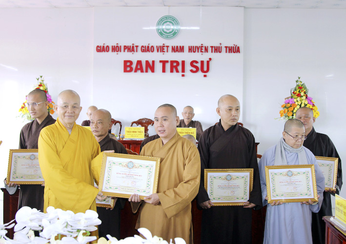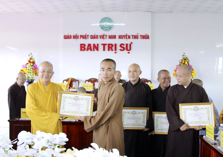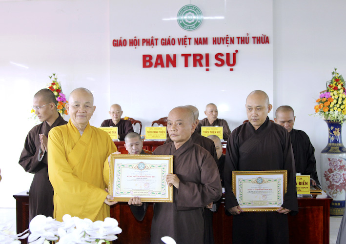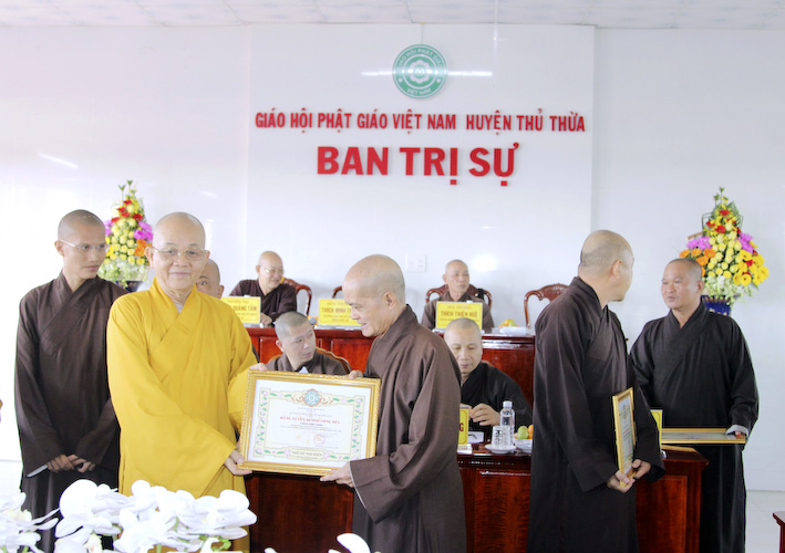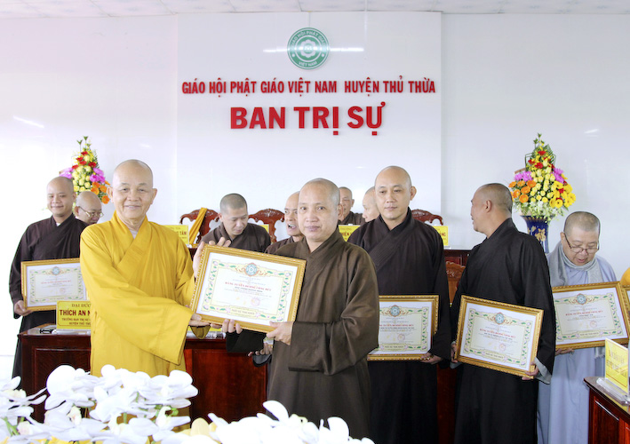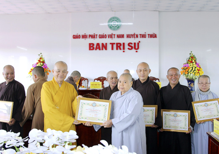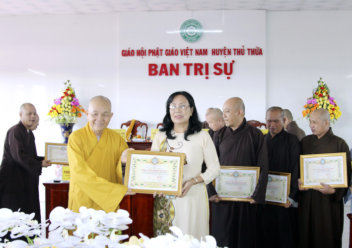 Tại hội nghị lần này, Ban Trị sự GHPGVN tỉnh Long An đã trao tặng 15 bằng tuyên dương công đức đến 15 tập thể gồm Ban Trị sự GHPGVN huyện Thủ Thừa, Ban thông tin truyền thông huyện và một số chùa tiêu biểu trong huyện, đã hỗ trợ tích cực cho Ban trị sự GHPGVN huyện Thủ Thừa hoàn thành tốt công tác Phật sự năm 2022 nhiệm kỳ 2021 -2026.