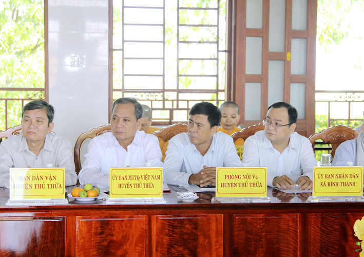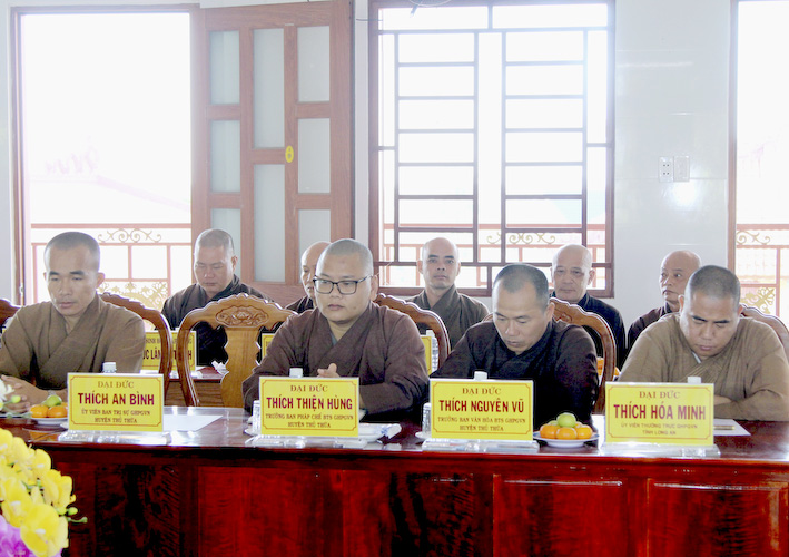 Quang lâm chứng minh và tham dự Hội nghị có sự hiện diện quý báo của Hoà thượng Thích Thiện Huệ – Thành viên Hội đồng Chứng minh Trung ương GHPGVN, Chứng minh Ban Trị sự GHPGVN tỉnh Long An; Hoà thượng Thích Minh Thiện – UV. HĐTSTW GHPGVN, Phó ban Hoằng pháp Trung ương, Trưởng ban Trị sự GHPGVN tỉnh Long An; Thượng toạ Thích Quảng Tâm – Phó ban Thường trực BTS.GHPGVN tỉnh Long An, Chứng minh BTS.GHPGVN huyện Thủ Thừa; Thượng toạ Thích Đức Hoàng – Phó Ban Trị sự GHPGVN tỉnh Long An; Đại đức Thích Thiện Danh – Phó thư ký kiêm Chánh văn phòng BTS.GHPGVN tỉnh Long An; Thượng toạ đạo hiệu Thích Tắc Quảng – Chứng minh Ban Trị sự GHPGVN huyện Thủ Thừa; Đại đức Thích An Nhựt – Trưởng Ban Hướng dẫn Phật tử BTS. GHPGVN tỉnh Long An, Trưởng Ban Trị sự BTS.GHPGVN huyện Thủ Thừa; cùng sự hiện diện chư tôn đức Tăng Ni trong ban Thường trực BTS.GHPGVN huyện Thủ Thừa, chư tôn đức Tăng Ni trụ trì các tự viện trong huyện đồng về tham dự.