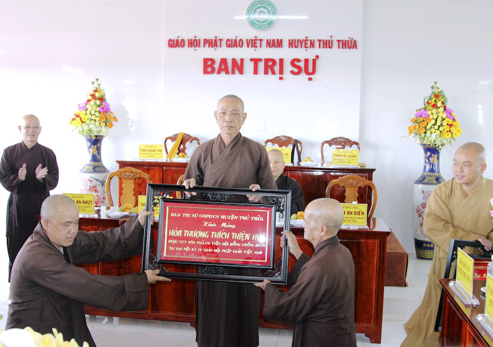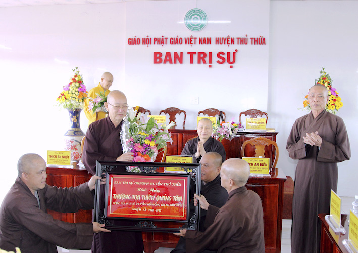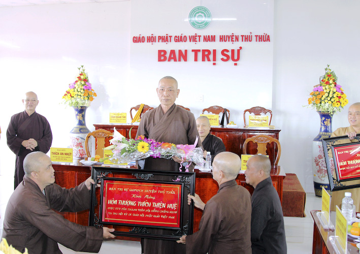 Nhân ngày hội nghị tổng kết Phật sự năm 2022, Đại đức Thích An Nhựt thay mặt chư tôn đức trong Ban Trị sự GHPGVN huyện Thủ Thừa dâng lời khánh chúc đến Hoà thượng Thích Thiện Huệ vừa được suy cử vào Thành viên Hội đồng chứng minh Trung ương GHPGVN và Hoà thượng Thích Minh Thiện, Thượng toạ Thích Quảng Tâm, Thượng toạ Thích Minh Thọ, Thượng toạ Thích Lệ Trí được tái suy cử vào Uỷ viên Hội đồng Trị sự Trung ương GHPGVN.