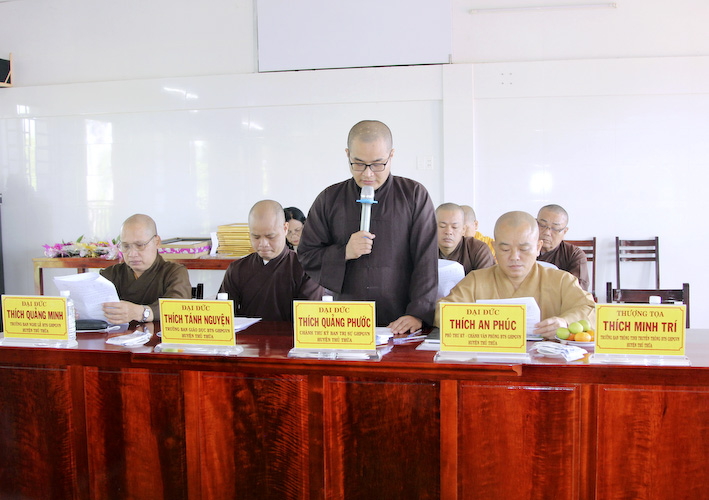 Tại hội nghị, Đại đức Thích Quảng Phước- Chánh thư ký huyện đã thay mặt Chư tôn đức trong Ban thường trực BTS.GHPGVN huyện Thủ Thừa báo cáo Tổng Kết hoạt động phật sự năm 2022: