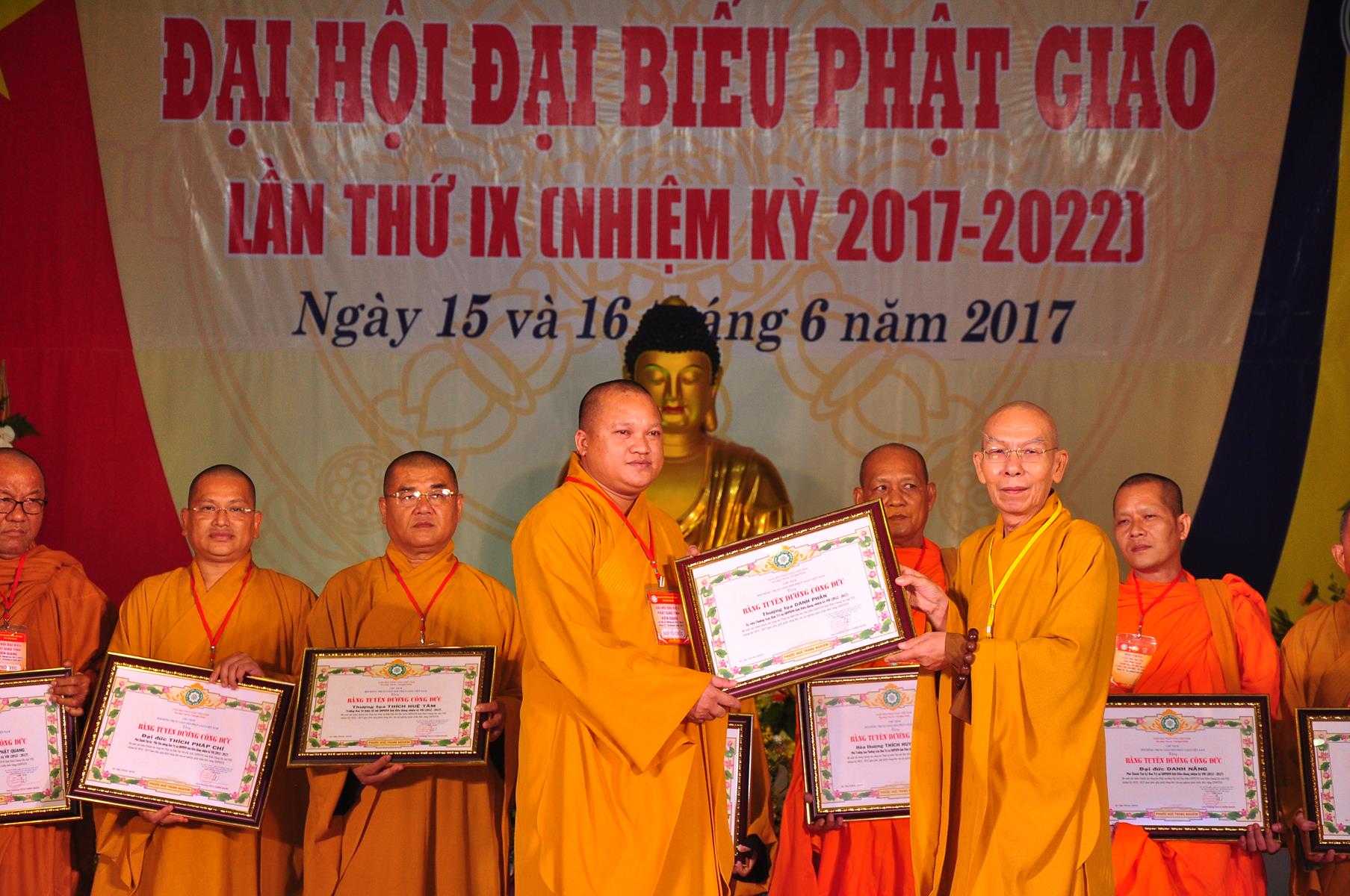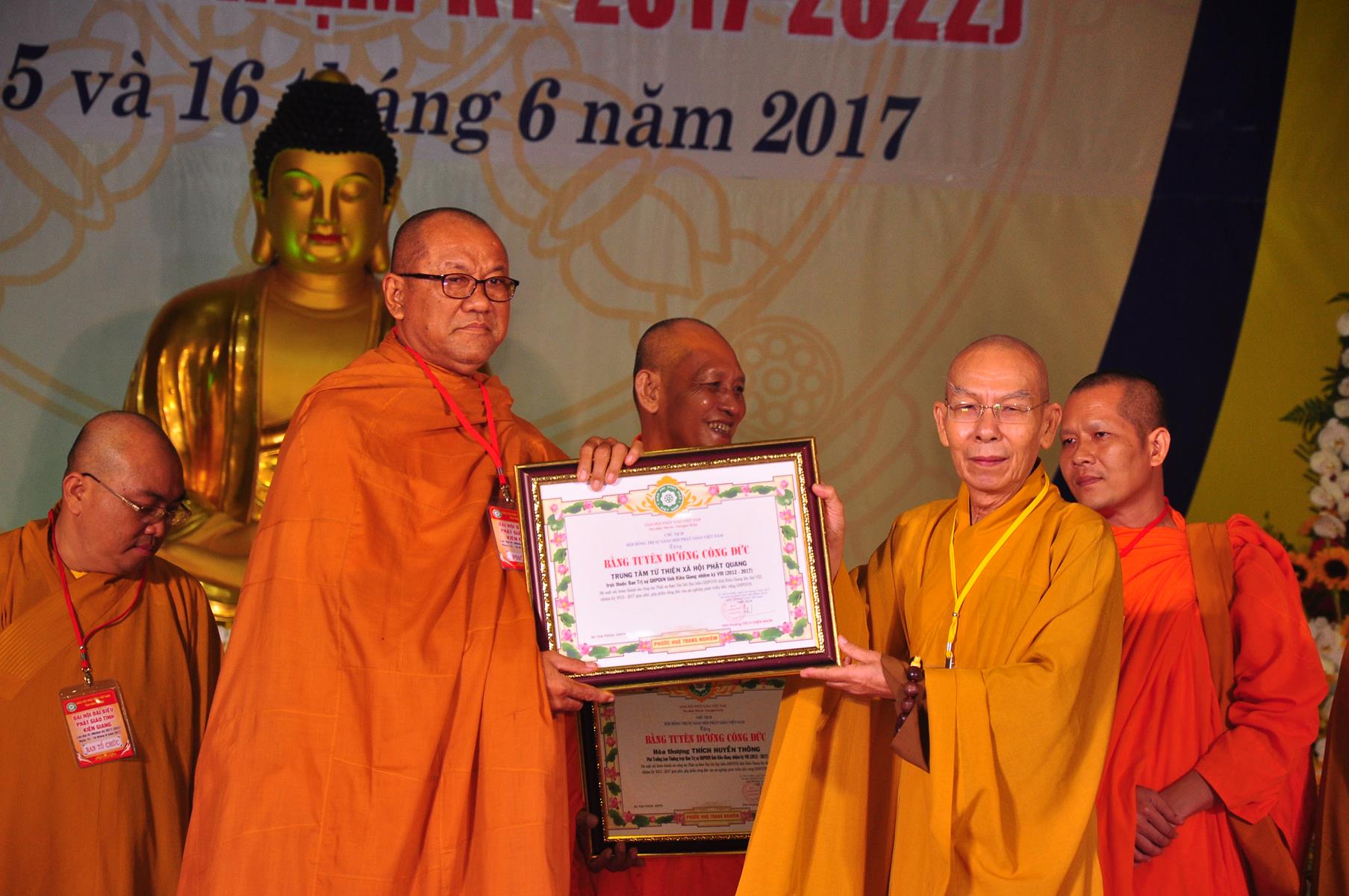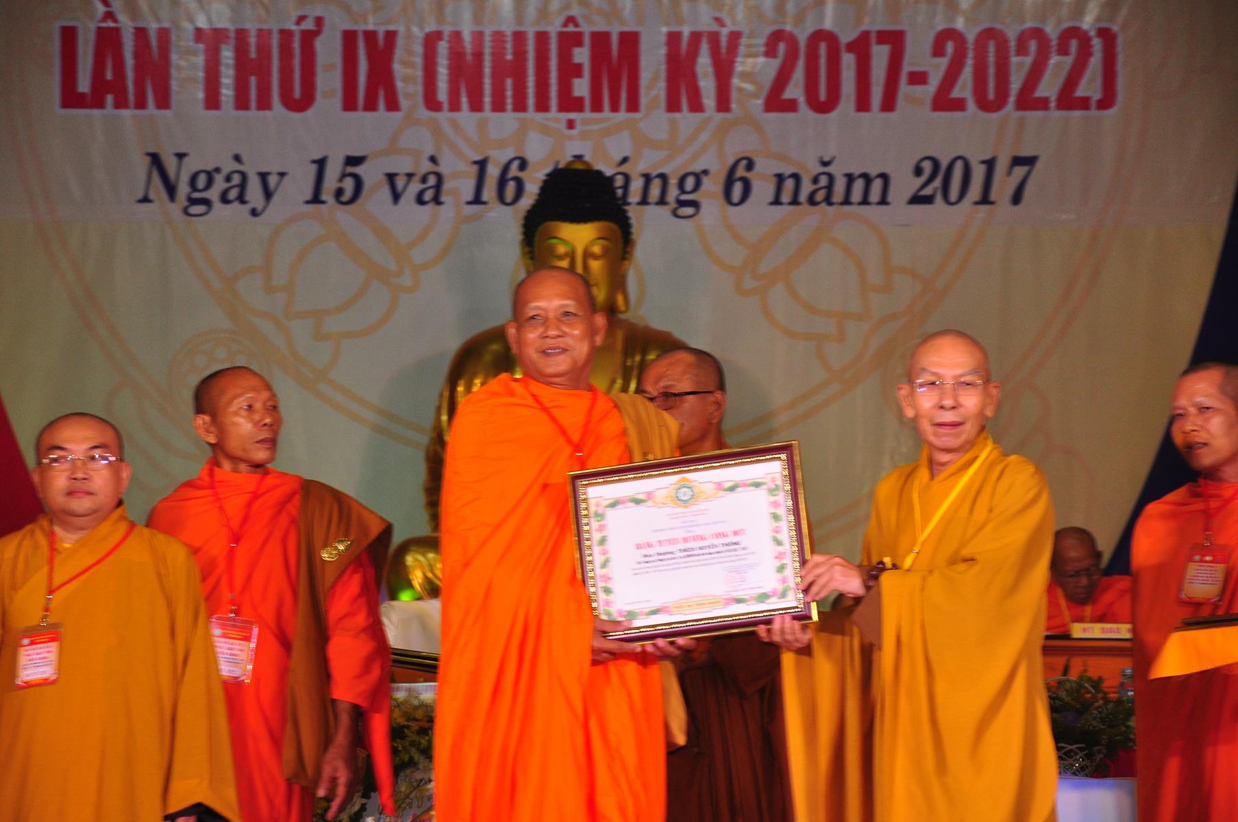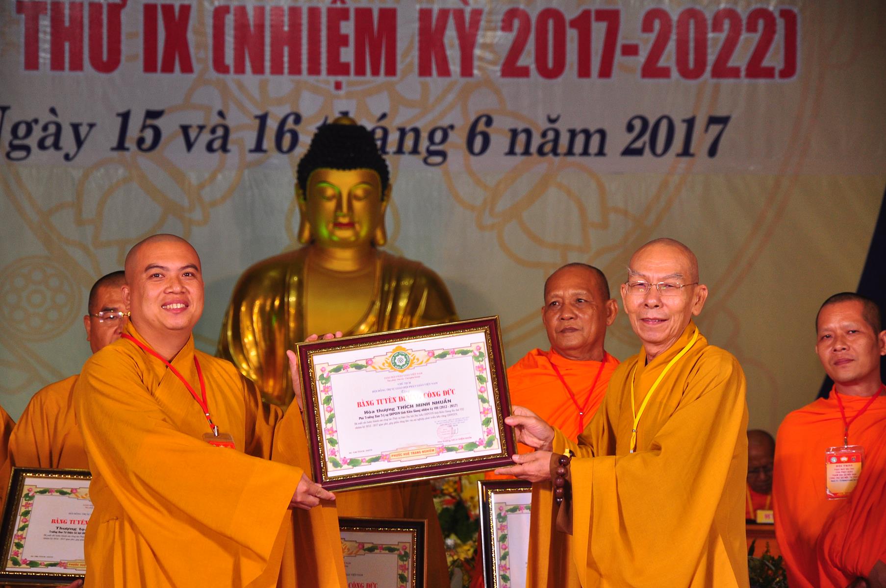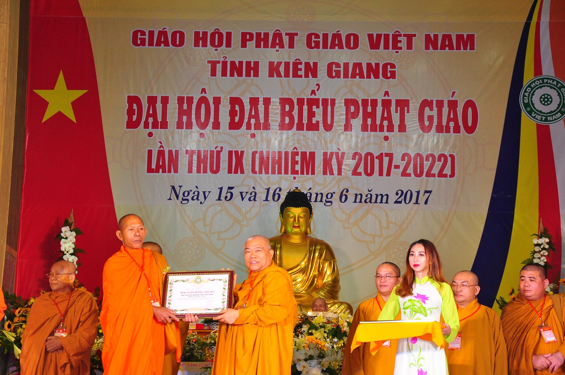 Tại Đại hội, Thường trực HĐTS quyết định tặng Bằng Tuyên Dương Công Đức cho 13 tập thể và 35 cá nhân xuất sắc trong hoạt động Phật sự nhiệm kỳ qua; Đồng thời, TT HĐTS tặng bằng Tuyên Dương Công Đức cho Ủy ban MTTQVN tỉnh Kiên Giang.
