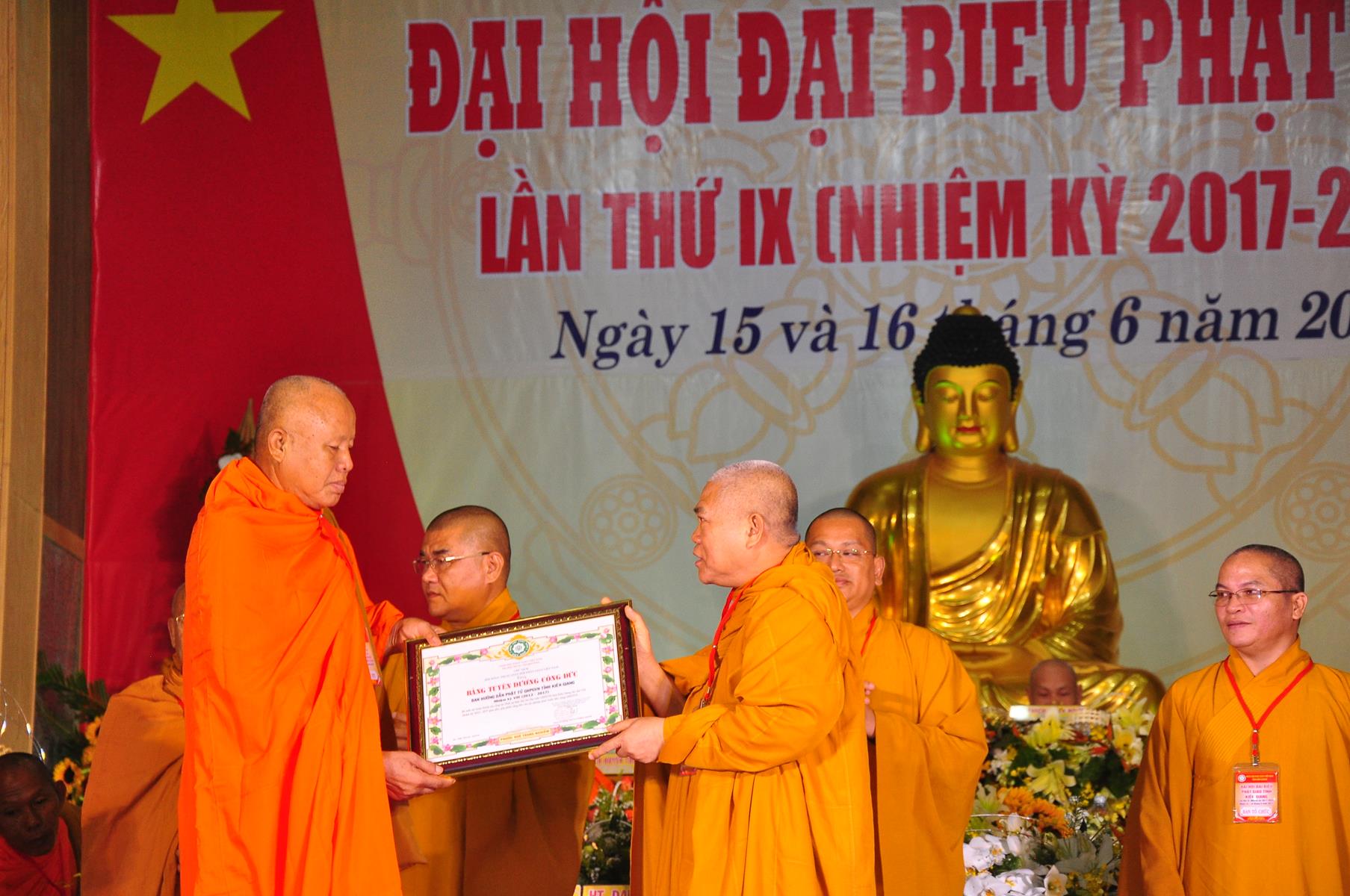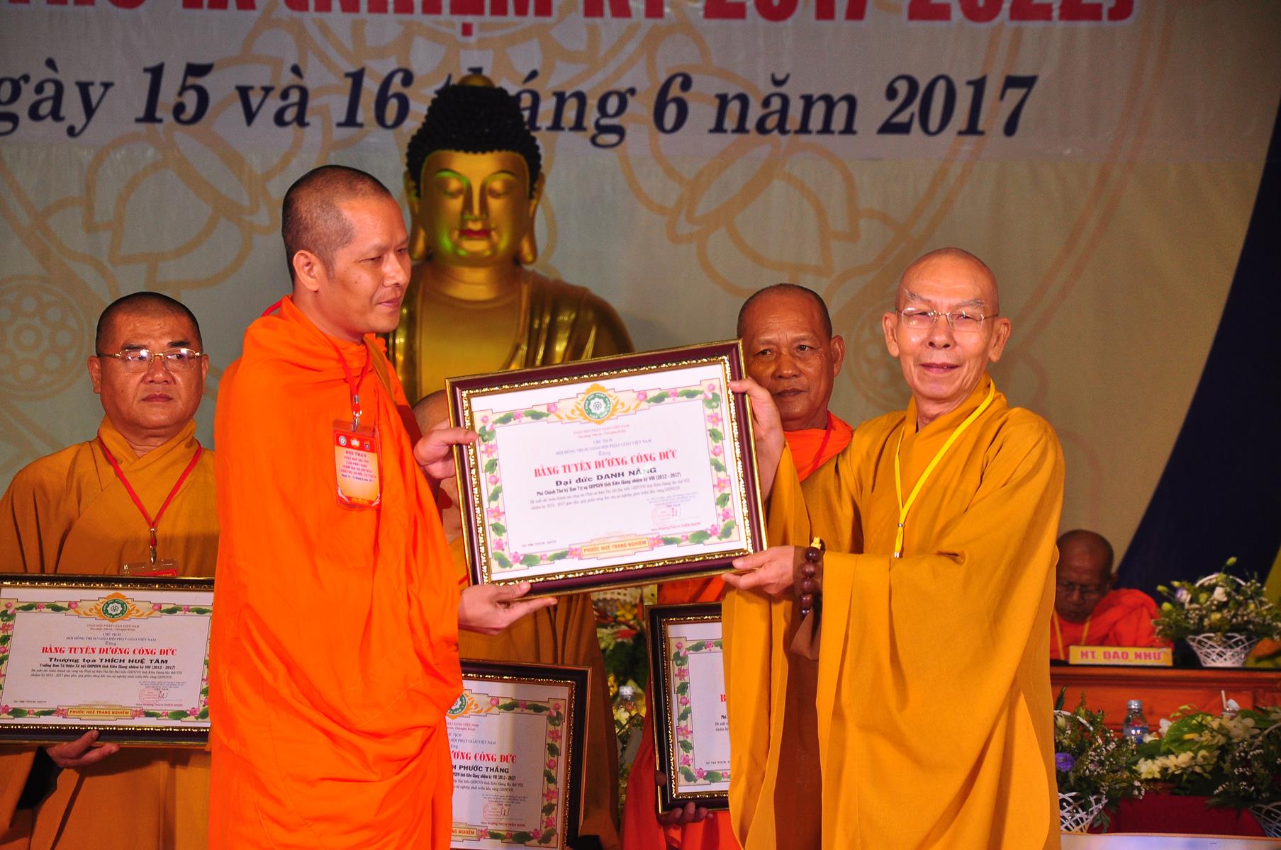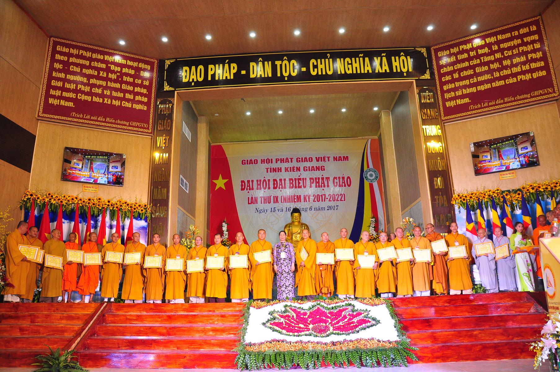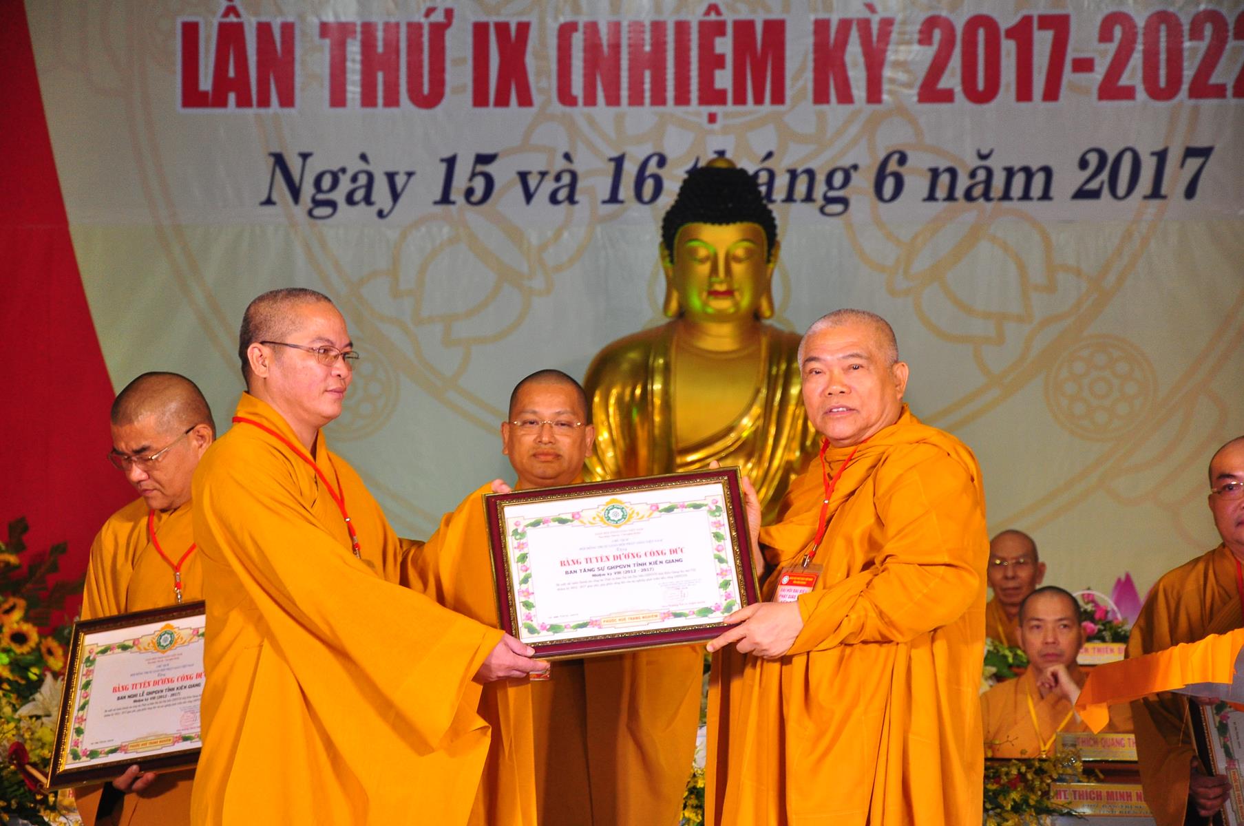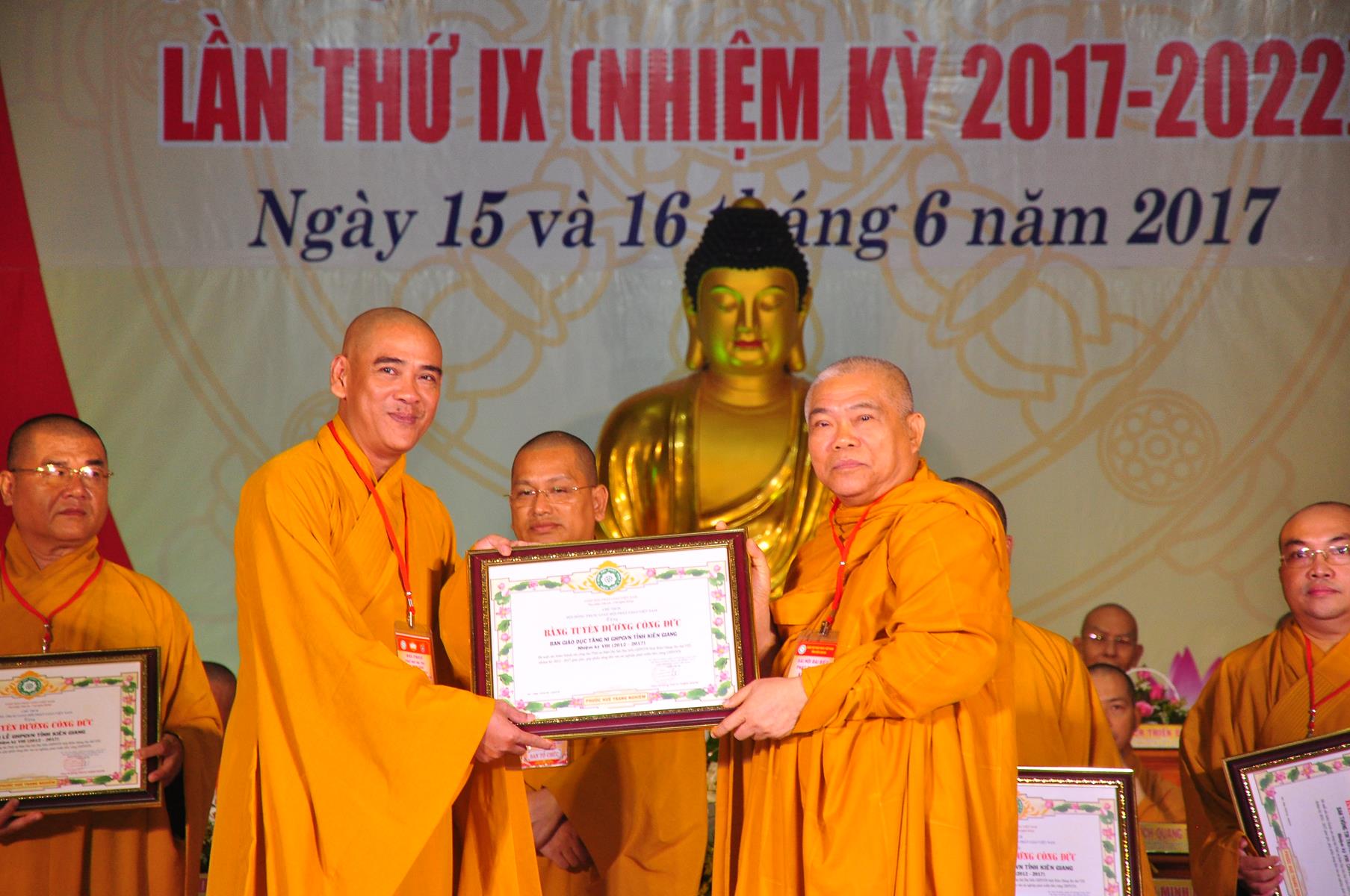 Tại Đại hội, Thường trực HĐTS quyết định tặng Bằng Tuyên Dương Công Đức cho 13 tập thể và 35 cá nhân xuất sắc trong hoạt động Phật sự nhiệm kỳ qua; Đồng thời, TT HĐTS tặng bằng Tuyên Dương Công Đức cho Ủy ban MTTQVN tỉnh Kiên Giang.