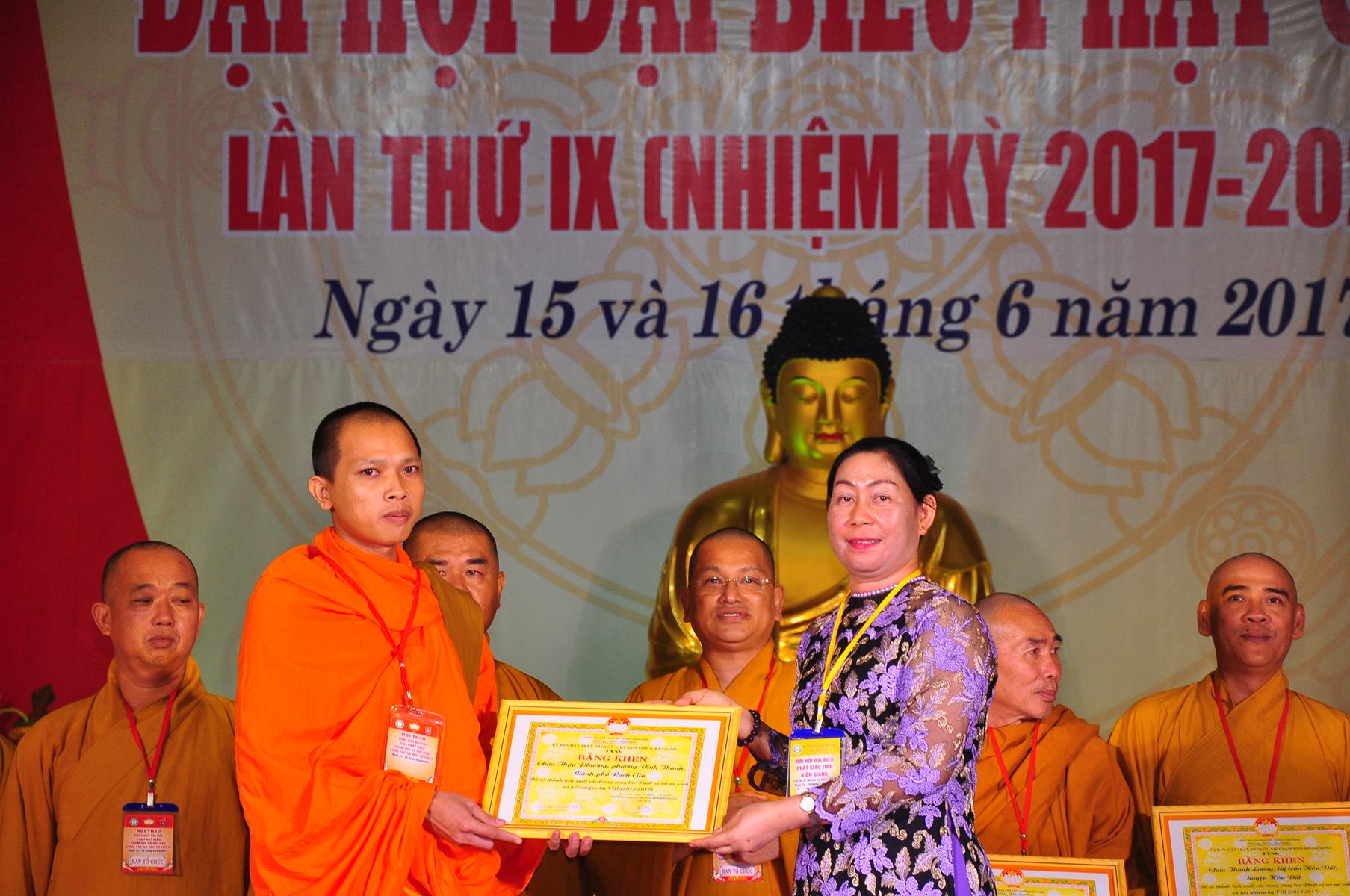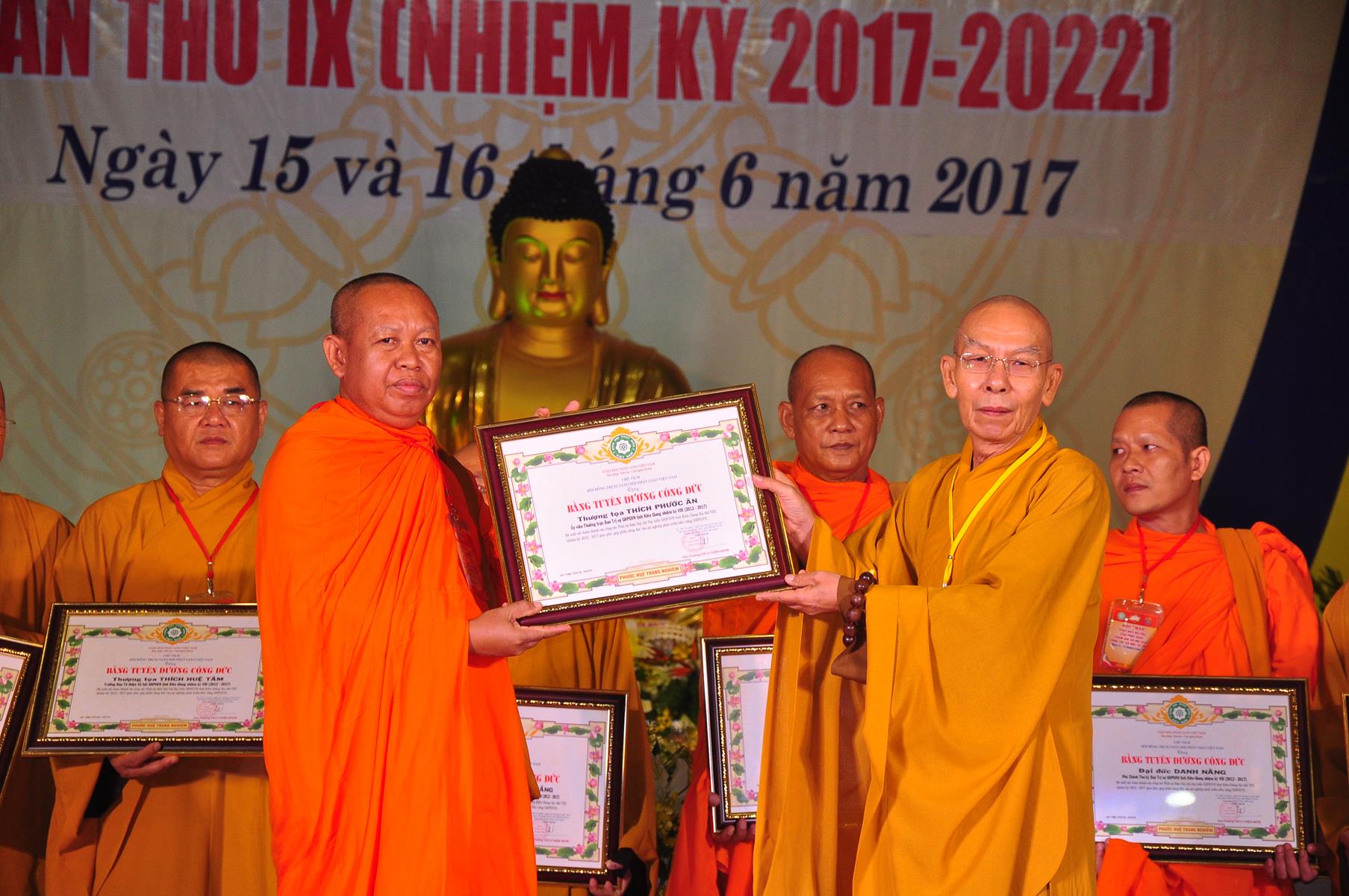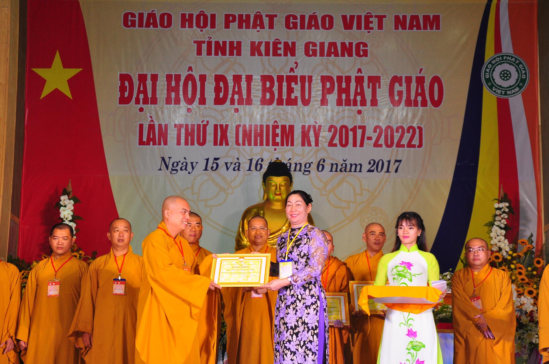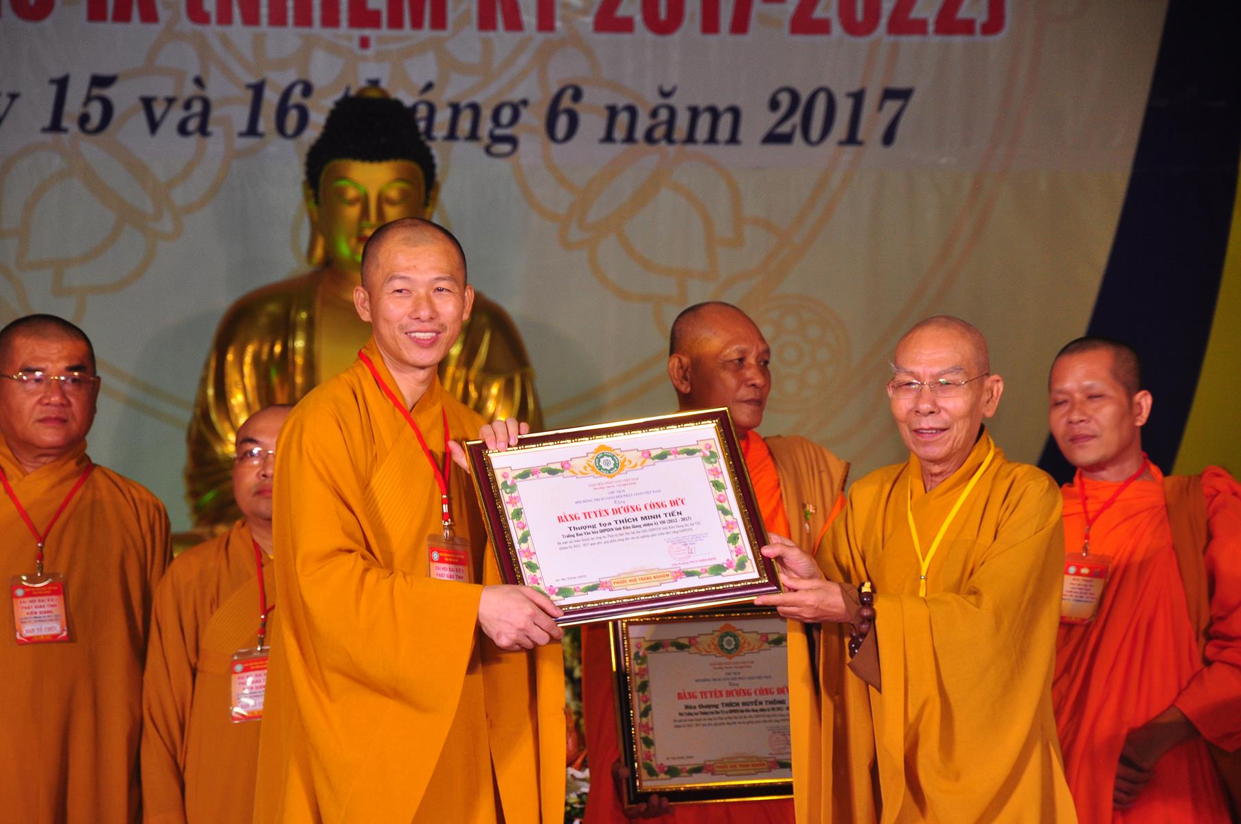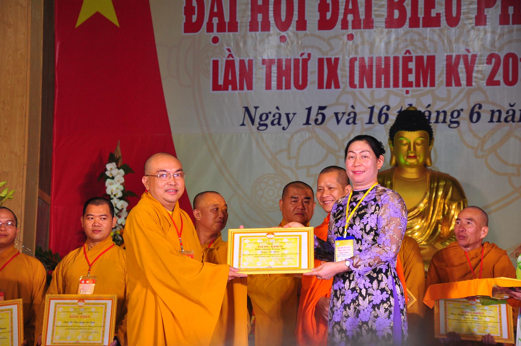 Tại Đại hội, Thường trực HĐTS quyết định tặng Bằng Tuyên Dương Công Đức cho 13 tập thể và 35 cá nhân xuất sắc trong hoạt động Phật sự nhiệm kỳ qua; Đồng thời, TT HĐTS tặng bằng Tuyên Dương Công Đức cho Ủy ban MTTQVN tỉnh Kiên Giang.
