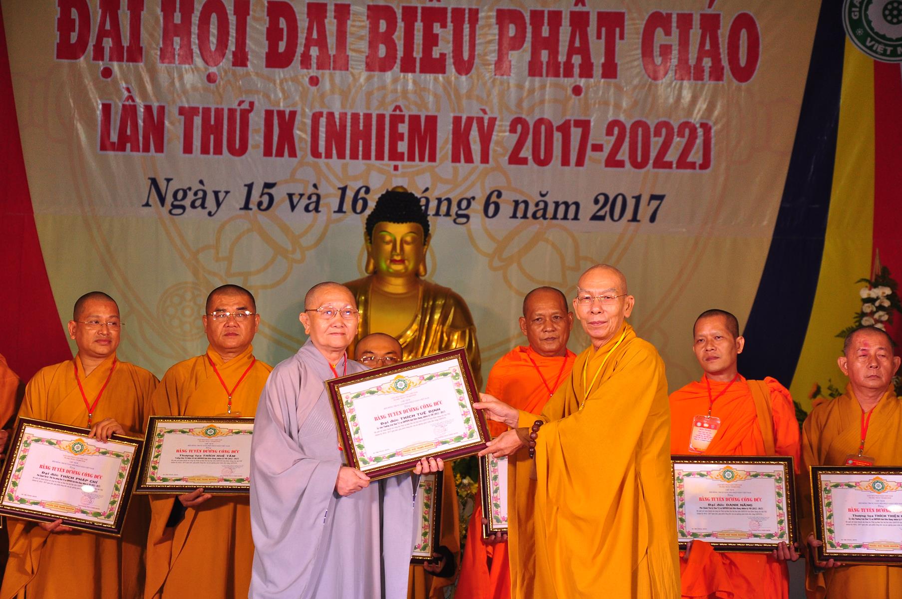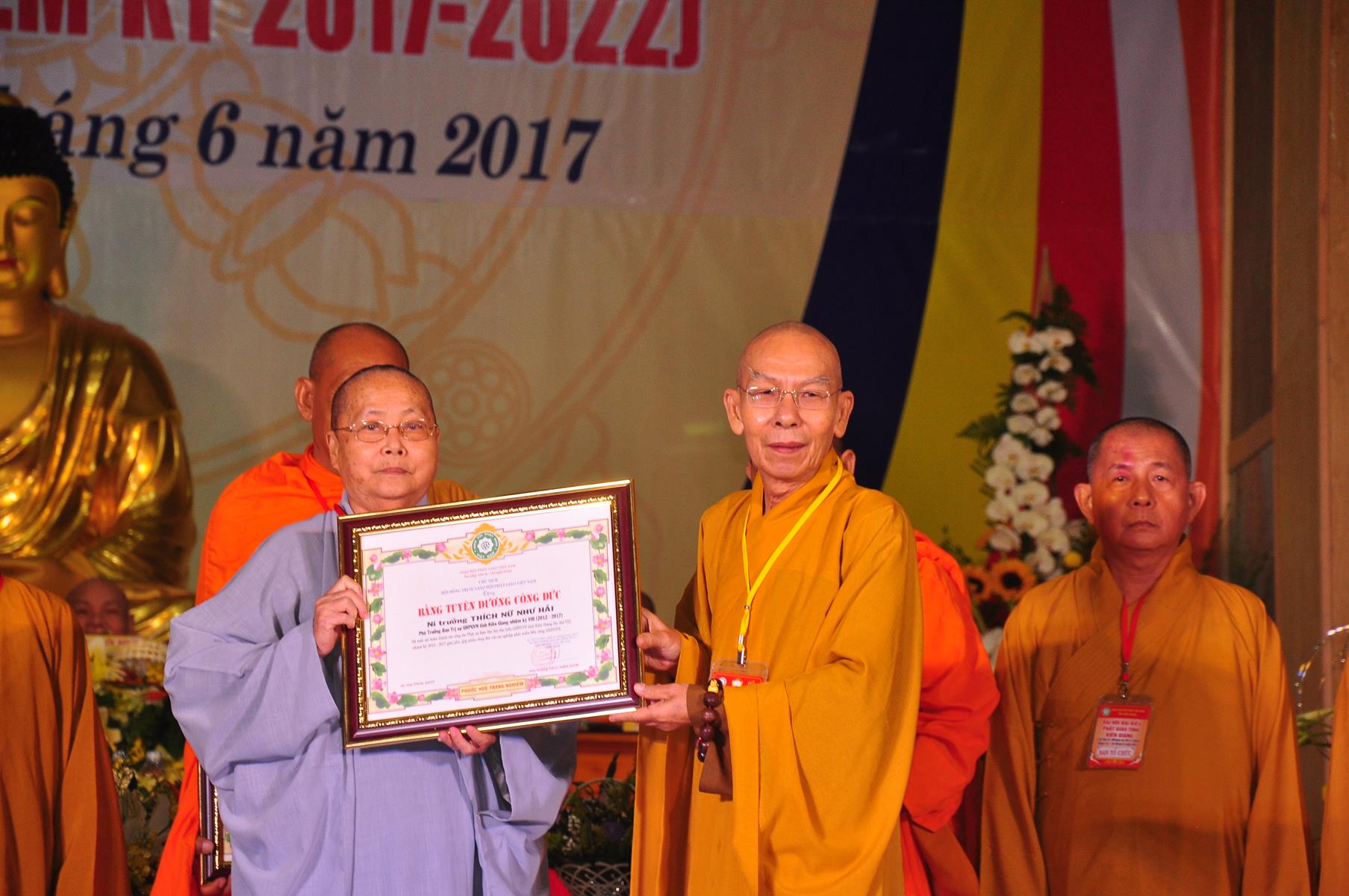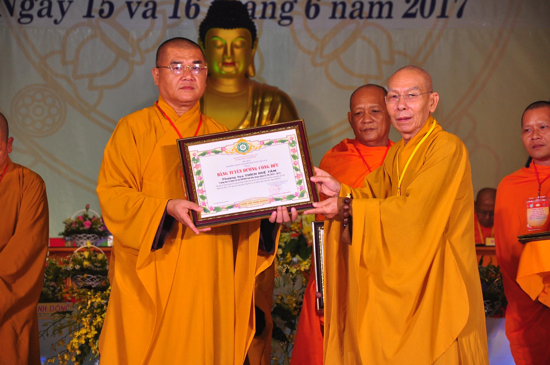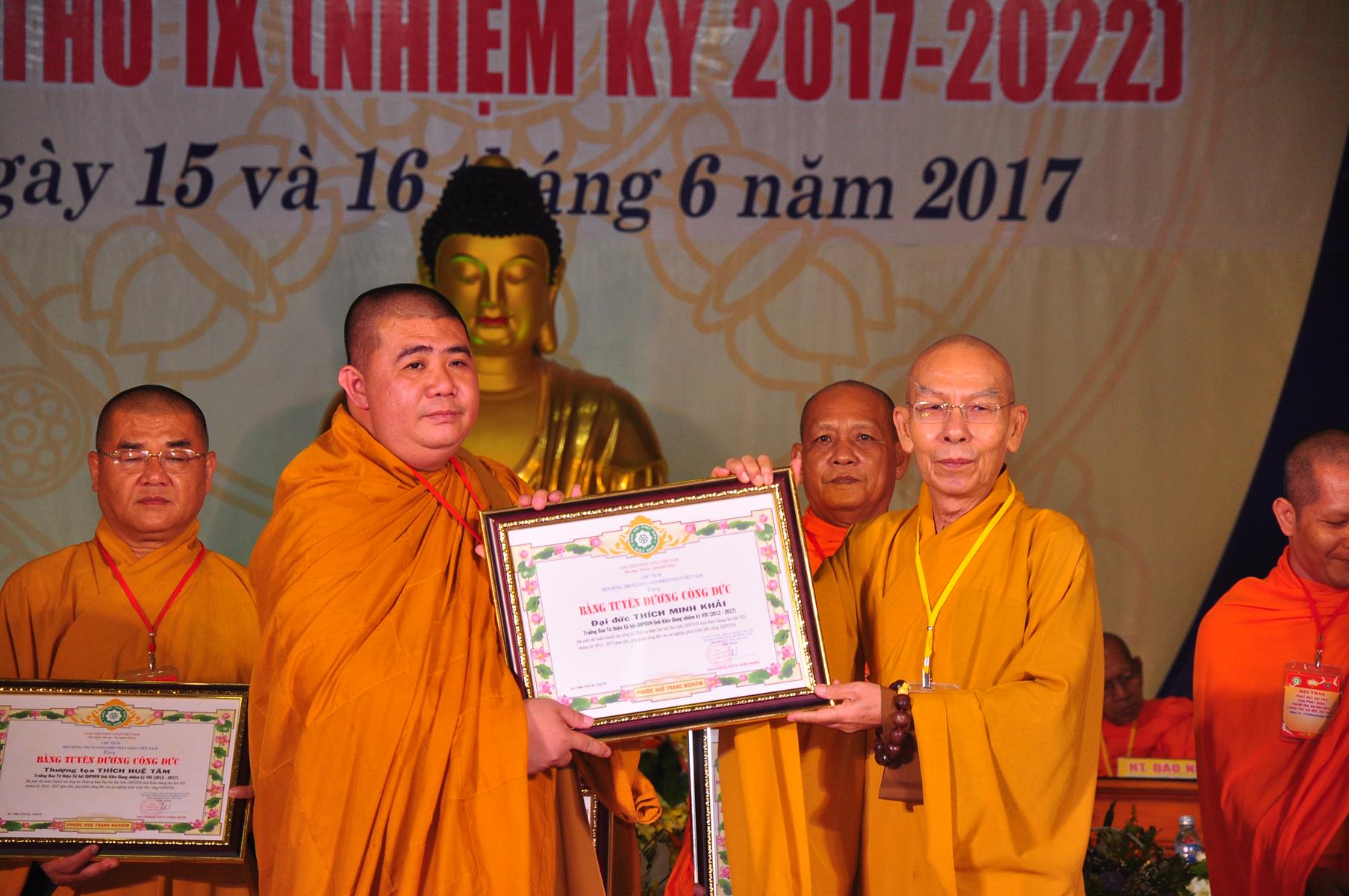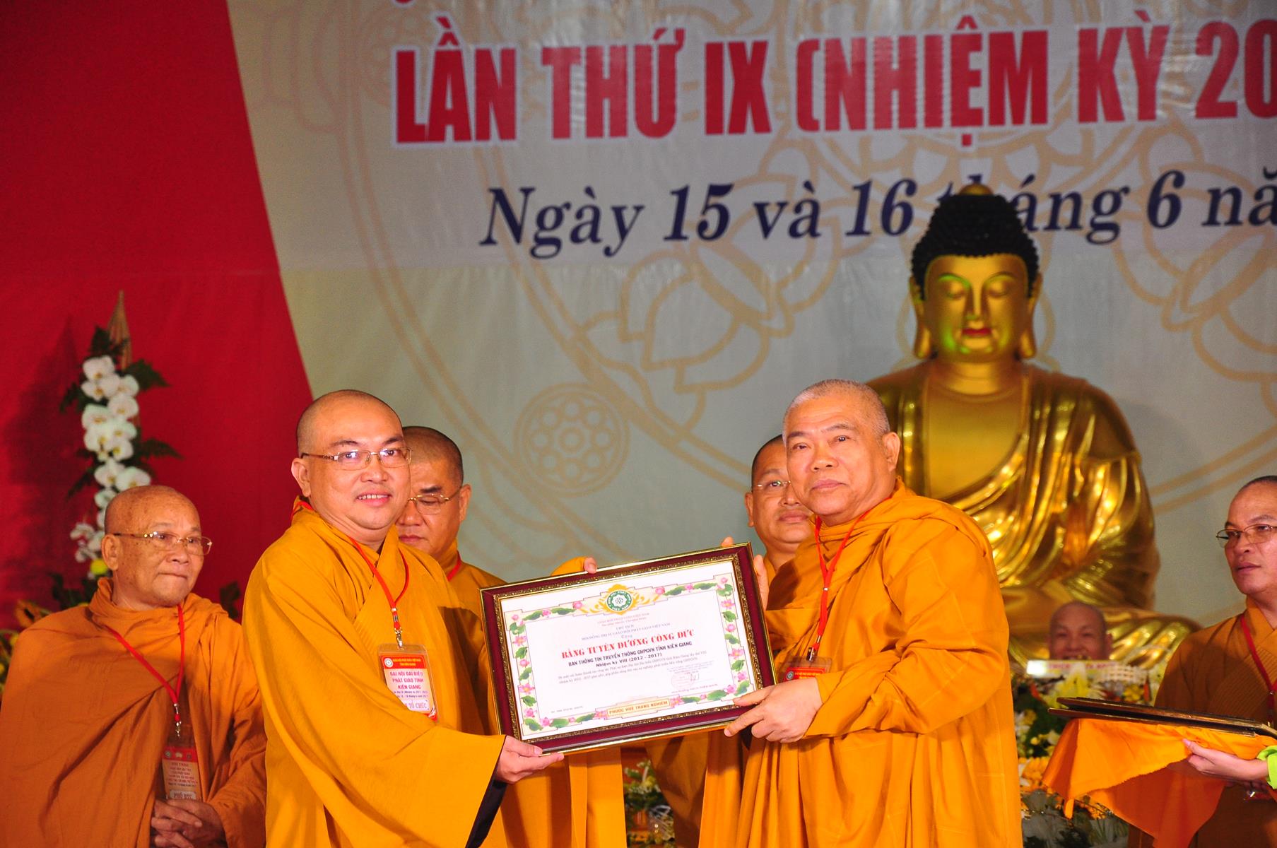 Tại Đại hội, Thường trực HĐTS quyết định tặng Bằng Tuyên Dương Công Đức cho 13 tập thể và 35 cá nhân xuất sắc trong hoạt động Phật sự nhiệm kỳ qua; Đồng thời, TT HĐTS tặng bằng Tuyên Dương Công Đức cho Ủy ban MTTQVN tỉnh Kiên Giang.