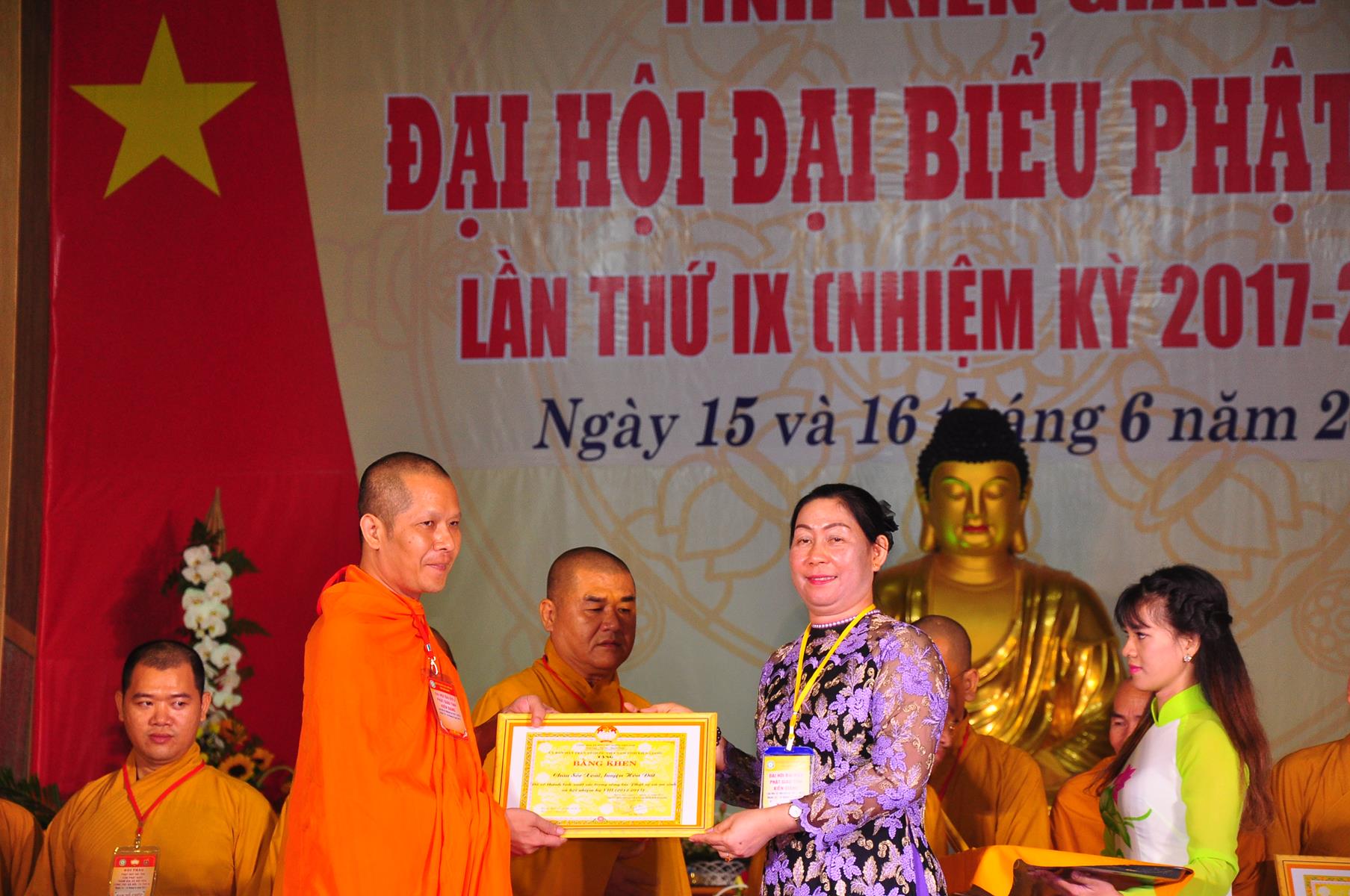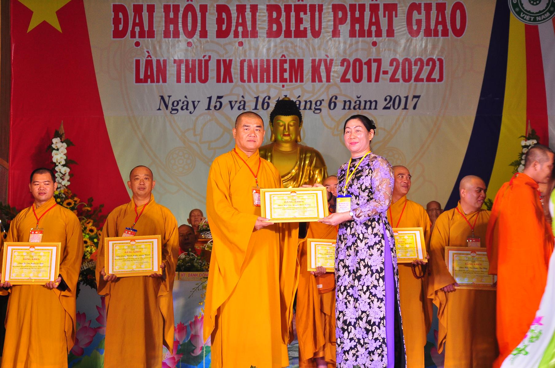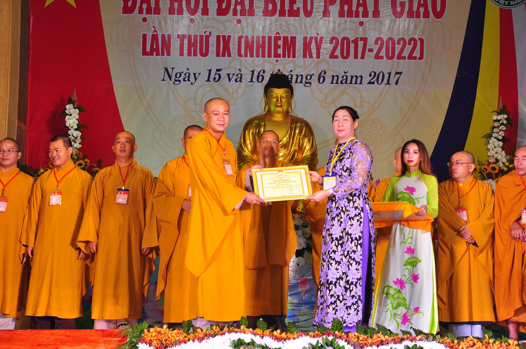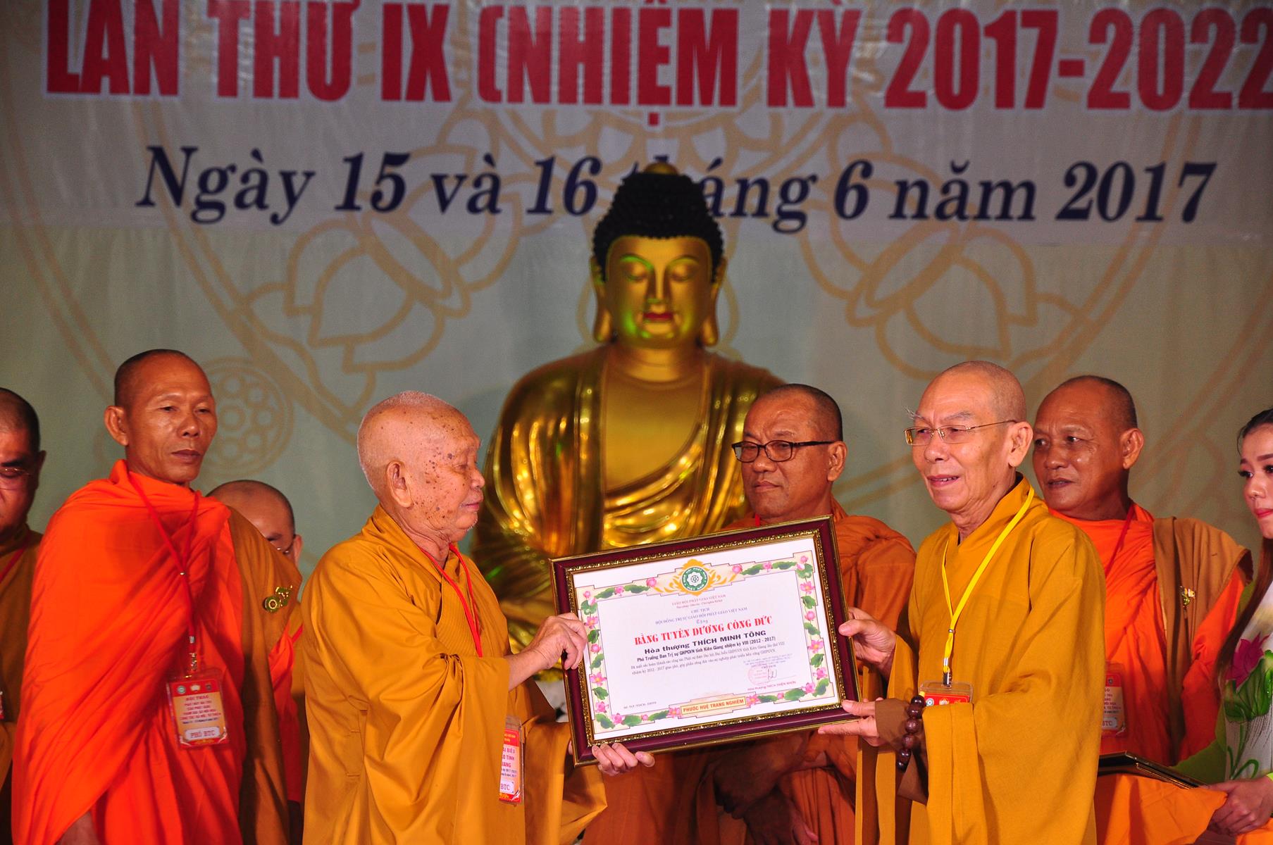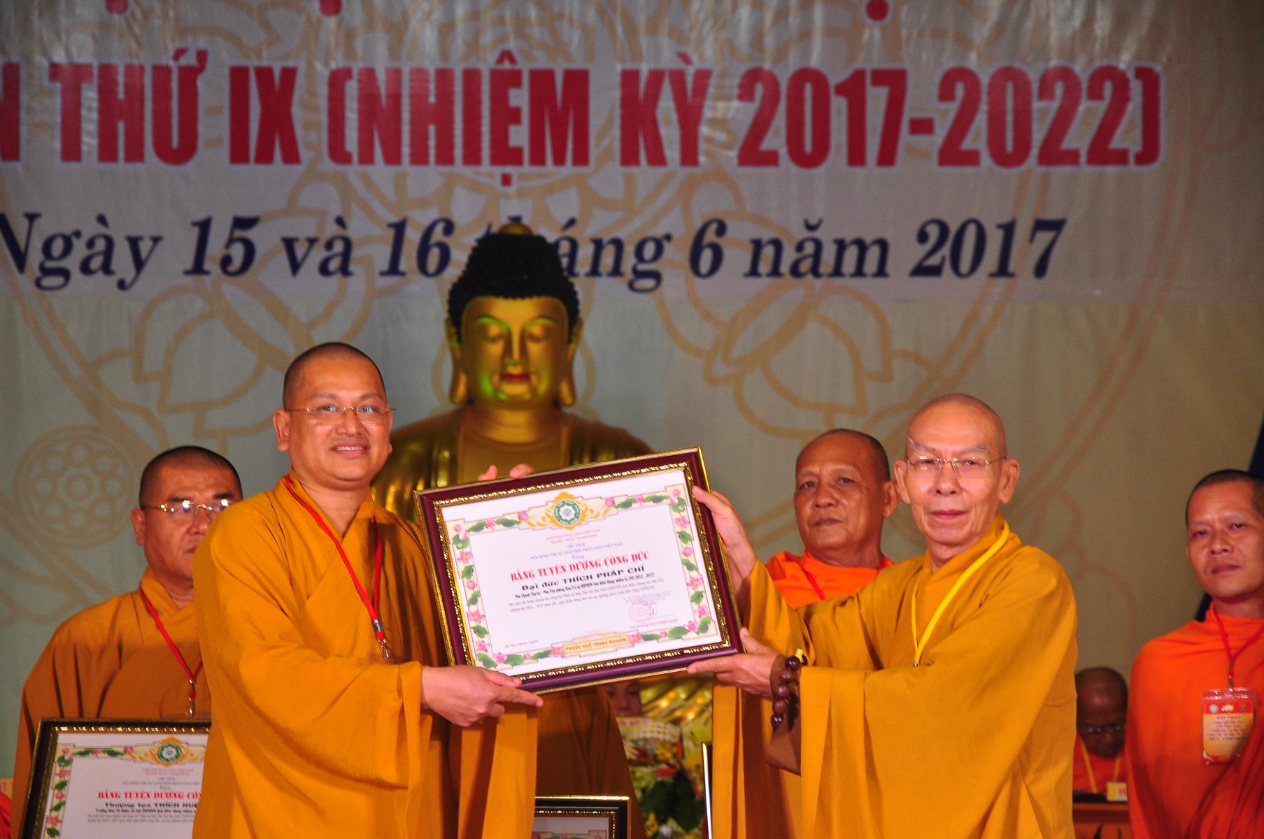 Tại Đại hội, Thường trực HĐTS quyết định tặng Bằng Tuyên Dương Công Đức cho 13 tập thể và 35 cá nhân xuất sắc trong hoạt động Phật sự nhiệm kỳ qua; Đồng thời, TT HĐTS tặng bằng Tuyên Dương Công Đức cho Ủy ban MTTQVN tỉnh Kiên Giang.