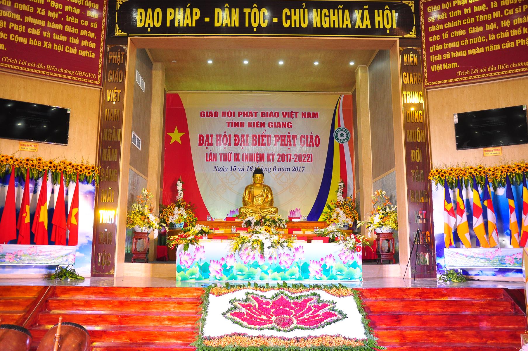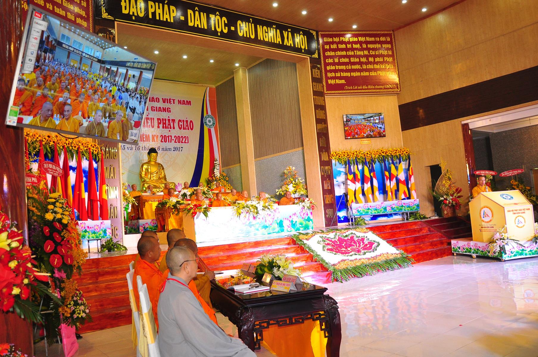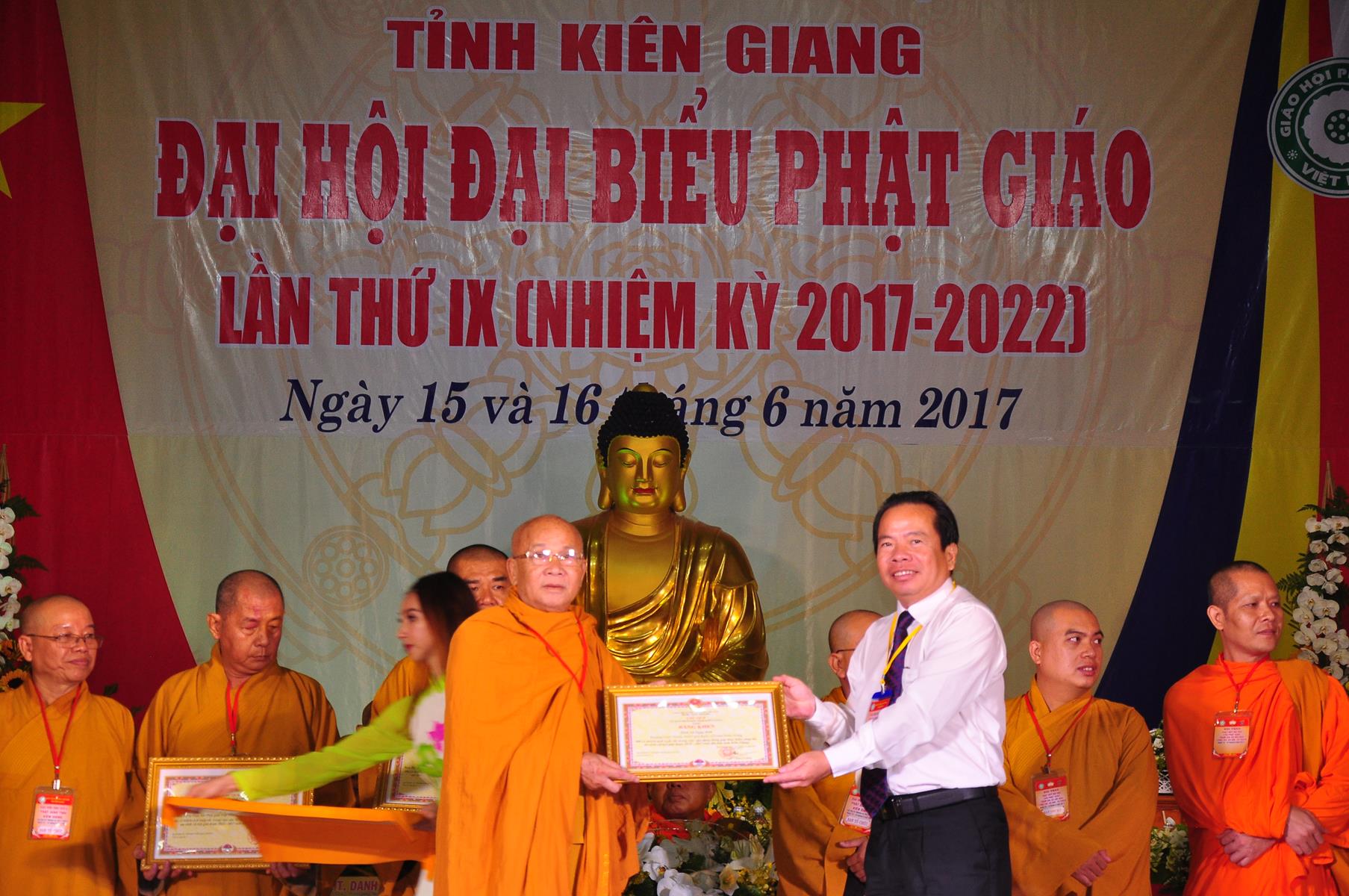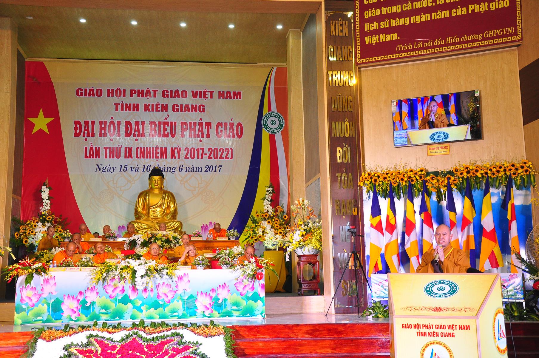 Sáng nay, vào lúc 7 giờ 30, ngày 16 tháng 6 năm 2017 (nhằm 22/5/Đinh Dậu), Ban Trị sự GHPGVN tỉnh Kiên Giang trọng thể cử hành Đại hội Đại biểu Phật giáo lần thứ IX nhiệm kỳ (2017-2022) tại hội trường Chùa Phật Quang, số 83 Quang Trung, P.Vĩnh Quang, TP. Rạch Giá, tỉnh Kiên Giang.
