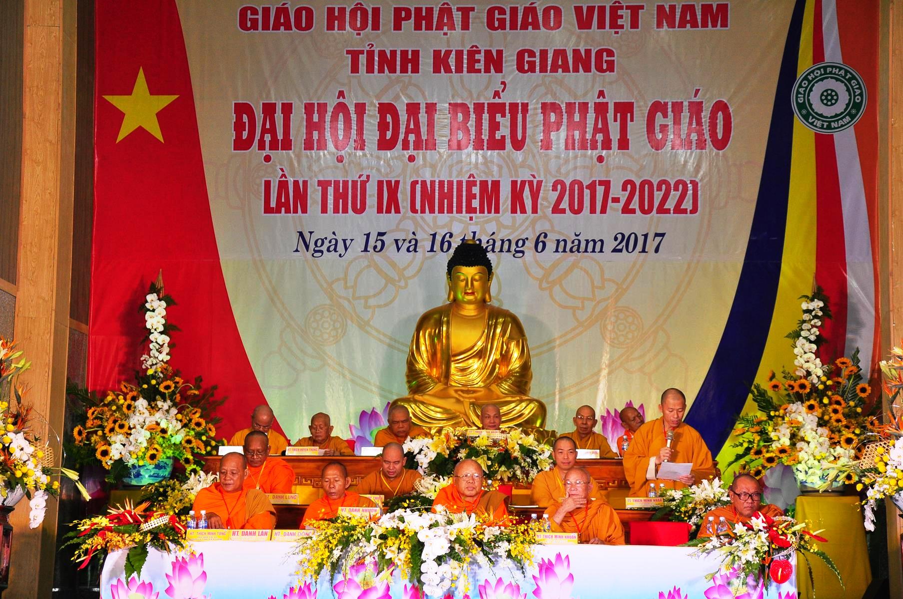 Thay mặt TƯGH, HT.Thích Thiện Nhơn lấy ý kiến biểu quyết của Đại hội về thành phần nhân sự Ban Trị sự GHPGVN tỉnh Kiên Giang lần thứ IX (nhiệm kỳ 2017-2022) gồm 5 vị Ban chứng minh; 57 vị ủy viên Ban Trị sự; 25 vị ủy viên Thường trực do HT Danh Đổng làm Trưởng ban; TT Thích Minh Nhẫn đảm trách Phó Trưởng ban Thường trực; ĐĐ Thích Pháp Trí làm Chánh Thư ký.