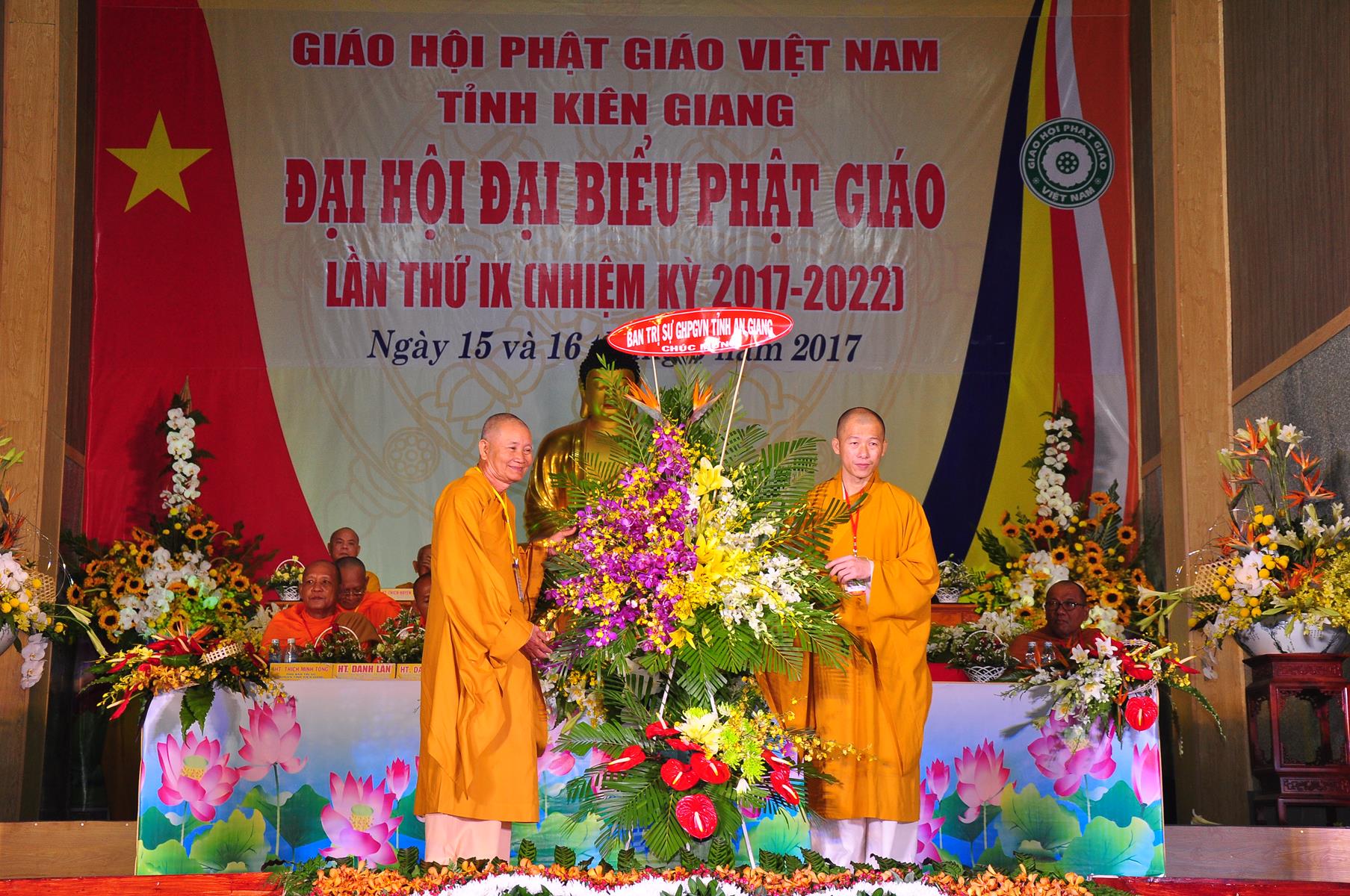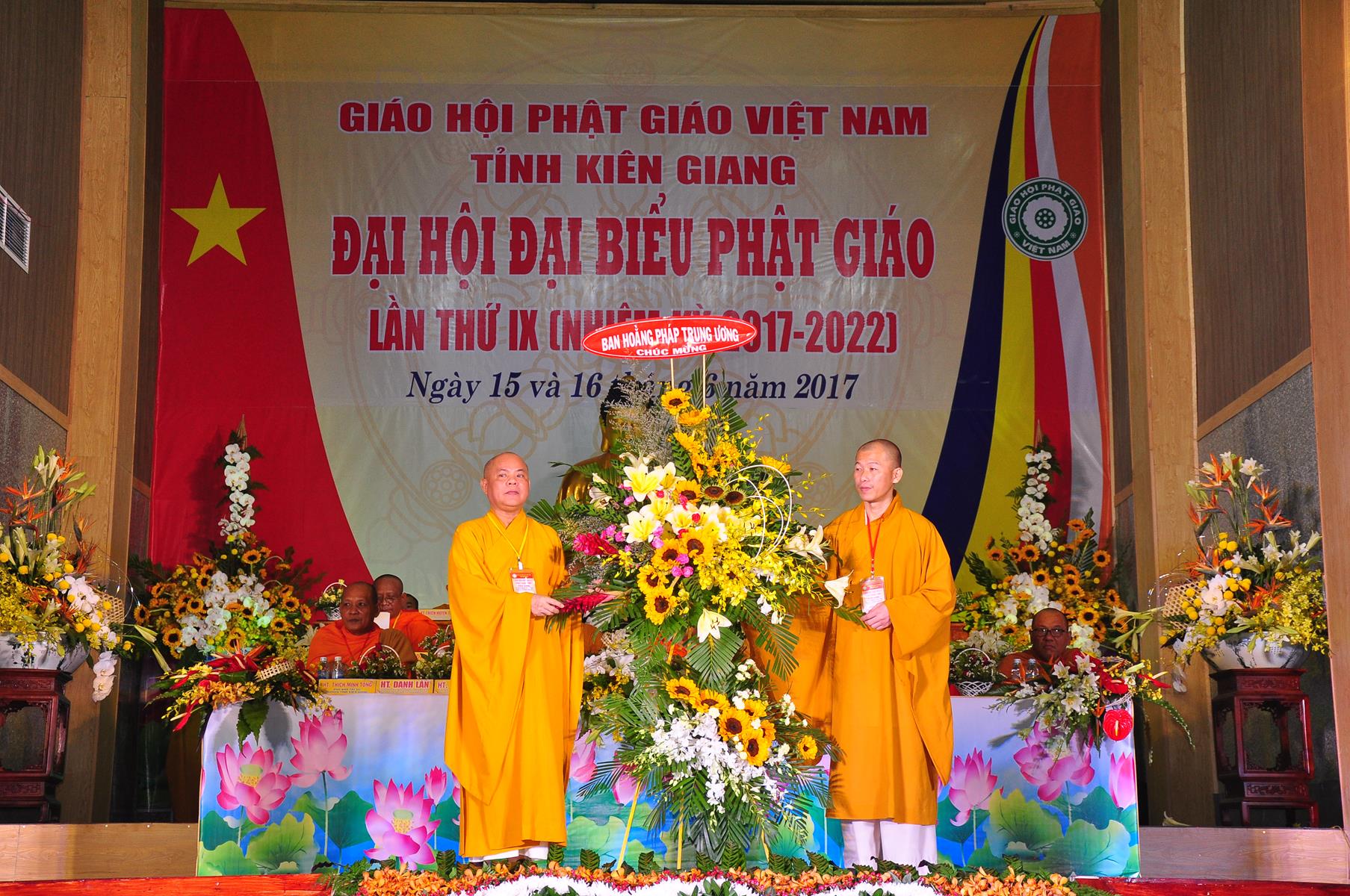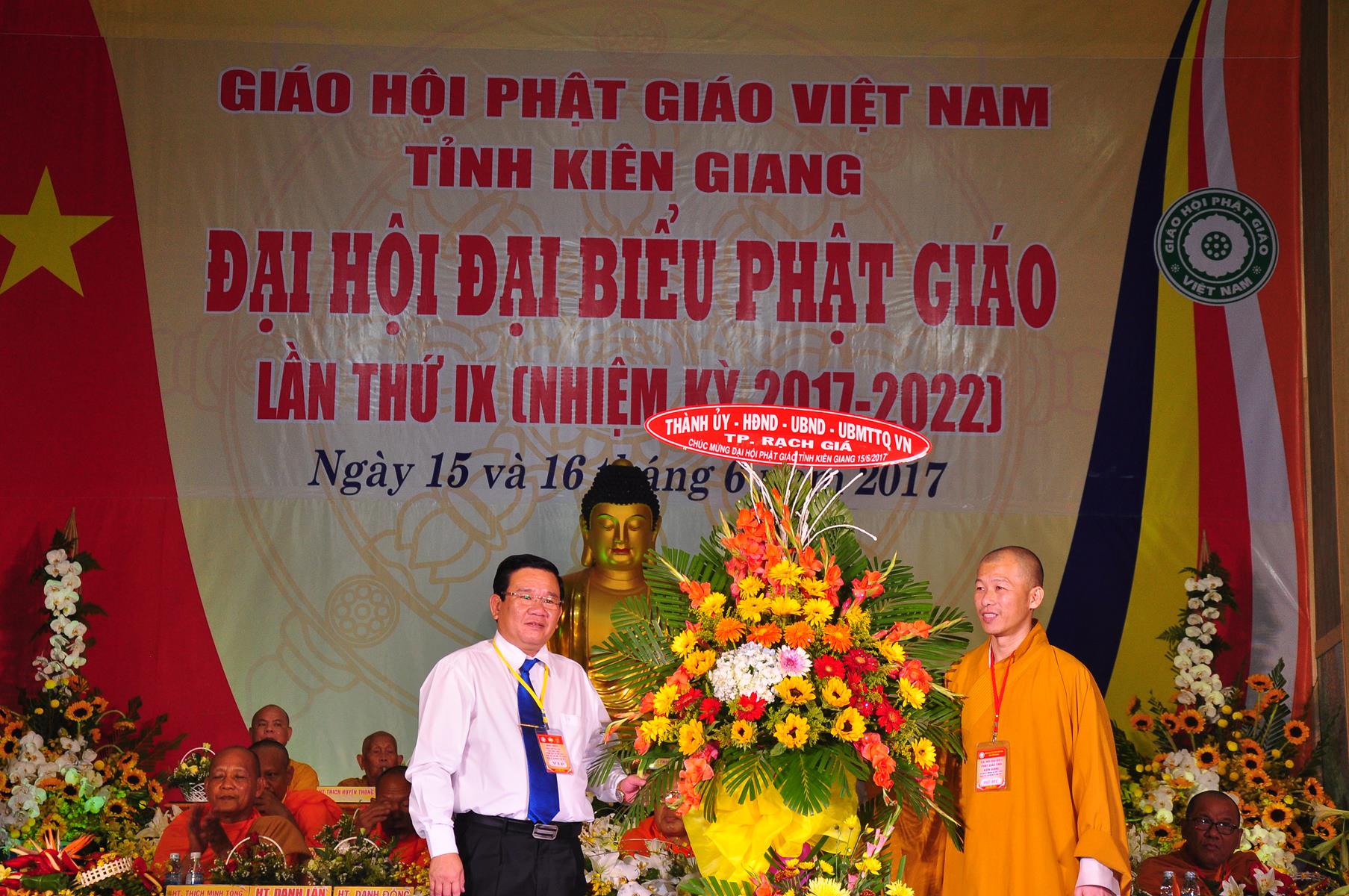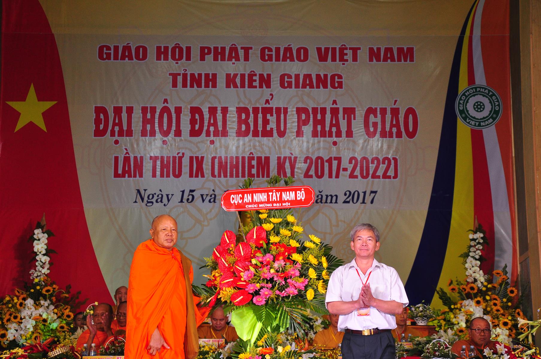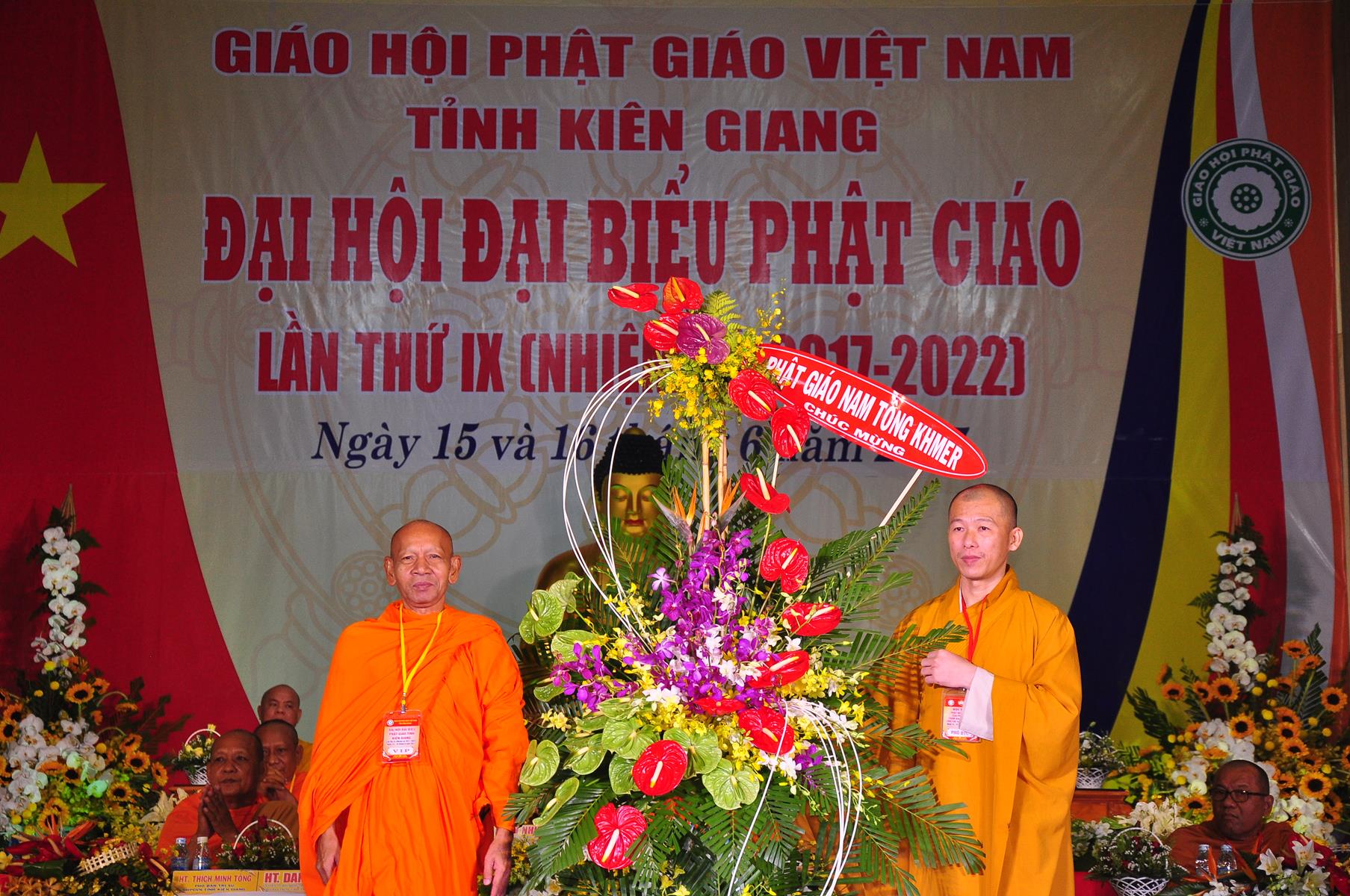 Tại Đại hội, Ban Tổ chức trận trọng nhận những lẵng hoa chúc mừng của Hội đồng Trị sự GHPGVN, Ban Hoằng pháp TƯ; Ban Văn hóa TƯ, Ủy ban Trung ương MTTQVN, Ban Tôn giáo Chính phủ, Cục An ninh Bộ Công An, Tỉnh ủy, HĐND, UBND, UBMTTQVN tỉnh Kiên Giang, Sở Công An tỉnh; Trường Đại học KHXH&NV Hà Nội, Ban Trị sự các tỉnh thành, Tôn giáo bạn, sở ban ngành trong tỉnh Kiên Giang.