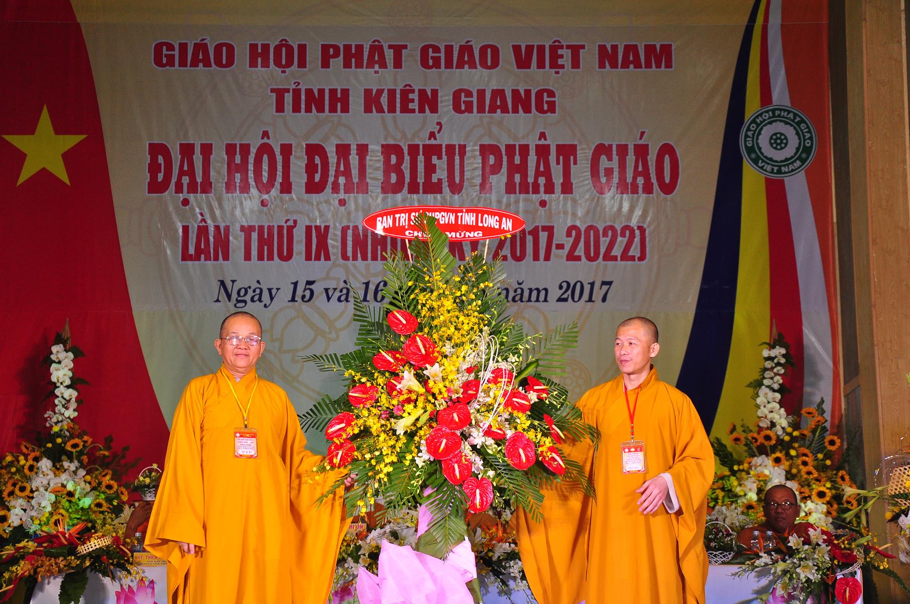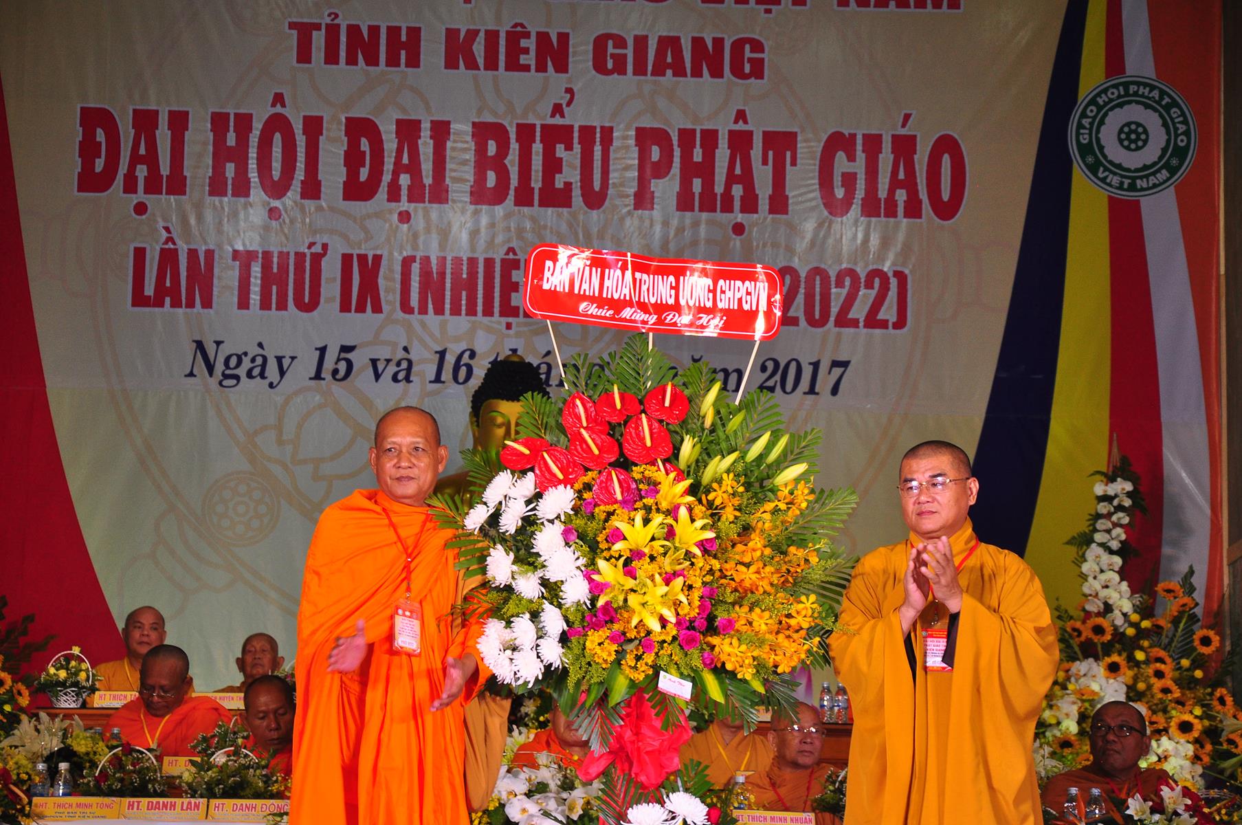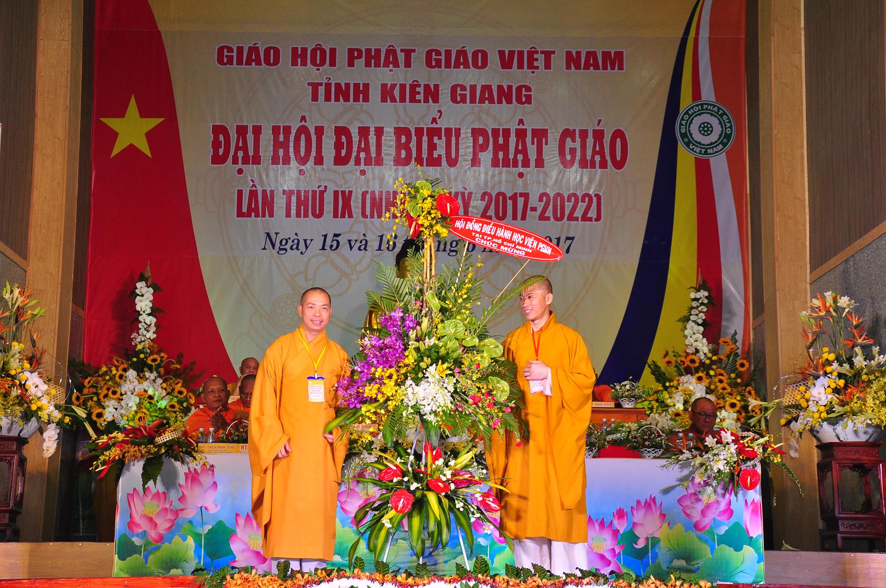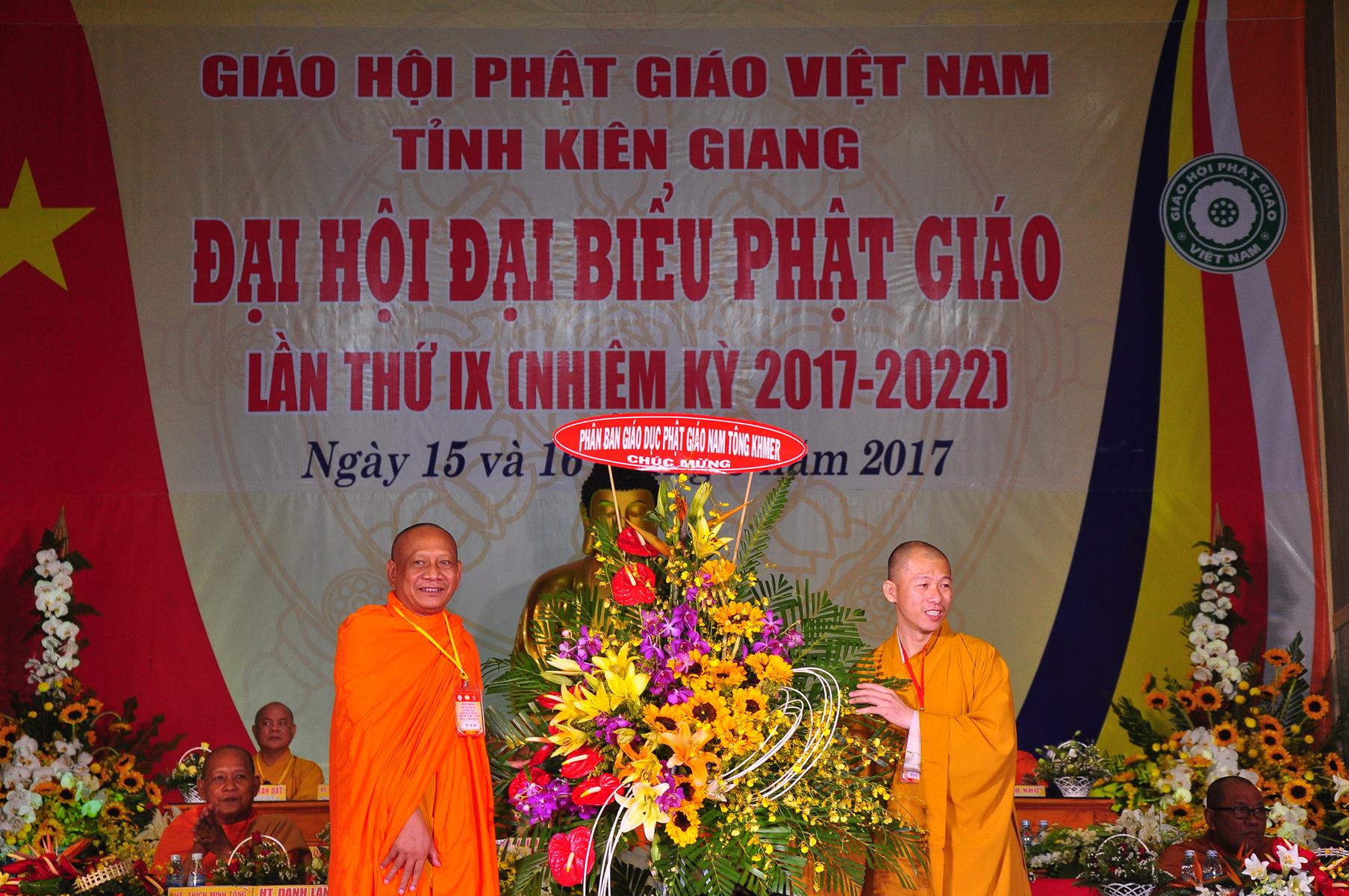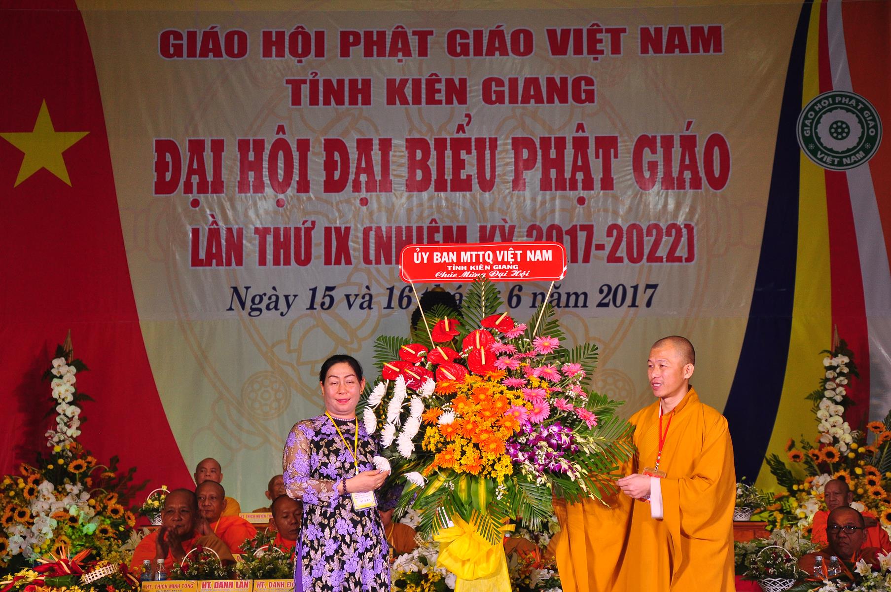 Tại Đại hội, Ban Tổ chức trận trọng nhận những lẵng hoa chúc mừng của Hội đồng Trị sự GHPGVN, Ban Hoằng pháp TƯ; Ban Văn hóa TƯ, Ủy ban Trung ương MTTQVN, Ban Tôn giáo Chính phủ, Cục An ninh Bộ Công An, Tỉnh ủy, HĐND, UBND, UBMTTQVN tỉnh Kiên Giang, Sở Công An tỉnh; Trường Đại học KHXH&NV Hà Nội, Ban Trị sự các tỉnh thành, Tôn giáo bạn, sở ban ngành trong tỉnh Kiên Giang.