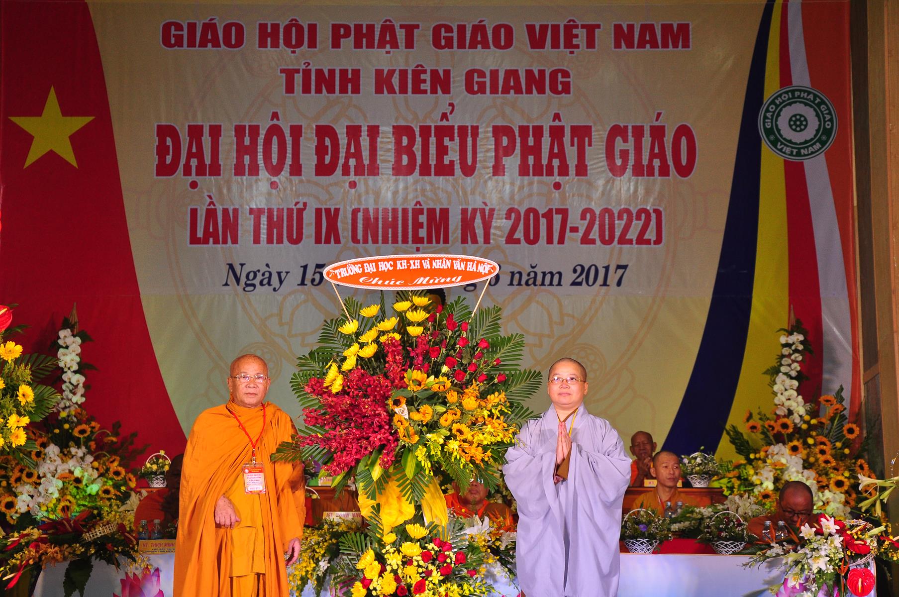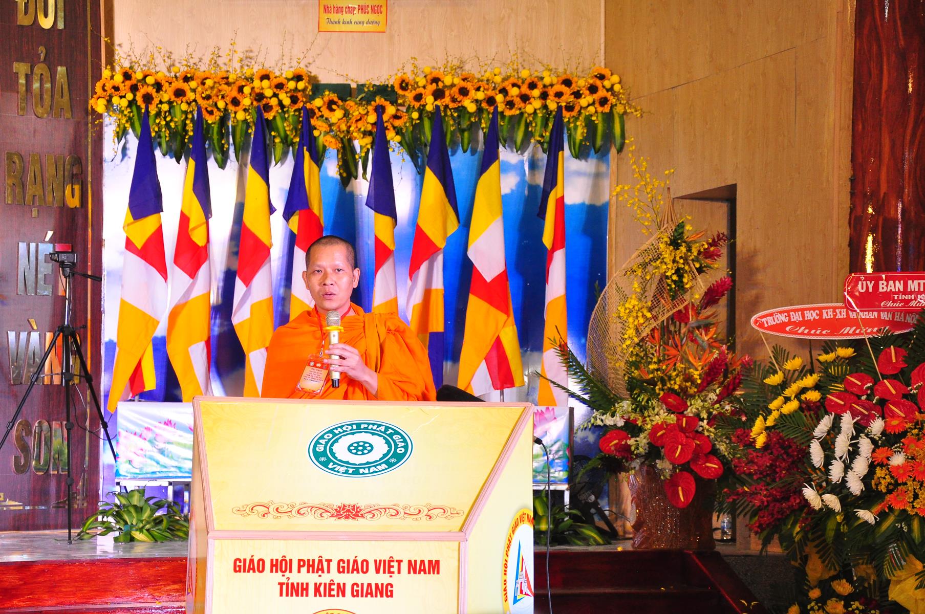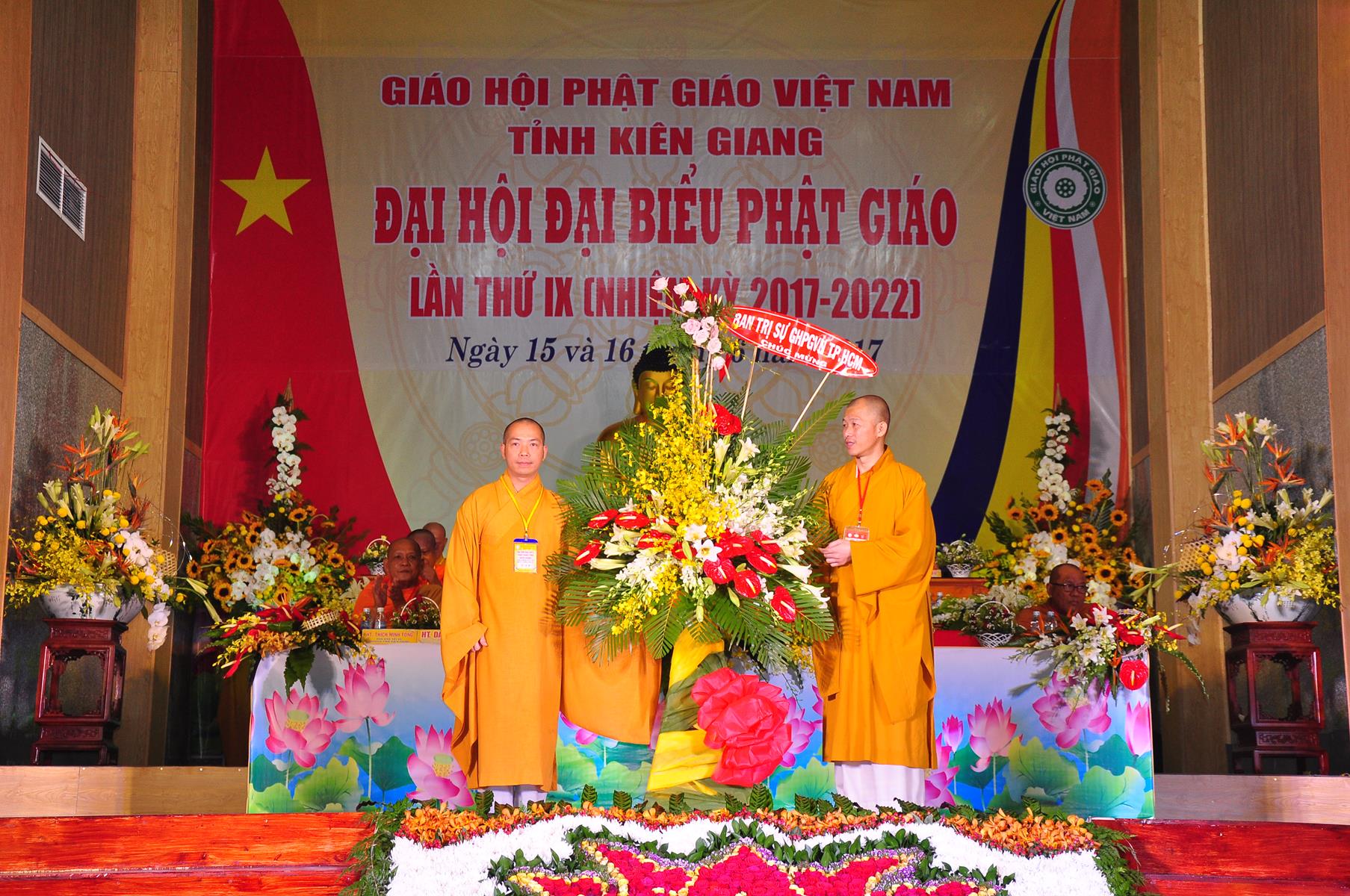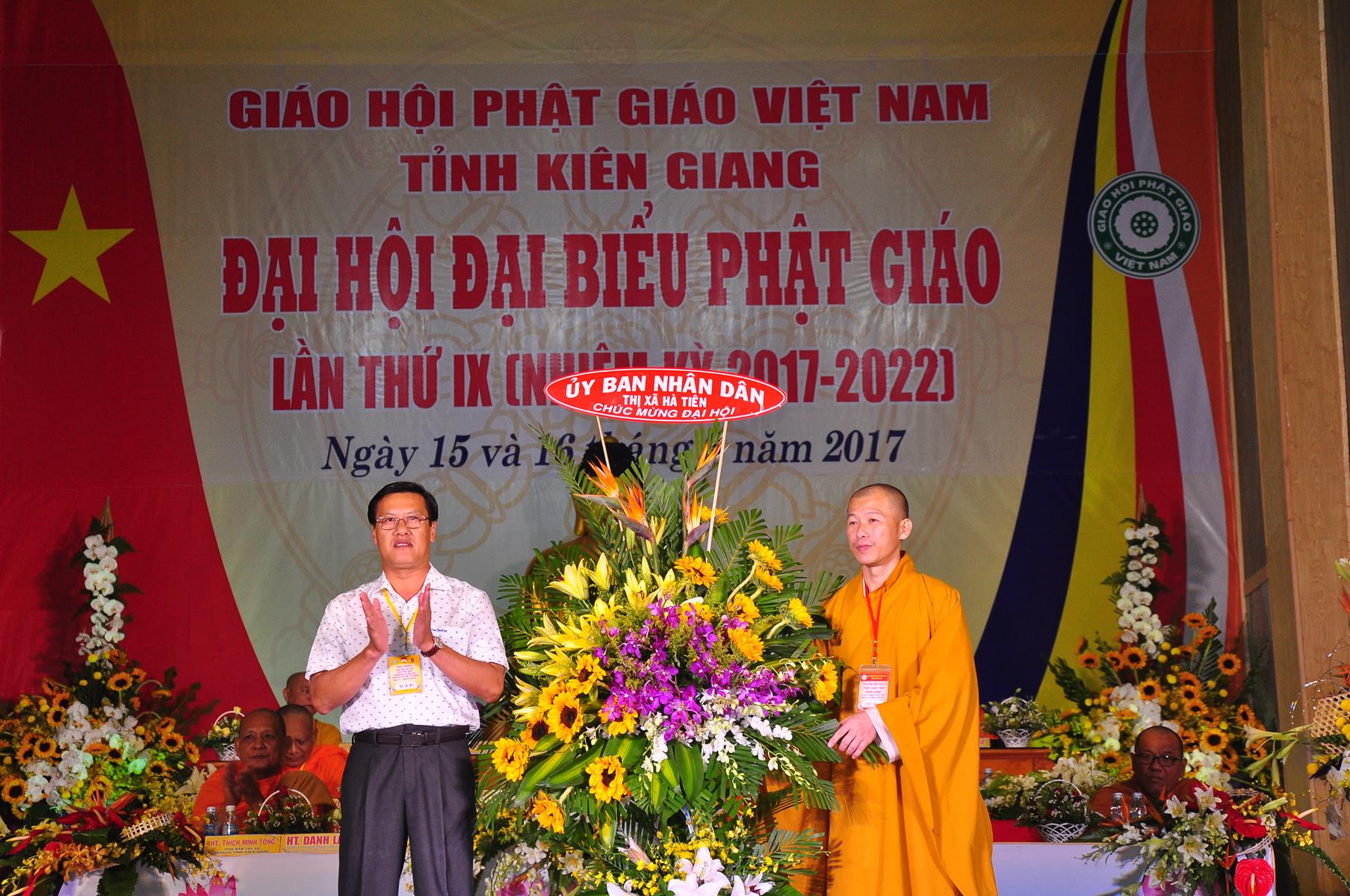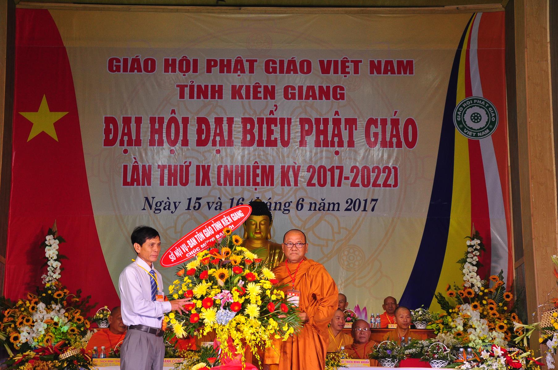 Tại Đại hội, Ban Tổ chức trận trọng nhận những lẵng hoa chúc mừng của Hội đồng Trị sự GHPGVN, Ban Hoằng pháp TƯ; Ban Văn hóa TƯ, Ủy ban Trung ương MTTQVN, Ban Tôn giáo Chính phủ, Cục An ninh Bộ Công An, Tỉnh ủy, HĐND, UBND, UBMTTQVN tỉnh Kiên Giang, Sở Công An tỉnh; Trường Đại học KHXH&NV Hà Nội, Ban Trị sự các tỉnh thành, Tôn giáo bạn, sở ban ngành trong tỉnh Kiên Giang.