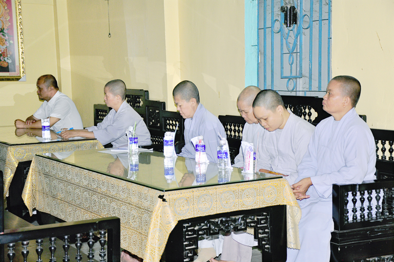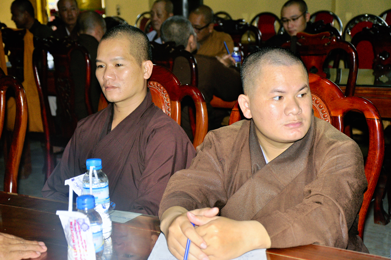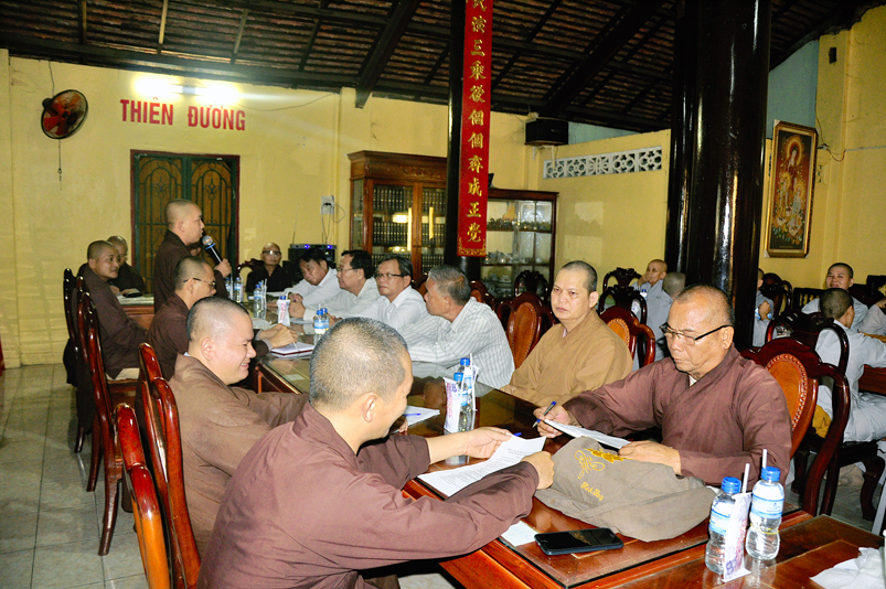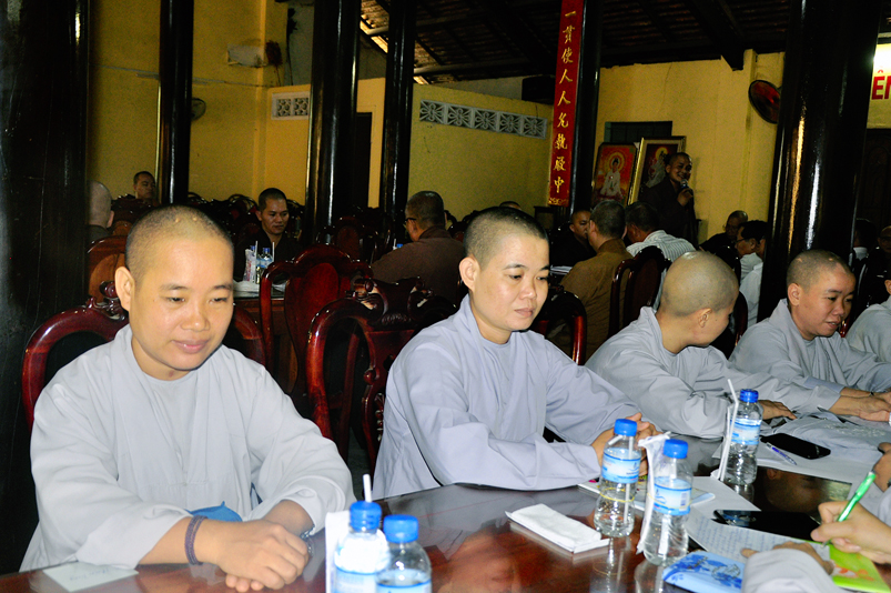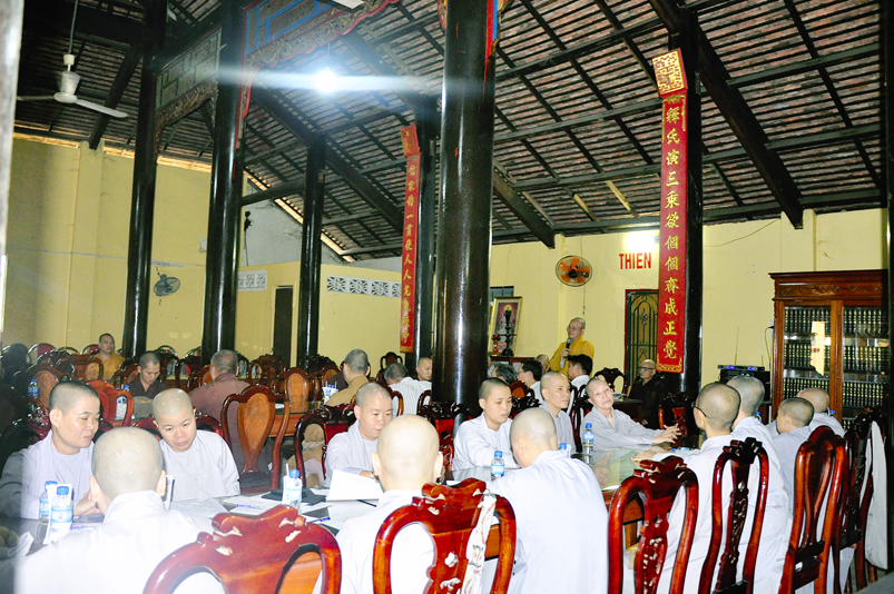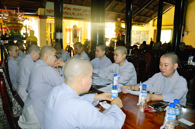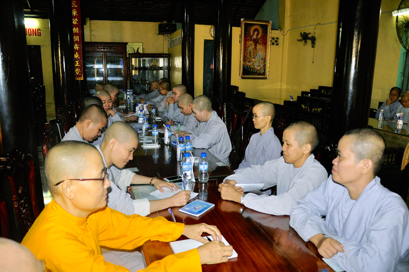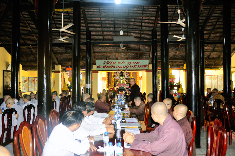 Hòa thượng Thích Thiện Phúc – Chủ tọa phiên họp, đúc kết chương trình họp thông qua các ý kiến của Tăng Ni về Kế hoạch tổ chức Đại lễ Phật đản, Kế hoạch tổ chức khóa An Cư Kiết Hạ cũng như khóa tu mùa hè tại huyện, Hòa thượng khuyến tấn các Tự viện, Tăng Ni cần cố gắng kết hợp và tham gia đầy đủ hơn trong các chương trình Phật sự mà tỉnh nhà giao phó. Các Tịnh xứ phải luôn tuân thủ theo tinh thần Hiến Chương Giáo hội, Pháp luật Nhà nước đề ra. Về vấn đề chùa Tân Diệu thì thường trực BTS GHPGVN liên huyện Đức Hòa – Đức Huệ sẽ kết hợp với các ban ngành nhà nước có thẩm quyền mời đương sự có liên quan về văn phòng Ban Trị sự trao đổi.